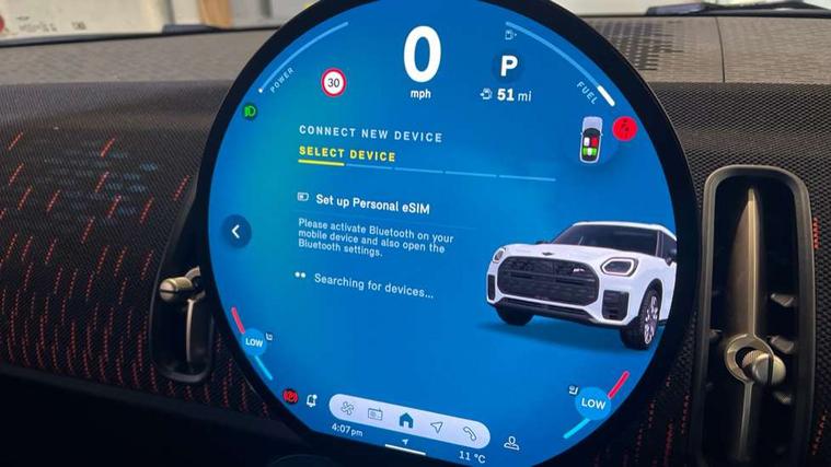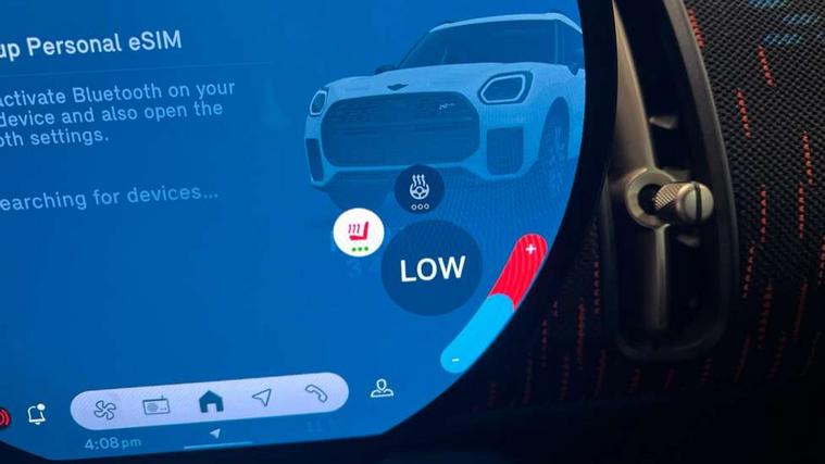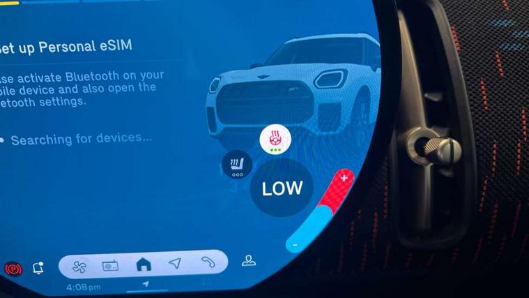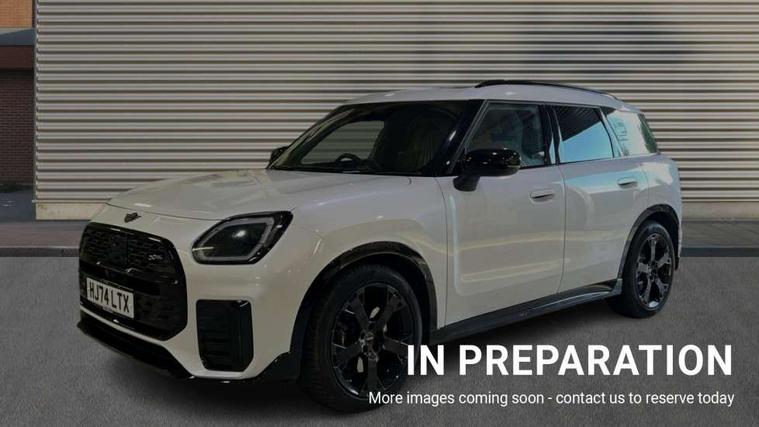 Bluetooth connection, Circular OLED Screen, Compatible mobile phone bluetooth with audio streaming, Cruise Control (DCC), Digital dashboard display, Driving assistant, Driving Assistant Plus Preparation, E-call, Electro-mechanical speed dependant steering assistance, MINI Experience Modes, MINI Head up display, Mini navigation system, MINI TeleServices, Parking assistant in camera and ultrasound based assistance system, rear view camera, parking aid and distance control, Adaptive suspension, Double clutch sports transmission, Larger capacity fuel tank, 6 speakers, DAB Digital radio, Personal eSim, Auto tailgate, Electric adjustable heated door mirrors, Front and rear apron, Front and rear electric windows, Heated rear window, High beam assistant, High gloss hexagonal patterned grille surround, Interior rear-view mirror with automatic anti-dazzle function, LED daytime running lights, LED headlights with extended contents including Adaptable light signatures, LED rear lights, LED third brake light, Rain sensor with auto headlights, Rear roof spoiler with airblades, Rear side wing doors, Rear window wiper, Roof rails, 3 Seat sliding rear bench in 2nd row, 60/40 split rear bench seat, Anthracite headliner, Auto air conditioning, Driver and front passenger seat heating, Floor mats, Front armrest, Front headrests, Heated steering wheel, Height and length steering column adjustment, JCW Front sports seats, Lidded storage box in Black/Red knit, Luggage compartment separating net, Perforated Vescin steering wheel, Rear headrests, Seat adjustment for rear seats, Single front passenger seat, Sunvisors with vanity mirrors, Vescin/Cloth upholstery, Wireless charging tray, Interior and exterior mirror package - Mini Countryman, 3x3 point rear seat belts, 6 Airbags - front, side, head and seat belt tensioners, ABS, Brake calipers in Black with JCW badge, DSC - Dynamic Stability Control, Electronic handbrake, Electronic Stability Programme (ESP), Front ISOFIX (iSize), Hill descent control, Hill hold assist, Hill start assist, JCW Sport Brakes, Manual rear child locks, Traction control, Tyre pressure monitoring system, Warning triangle, Alarm system with tilt sensor, monitoring doors, bonnet interior and tailgate, Auto drive away locking, Comfort access system, Deadlocking function, Electronic vehicle immobiliser, Locking wheel bolts, Remote control locking, Start/stop toggle with keyless go, JCW Black/Red dashboard knit, MINI Mobility Kit,