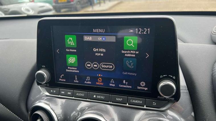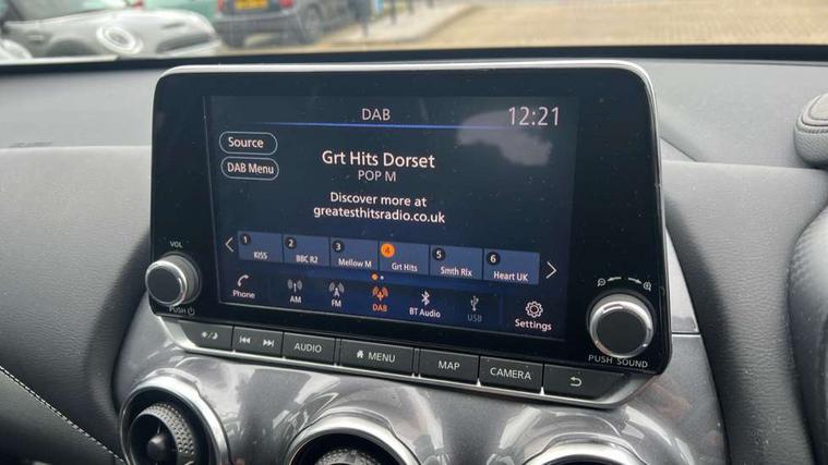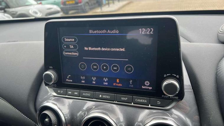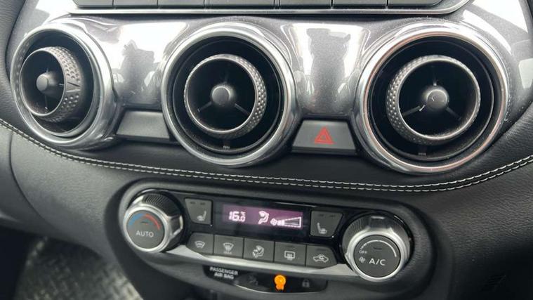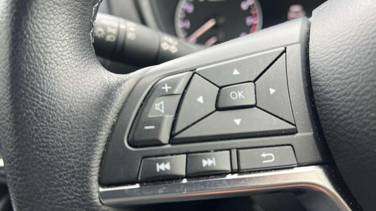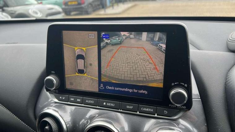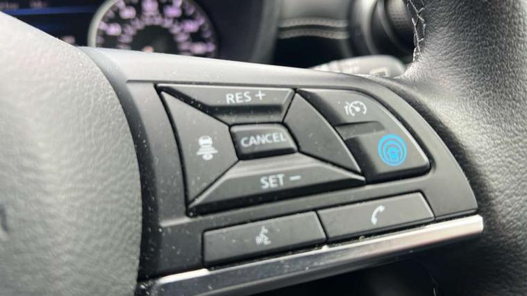 7" full colour TFT screen combimeter, Apple CarPlay and Google Android auto, Drive modes select (Eco, normal and sport), Emergency and breakdown call, Front parking sensor, Idle start/stop system, Intelligent lane intervention, Lane departure warning system, Nissan connect 8" touch screen entertainment system, Nissan connect nav with TomTom traffic, Nissan connect services and Wifi connection, Outside temperature sensor, Power Steering, Rear parking sensor, Traffic sign recognition, Trip computer, Voice recognition, Gasoline particulate filter, 10 Bose speakers 6 speakers and 2 headrest speakers for driver/passenger seats, Bluetooth system, USB, Aux-in and 12V socket, Bose personal sound stage control, DAB Digital radio, Rear console USB port, Auto dimming interior rear view mirror, Auto headlights, Automatic hazard signal with emergency stop signal, Body colour bumpers, Body colour door handles, Electrically adjustable door mirrors with integrated indicators, Follow me home headlights, Front and rear electric window with one touch driver window, Heated and auto folding door mirrors, High beam assist, LED daytime running lights, LED front fog lights, LED headlamps, LED rear fog lamp, LED rear lamps, Rain sensor windscreen wipers, Rear privacy glass, Rear side wing doors, Rear wiper, Thermaclear heated windscreen, Three blink turn signal, 3 height adjustable rear headrests, 3 seat bench in 2nd row, 60/40 split folding rear seat, Automatic climate control, Card holder on driver sunvisor, Door ambient lighting, Driver and passenger sliding and reclining seats, Driver seat back pocket, Driver side rear coat hanger, Driver/passenger sunvisors and vanity mirrors, Front and rear cabin lights, Front armrest, Front door pockets with bottle holders, Front head restraints, Front passenger isofix child seat anchorage point, Front/rear passenger grab handles, Gear console ambient circle lighting, Grey synthetic leather kneepad, Heated front seats, Height adjustable driver's seat, Height adjustable passenger seat, Internal chrome door handles, Leather gearshift knob, Leather steering wheel, Luggage board, Luggage space lighting, Monoform sporty seats, Multifunction steering wheel, Passenger seat back pocket, Rear door bottle holders, Single front passenger seat, Synthetic leather upholstery, Telescopic steering wheel adjustment, Two cupholders in front centre console, Two rear isofix child seat anchorage points with top tether, Welcome light and console tray ambient lighting, Advanced safety shield pack - Juke, ABS with EBD and brake assist, Active ride control, Active Trace Control, Driver and passenger airbags, Driver and passenger side airbags, Electric handbrake with auto hold function, Electronic Stability Programme (ESP), Front and rear curtain airbags, Height adjustable seatbelts, Hill start assist, Intelligent emergency braking with pedestrian and cyclist recognition, Rear door child safety locks, Seatbelt reminder for driver/front passenger and rear seats, Single tone horn, Three 3 point rear seatbelts, Traction control, Tyre pressure monitoring system, VDC Dynamic Vehicle Control, Ventilated rear brake discs, Alarm, Immobiliser, Intelligent key and start push button with walk away lock and approach unlock functions, Remote central locking,