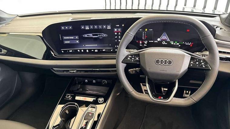Adaptive cruise control, Advanced driver attention and fatigue montior, Audi application store, Audi assistant, Audi connect emergency call and service, Audi drive select, Audi virtual cockpit plus with 11.9" OLED colour display, Automatic start/stop system with coasting functionality, Camera based traffic sign recognition, Intersection assist, Lane departure warning, MMI navigation plus with high resolution 14.5" OLED touchscreen colour display, Park assist plus, Parking system plus with 360 display, Progressive steering with servotronic, Rear view camera, Smartphone interface, Swerve assist and turn assist, Traffic sign based speed limiter, Household plug type G, Hybrid propulsion system, Industrial connector CEE 32A, 230V, long and straight for the e-tron charging system, Mode 3 type 2 AC charging cable 22kW, Sports suspension lowered by 20mm, 2 USB-C ports in both the front and rear, Audi sound system impressive sound with 8 loudspeakers including centre speaker and subwoofer, 6-channel amplifier with a total output of 180 watts, DAB digital radio reception, Smartphone compartment with wireless charging, Aluminium window trims, Auto dimming rear view mirror, Body colour door mirrors, Door mirrors - electrically adjustable, heated, folding and auto dimming on both sides, Front and rear electric windows, Front door sill trims with aluminium inlays, illuminated with 'S' logo, High beam assist, LED headlights Plus incl. digital daytime running lights, turning light, all-weather light, motorway light, manouevring light and intersection light, LED rear lights pro incl. dynamic rear indicators and illuminated light strip with animated coming and leaving home function, LED third brake light, Privacy glass, Rear and side windows with heat insulating glass, Rear boot, Rear side wing doors, Removal of S line badge on the front wings, S line bumpers, radiator grille and diffuser in phantom black and diffuser insert in matt anthracite, White rhombus logo projection light in exterior mirrors, Windscreen with acoustic glazing, 3 rear headrests, 3 seat rear bench, 3 spoke leather steering wheel with multi-function buttons with touch control, flattened on top and bottom, with S badging and contrast stitching, 3-zone automatic climate control, 40:20:40 split folding rear seat bench with centre armrest and cup holders, Auxiliary air conditioning, Comfort front centre armrest, Front and rear floor mats, Front seats with manual adjustment for position and 4-way electric lumbar support, Front sport seats with integrated headrest and S embossed logo, Headlining in black cloth, Heated front seats, i-Size child seat mounting on the front passenger side and outer rear seats, i-Size and top tether on the outer rear seats, LED roof module front and rear including reading lights, Luggage compartment lid, electrically opening and closing, Manual steering column height and depth adjustment, Single front passenger seat, Stainless steel pedals and footrest, Steering wheel grips in perforated leather and shift paddles, Storage compartment lighting under the centre armrest, Ambient lighting package plus - A5, 3x3 point rear seat belts, Acoustic vehicle alerting system, Driver airbag, Electric child safety locks, First aid kit with warning triangle and vests, Front emergency brake assist, Front passenger airbag, Front passenger airbag deactivation, Front side airbags with head airbag system and front interaction airbag, Hill hold assist, Seat belt monitoring with rear seat occupant reminder, Tyre pressure loss indicator, Anti theft alarm, Anti-theft wheel bolts, Keyless Go, Accent surfaces and control buttons in gloss black, Black dashboard with contrast stitching, Inlays in matt brushed aluminium with linear embossing, anthracite, Softwrap in leatherette with contrast stitching, Upper and lower interior elements in leatherette, Tyre repair kit,