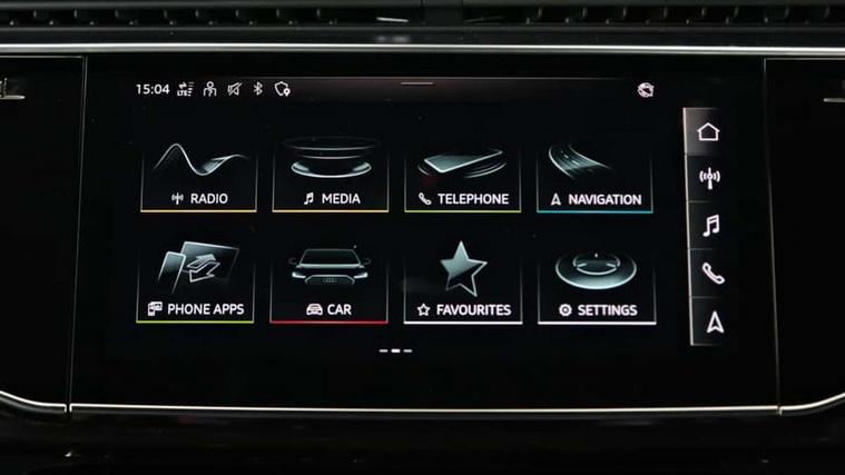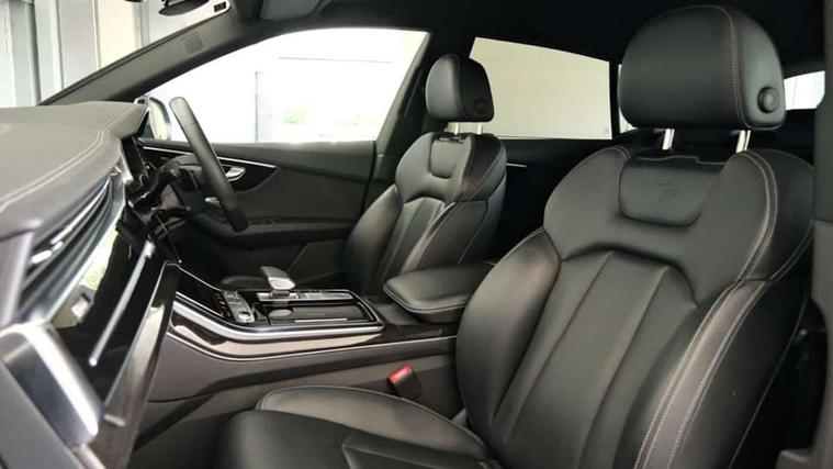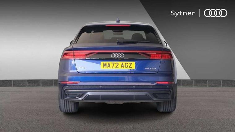 10.1" and 8.6" Dual colour touchscreens, Audi connect safety and service (e-call), Audi connect with Amazon Alexa Integration, Audi drive select, Audi parking system plus includes 360 degree display with front and rear sensors, Audi smartphone interface includes wireless Apple carplay/Android Auto, Audi virtual cockpit - 12.3" high resolution LCD display with fully customisable instrument cluster, Automatic start/stop system, Electro-mechanical PAS, Low washer fluid indicator, MMI - Multi Media Interface control system, MMI navigation plus with MMI touch, Natural voice recognition, On board computer, Operating buttons in black, glass look with haptic feedback, Power operated tailgate, Rear view camera, Service interval indicator, 48V Mild hybrid technology, 85 litre fuel tank, Adaptive sport air suspension, Quattro all wheel drive with self locking centre differential, Audi music interface with 2 USB ports with charge and data functions, Audi sound system with 6 channel amplifier, 180 watt amplifying capacity and 10 loudspeakers including subwoofer, Aux-in socket, DAB Digital radio, 3rd brake light, Acoustic windscreen, Audi HD Matrix LED headlights with dynamic front and rear indicators, Auto dimming frameless rear view mirror, Coming/leaving home lighting function, Electric front+rear windows, Electrically folding auto dimming/adjustable/heated door mirrors with memory function, LED side indicators and kerb view function for passenger side, Headlight washers, Heat insulating glass in windshield, LED signature daytime running lights, Platinum grey front spoiler lip and diffuser insert, Privacy glass - dark tinted rear and rear side windows from B-pillar backwards, Rain and light sensors, Rear side wing doors, Rear wiper, 3 bench rear seats in 2nd row, 4 zone deluxe automatic climate control, 4-way lumbar support for front seats, 40:20:40 split folding rear bench seat, Black cloth headlining, Comfort front centre armrest, Driver seat memory function, Electrically adjustable front seats, Front head restraints, Front/rear floor mats, Heated front seats, ISOFIX child seat mounting for front passenger seat and 2 outer rear seats with top tether child seat mounting for all 3 rear seats, LED interior ambient lighting, Luggage compartment sill protection in stainless steel, Rear centre armrest with 2 cupholders, Rear headrests, Single front passenger seat, Stainless steel pedals, Sunvisors with illuminated vanity mirrors, Tool kit, Titanium Black Styling Pack - Q8, 3 point seatbelts on all seats, Audi pre sense front, Child locks on rear doors, Driver and front passenger, front side and curtain airbags, Electromechanical parking brake, Electronic Stability Control (ESC) including ABS, ASR and EDL, Front passenger airbag deactivation, Hill descent control, Hill hold assist, Predictive pedestrian protection, Seatbelt monitoring, Traction control, Tyre pressure loss indicator, Warning triangle and first aid kit, Anti theft alarm with tow away protection, Anti-theft wheel bolts and wheel loosening detection, Immobiliser, Keyless go with remote central locking, Polished oak trim with grey finished, Tyre repair kit,