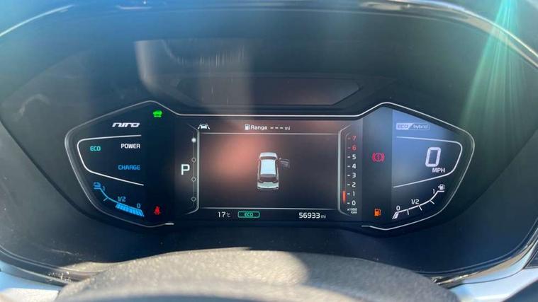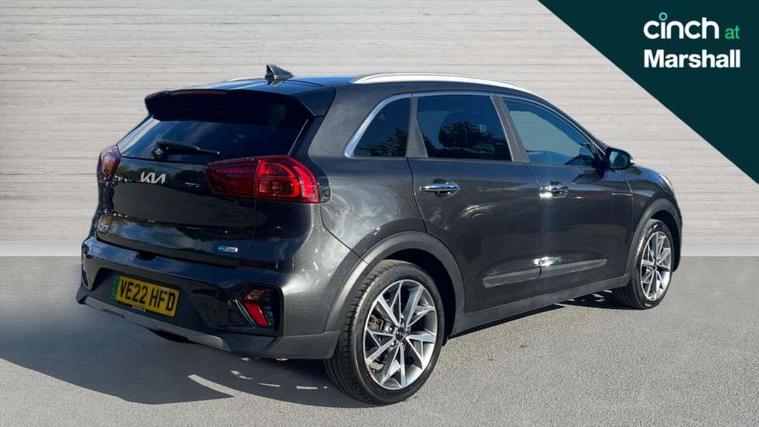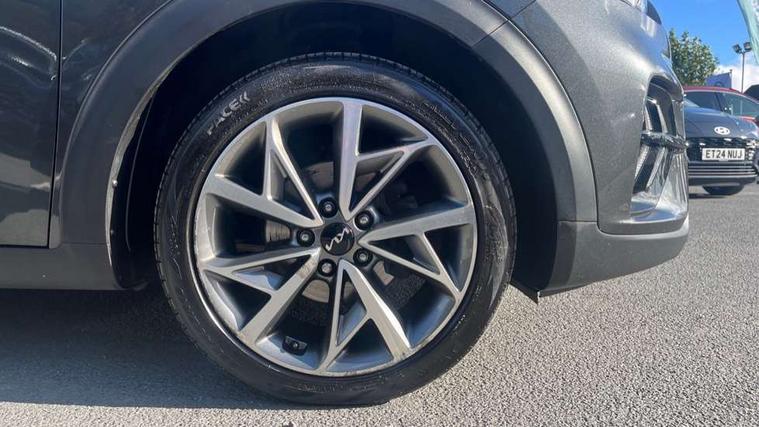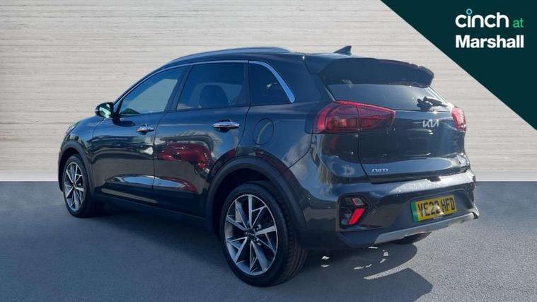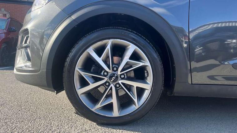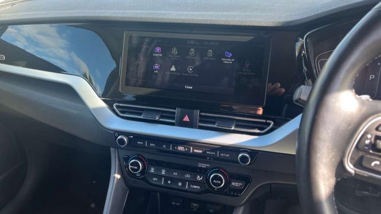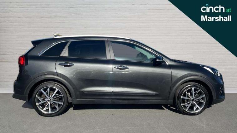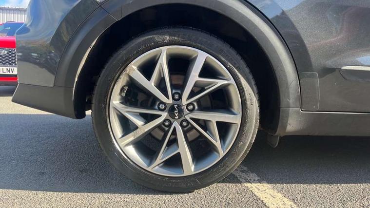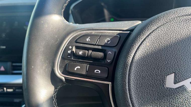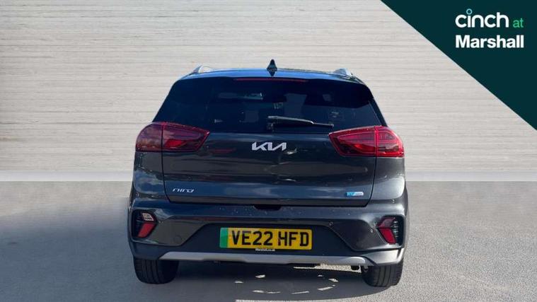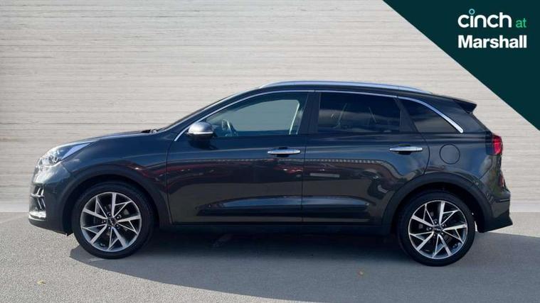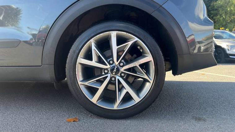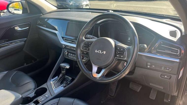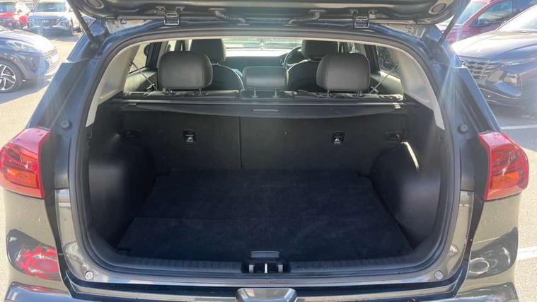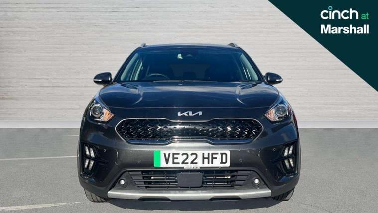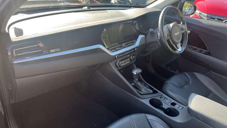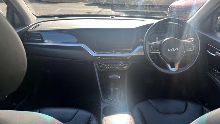 10.25" Touch screen satellite navigation with european mapping and traffic messaging channel, 7" full supervision cluster with TFT colour display, Adaptive smart cruise control function (SCC) with stop and go, Apple car play/Android Auto with voice control, Digital clock, Drive mode selector, Driver attention warning, Emergency call service, Emergency stop signalling system, Forward collision avoidance assist, Front parking sensors, Kia connected services featuring TomTom live, Lane Following Assist (LFA), Lane keep assist, Motor driven power steering, Rear parking sensors, Reversing camera, Speed limiter, Trip computer with distance/fuel consumption/average speed, UVO connect, Wireless Smartphone charger, 'Shark fin' mobile antenna, 6 speakers, Bluetooth with music streaming, DAB Radio with MP3, Steering wheel mounted controls, USB connection located in centre console, USB port, All round electric windows with drivers and front passenger auto up/down function, Auto dimming rear view mirror, Automatic defog system, Automatic headlight control system, Black beltline mouldings, Black side sills, Black wheel arch mouldings, Body colour bumpers, Body coloured/high gloss door mirrors, Chrome door handles, Driver's side wide angle mirror, Electrically folding/adjustable/heated door mirrors with LED indicators, LED daytime running lights, LED fog lights, LED rear combination lights, LED third brake light, Manual headlight levelling, Matt black radiator grille, Privacy glass - Rear windows and tailgate, Projector headlamps, Rain sensing front wipers, Rear side wing doors, Rear spoiler, Rear wiper, Roof rails, Solar glass, Variable front intermittent wipers, Waistline black paint, Welcome and follow-me home light functionality, 3 seat bench in 2nd row, 3 x passenger assist grips, 60/40 split/folding 2nd row of seats, 8 way electric adjustable drivers seat, All-round height adjustable headrests, Aluminium door scuff plates, Bulb type overhead console lamp with sunglasses case, Centre console storage box, Centre room lamp, Cupholders in rear armrest, Driver/passenger sunvisors with illuminated vanity mirrors, Drivers seat power lumbar support, Dual zone automatic air conditioning, Front and rear door storage, Front/rear centre armrests, Headlining in Light grey, Heated front seats, Heated steering wheel, High gloss black lower console trim, High gloss black steering wheel trim, Illuminated ignition key hole, Interior door lock/unlock function, ISOFIX Child seat top tethers and anchor fixings, Leather trimmed door armrests, Leather trimmed steering wheel, Leather trimmed steering wheel and gearshift, Leather upholstery, Luggage area lamp, Luggage area load cover, Luggage net with hooks, Paddle shifts, Passenger seat height adjuster, Satin finish inner door handles, Seatback pocket - driver, Seatback pocket - front passenger, Single front passenger seat, Tilt/telescopic adjustable steering wheel, Under floor storage box, Ventiliation ducts to rear compartment, Towing pack - Niro, 3 point seatbelts on all seats, ABS, Automatic unlocking of doors in case of impact, Drivers knee airbag, Electric parking brake with auto hold function, Electronic stability control, Front passenger airbag cut-off switch, Height adjustable front seatbelts, Hill start assist control (HAC), Manual child lock in rear doors, Traction control, Twin curtain airbags with roll over sensor, Twin front and side airbags, Tyre pressure monitoring system, Alarm system and engine immobiliser, Deadlocks, Locking wheel nuts, Remote central door locking with fold away key, Speed sensitive auto door locking, Visible vehicle identification number, High gloss black centre fascia, High gloss black door inserts, 18" Alloy wheels, Tyre mobility kit,