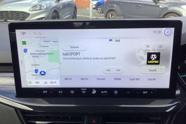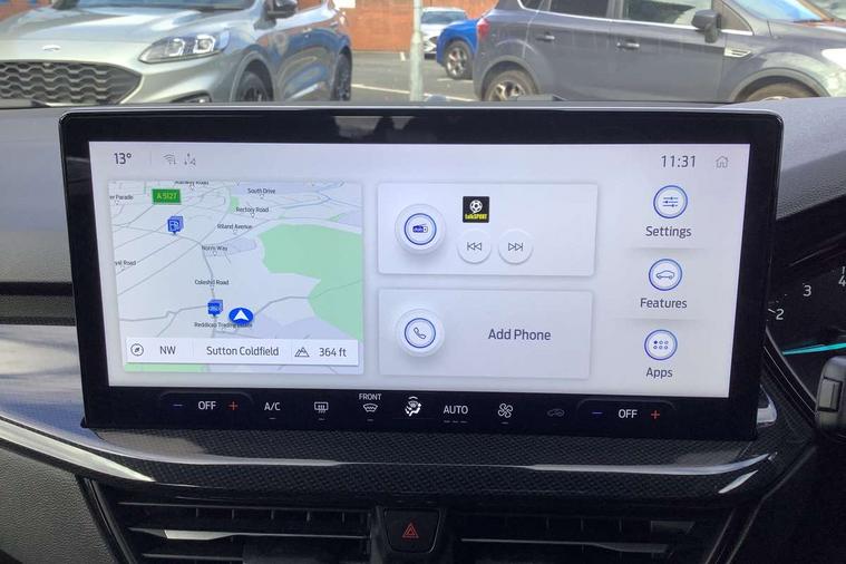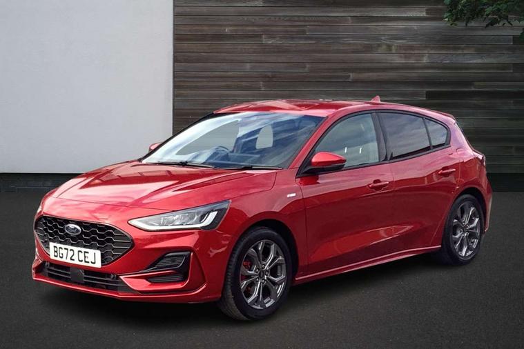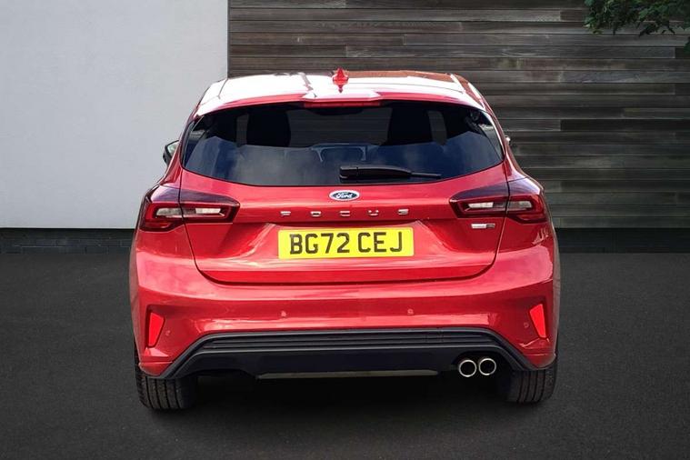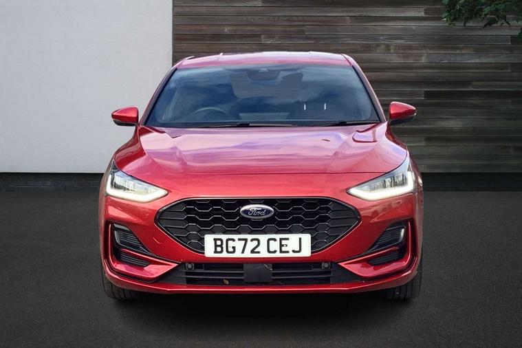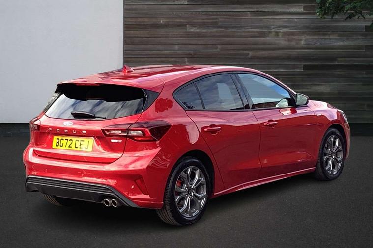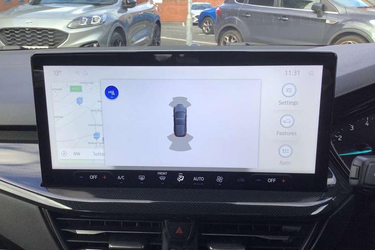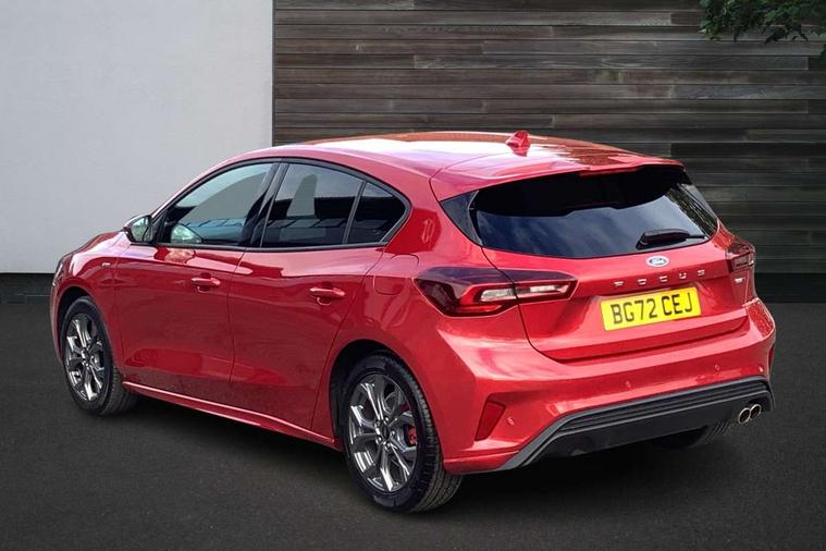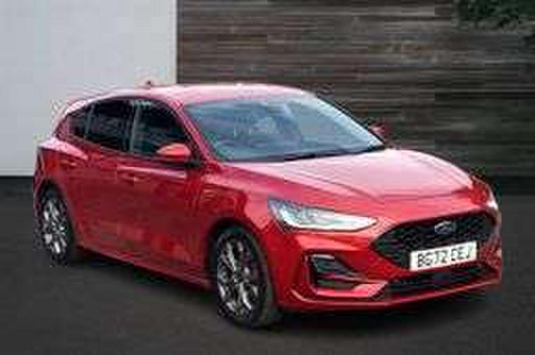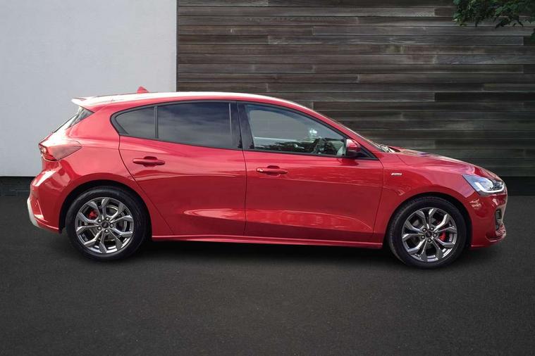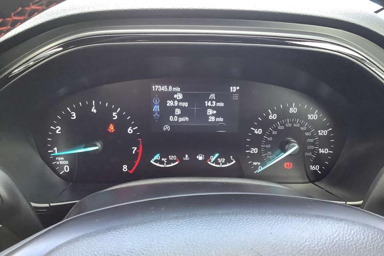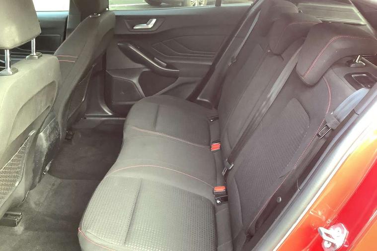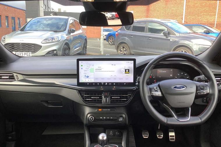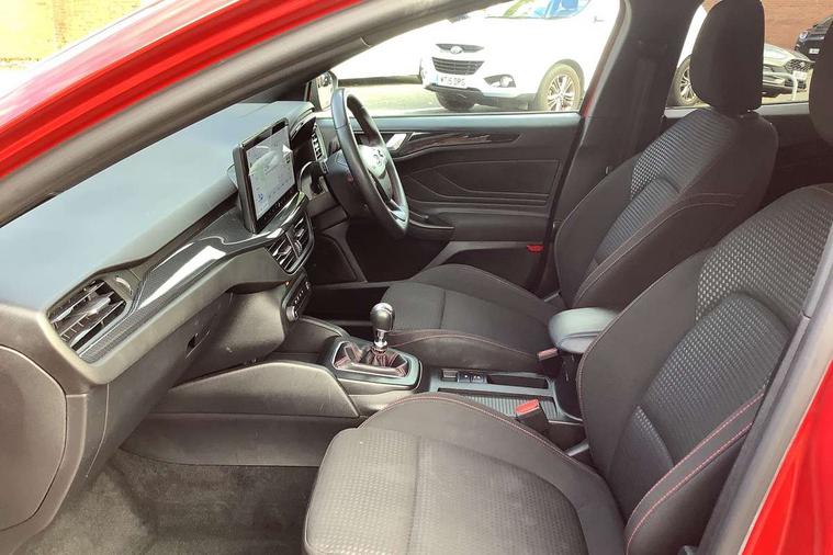 4.2" TFT coloured cluster, Bluetooth system, Digital clock, E-call, Easy fuel capless refuelling system, Eco mode, Ford SYNC 3 navigation with 8" TFT touchscreen, DAB radio and app link Android auto/Apple carplay, Intelligent speed assist, Lane keeping system - lane keeping alert and lane keeping aid, PAS, Selectable drive mode, Trip computer, Sports tuned suspension, 2 USB ports, Aux input, Auto dimming rear view mirror, Auto headlamps (on/off), Automatic rain sensing wipers, Body colour large rear spoiler, Body coloured bumpers, Body coloured door handles, Body coloured electrically operated and heated door mirrors with side indicators, Electrically operated front and rear windows with one touch opening and closing, Front variable intermittent wipers with electric wash, Heated rear window, LED daytime running lamp, LED front fog lamps with cornering function, LED reflector headlamps, Polished twin tailpipe, Power folding door mirrors, Quickclear heated windscreen, Rear privacy glass, Rear side wing doors, ST-Line upper and lower grille with full body styling kit and wing badges, Tailgate wash/wipe, Third brake light, 3 seat bench in 2nd row, 3 spoke flat bottomed Sensico steering wheel with red stitching, Aluminium gear knob, Cloth upholstery, Dark headliner, Driver's lumbar support, Front floor mats, Height adjustable front headrests, Isofix child seat preparation, Manual air conditioning, Reach + rake adjustable steering column, Rear centre headrest, Single front passenger seat, 3x3 point rear seatbelts, ABS+Electronic Brake force Distribution, Auto hold function, Driver airbag, Electronic parking brake, Electronic stability control, Front and rear seatbelt reminder, Front inertia reel height adjustable seatbelts with pre-tensioners, Front passenger airbag, Front side airbags, Hill start assist, Manual rear child locks, Passenger airbag deactivate switch, Post collision braking, Pre collision assist with autonomous emergency braking and pedestrian/cyclist detection, Side curtain airbags, Three rear inertia reel lap/diagonal seatbelts, Tyre pressure monitoring system, Ford keyfree system with Keyless entry and keyless start/sleep mode key fob, MyKey system, Remote central locking & engine immobiliser, Thatcham category 1 alarm, 17" 5x2 spoke alloy wheels with rock metallic finish, Mini steel spare wheel,