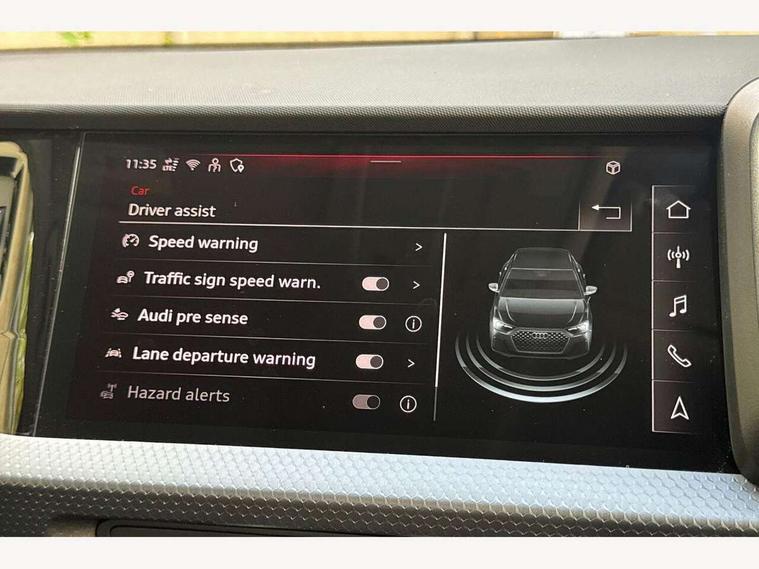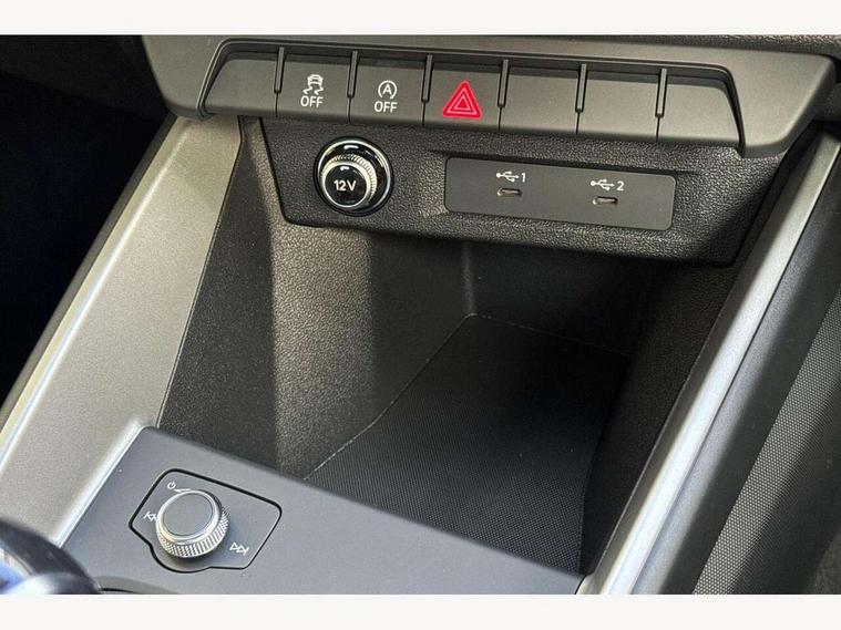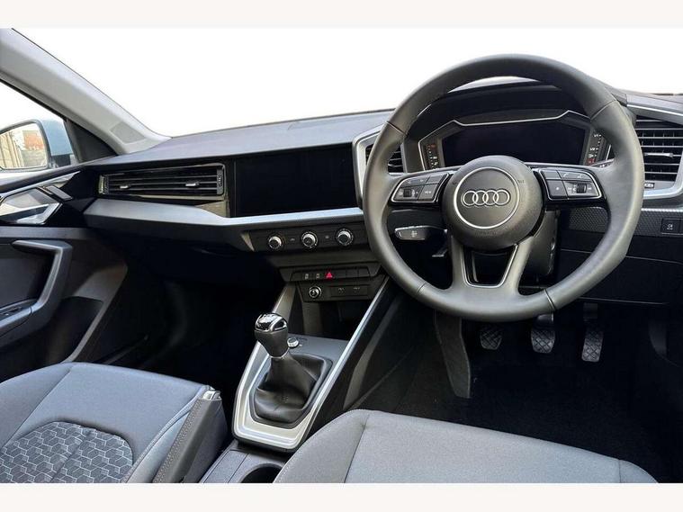 10.25" Digital instrument cluster display classis style instrument dials + speed, odometer, time, outside temperature, telephone menu + fuel level warning, Audi connect safety emergency and service including E-call, Audi drive select - power steering assistance + engine, Audi smartphone interface with connect compatible smartphone via USB directly MMI display + Nav, music, third party apps controlled via MMI controller, Automatic start/stop system, Bluetooth interface, Cruise control, Driver's information system, Electromechanical power steering, Lane departure warning system, Service interval indicator, Speed limiter, Voice control system, Washer fluid level indicator, Dynamic suspension, 1 x SDXC card reader, 2 x USB type C connection points, DAB Digital radio, MMI radio plus with 8.8" colour MMI display screen and MMI touch, Auto dimming rear view mirror, Body coloured bumpers, Body coloured door mirrors, Electric front and rear windows, Electrically adjustable, heated, folding door mirrors with integrated LED side indicator, Front side air inlets in grained matt black and C frame in titanium black, Heat insulating glass windscreen and side windows, Heated rear windscreen, LED headlights with LED rear lights + dynamic rear indicators + headlight adjustment and high beam, turning light + LED daytime running lights, Radiator grille and rear diffuser in matt titanium black, Radiator protective grille frame in matt aluminium silver, Rain and light sensors, Rear fog lights, Rear wiper, Scandium grey tailpipe trim, Side front spoiler lips in grained matt black, 12V socket in centre console with two cup holders, 3 rear seats with headrests, 40:60 Split folding rear seat or folded fully, Door sill trims with aluminium inlay, Driver and passenger seat with manual height adjust with forward and backwards adjustment, Front head restraints, Front/rear floor mats, Height and reach adjustable steering wheel, ISOFIX child seat mounting for front passenger and outer rear seats including top tether attachment point of outer rear seats, Leather gear knob with aluminium trim, Leatherette handbrake grip, Luggage compartment light with front and rear reading lights, Manually adjustable lumbar support in front seats, Novum cloth upholstery with front sport seats, Titanium grey cloth headlining, Luggage compartment pack - A1, 3x3 point rear seatbelts, Audi pre-sense front with pedestrain and cyclist recognition, Brake assist function, Driver and front passenger airbag with front side and head airbags, Electronic Stability Control including ABS, EBD, ASR and EDL, Front passenger airbag deactivation switch, Hill hold assist, Seatbelt height adjustment for front seats, Seatbelt monitoring, Tyre pressure warning light, Warning triangle and first aid kit, Anti theft alarm, Anti theft wheel bolts and loose wheel warning, Immobiliser, Remote central locking with 2 foldaway keys, Aluminium trim for control switches, air vents and digital instrument cluster, Silver grey accent areas including air vents, door handle recesses and centre console in diamond paint finish, Slate grey inlays polygon structure in fine paint finish,