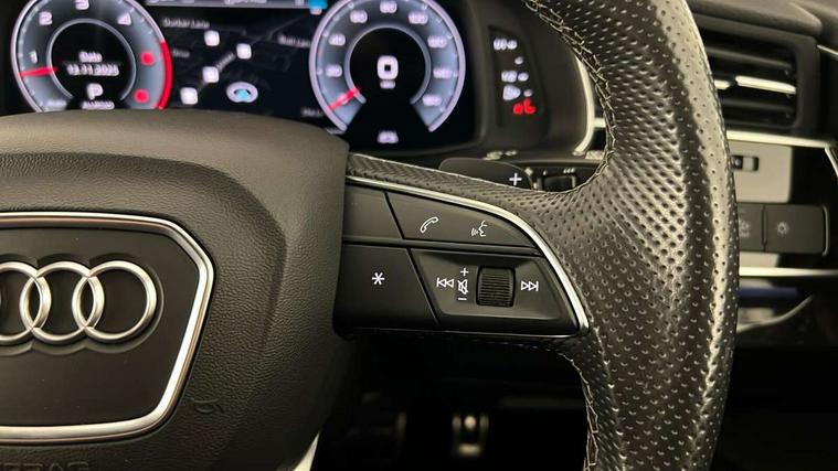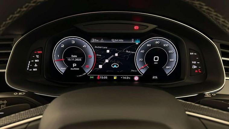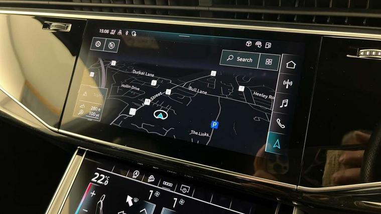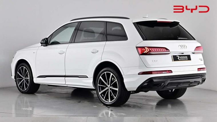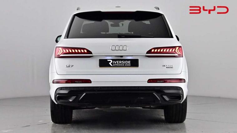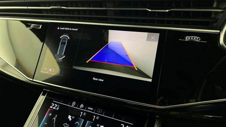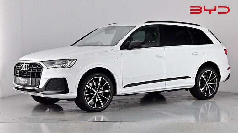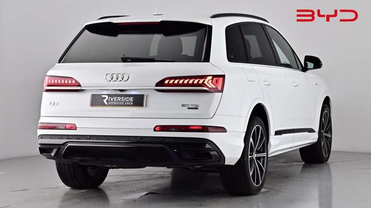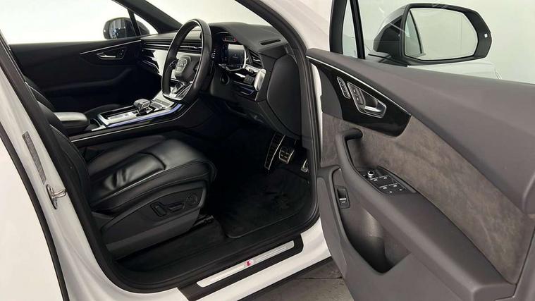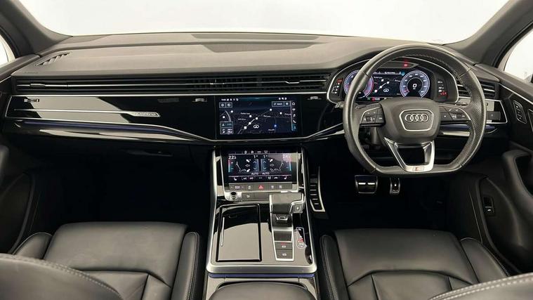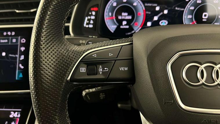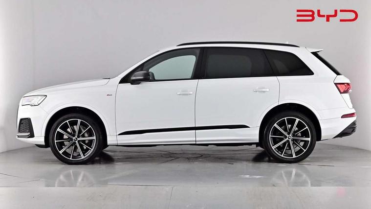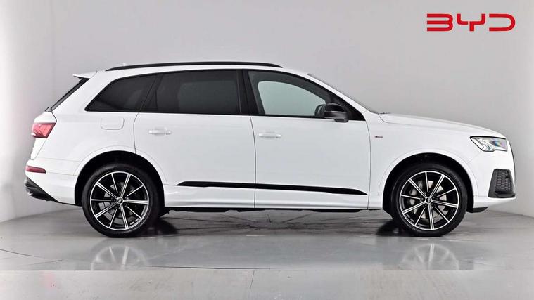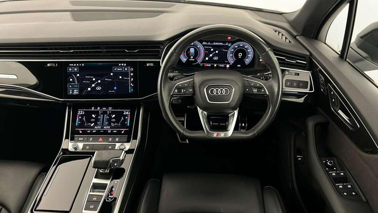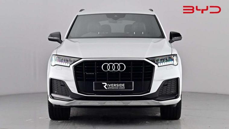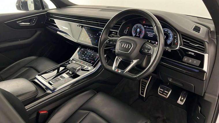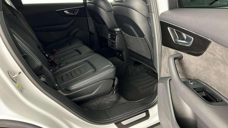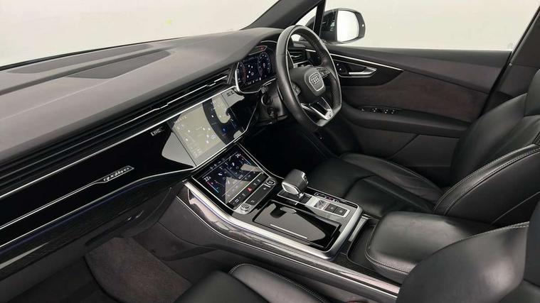 Audi connect safety and service (e-call), Audi drive select (Auto, Comfort, Dynamic, Efficiency, Individual, Off-road and All road), Audi phone box with wireless charging, Camera based traffic sign recognition, Electromechanical steering, MMI navigation plus with MMI touch screens includes 10.1" and 8.6" screens with haptic feedback, Natural voice recognition, Parking system plus - front + rear sensors, Power operated tailgate, Rear view camera, Smartphone interface includes wireless Apple carplay/Android Auto, Start/stop system, 48V Mild hybrid technology, Adaptive air sports suspension, Quattro all wheel drive with self locking centre differential, Audi music interface - front 2 USB-C ports with charger and data functions, Audi sound system with 6 channel amplifier, 180 watt amplifying capacity and 10 loudspeakers including subwoofer, DAB digital radio module, Audi matrix LED headlights with dynamic front and rear indicators, Auto dimming frameless rear view mirror, Black roof rails, Bumpers in contrast paint scandium grey finish includes door trim and wheel arch trim strips, inlays in door strip contain quattro embossing, Electrically adj heated/folding + automatically dimming exterior mirrors with memory + automatic kerb side function for passenger side exterior mirror, Heat insulating glass in windshield, Integrated LED indications in door mirrors, LED daytime running lights, LED rear tail lights, Privacy glass - dark tinted rear and rear side windows from B-pillar backwards, 4 zone deluxe automatic climate control, 7 seat layout with ISOFIX points for the front passenger seat and rear passenger seat, Black cloth headlining, Comfort front centre armrest, Folding rear seats, Front head restraints, Front/rear floor mats, Heated front seats, LED interior ambient lighting, Luggage compartment cover, Luggage compartment sill protection in stainless steel, Rear head restraints, Stainless steel pedals, Sunvisors with illuminated vanity mirrors, Titanium black styling pack - Q7/SQ7, 3 point seatbelts on all rear seats, Audi pre sense front, Driver and front passenger, front side and curtain airbags, Electromechanical parking brake, Electronic Stabilisation Control (ESC) including ABS, ASR and EDL, Extended pedestrian protection measures, Hill hold assist, Seatbelt monitoring, Tyre pressure loss indicator, Warning triangle and first aid kit, Anti theft alarm, Anti-theft wheel bolts and wheel loosening detection, Keyless go with remote central locking, Polished oak trim with grey finish inlay, Tool kit, Tyre repair kit,