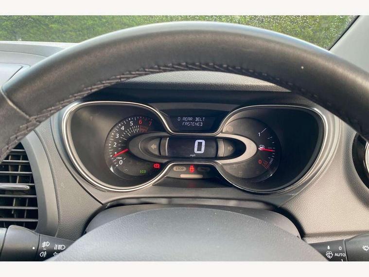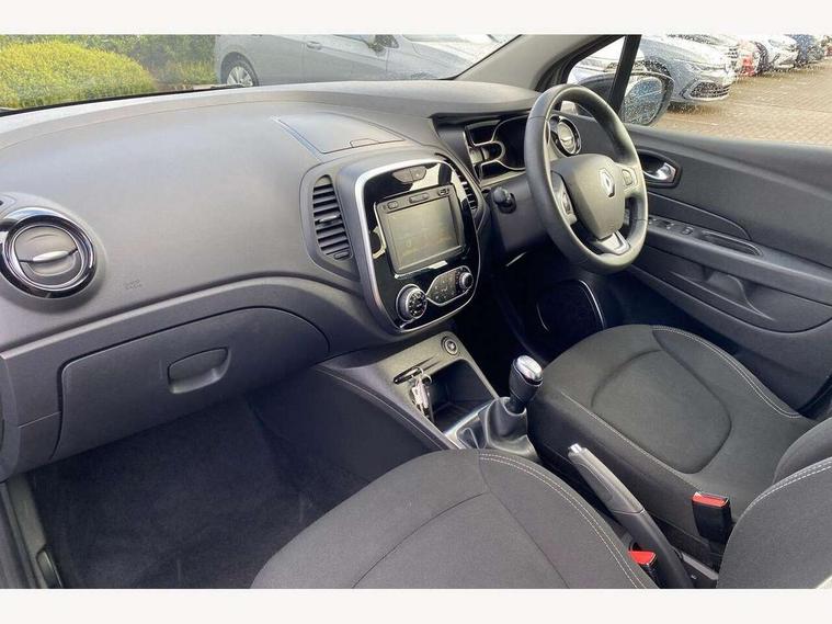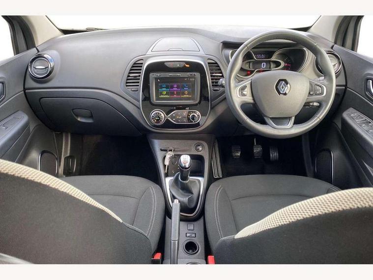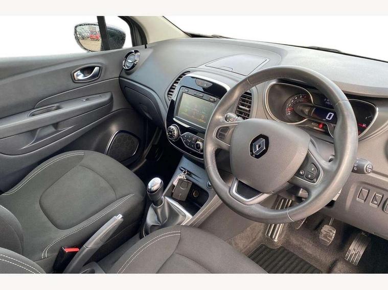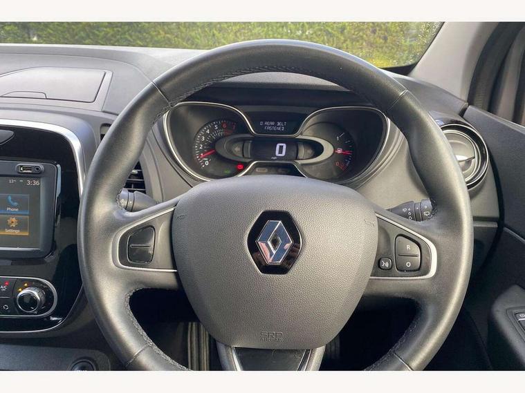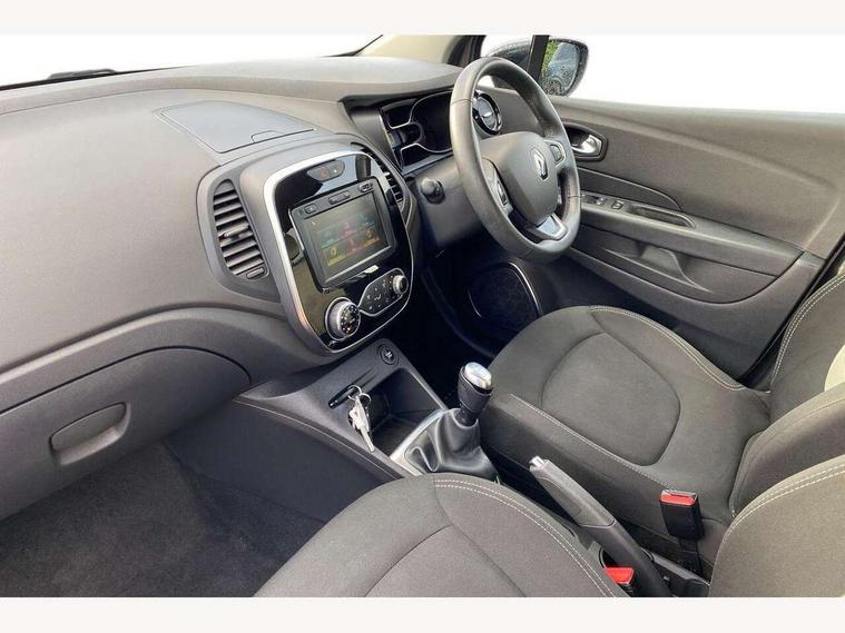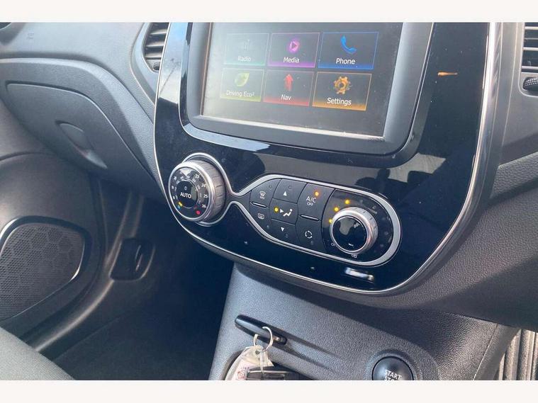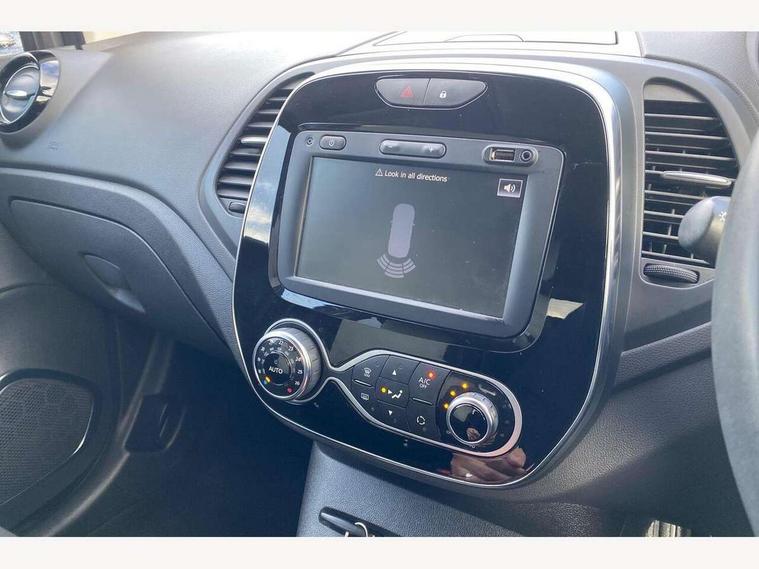 Cruise control + speed limiter, Eco mode, Rear parking sensor, Renault MediaNav with 7" touch screen and Navteq Nav 'n' Go Satellite Navigation, Smartphone cradle, Trip computer, Variable PAS, 4x20W radio with bluetooth hands free and USB, Auxiliary input socket, DAB Digital radio, Fingertip controls for audio system, Body colour door handles, Body coloured bumpers, Electric adjustable heated door mirrors, Electric front windows + one touch + anti-pinch, Electric rear windows, Extra tinted glass in rear windows and tailgate, Front skid plate, LED daytime running lights, LED front fog lights, Rain sensitive wipers + automatic lighting, Rear skid plate, Rear wiper, Variable intermittent front wash/wipe, 12V Accessory socket, 3 rear headrests, 60/40 split folding rear seat bench, Automatic climate control with one touch demist function, Centre console storage tray, Compartment in glovebox, Dark harmony dashboard and door panels, Fixed cloth upholstery, Front cupholder, Front seat backrest storage nets, Heating system with pollen filter, Height adjustable driver's seat, Height adjustable front headrests, Height/reach adjust steering wheel, ISOFIX on front passenger and rear outer seats, Leather steering wheel and gear knob, Removable storage between driver and passenger, Reversible boot floor, Storage area on top of dashboard, Storage compartments in doors, Storage space near handbrake, Variable boot floor, Exterior touch pack Chrome - Captur, Interior touch pack Chrome - Captur, 3 point seatbelts on all rear seats, ABS+EBA, Driver/Front Passenger airbags, ESC - Electronic Stability Control + traction control, Front passenger airbag deactivation, Front side airbags(head+thorax), Hill start assist, Rear door child safety locks, Seatbelt warning, Tyre pressure monitor, Automatic door locking, Deadlocking system, Hands free access with keycard and start button, RAID (Renault Anti-Intruder Device) with automatic door locking, Remote central locking, Thatcham Cat 2 engine immobiliser, 17" Explore alloy wheels with black inserts,