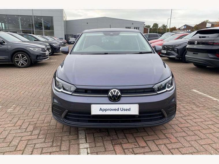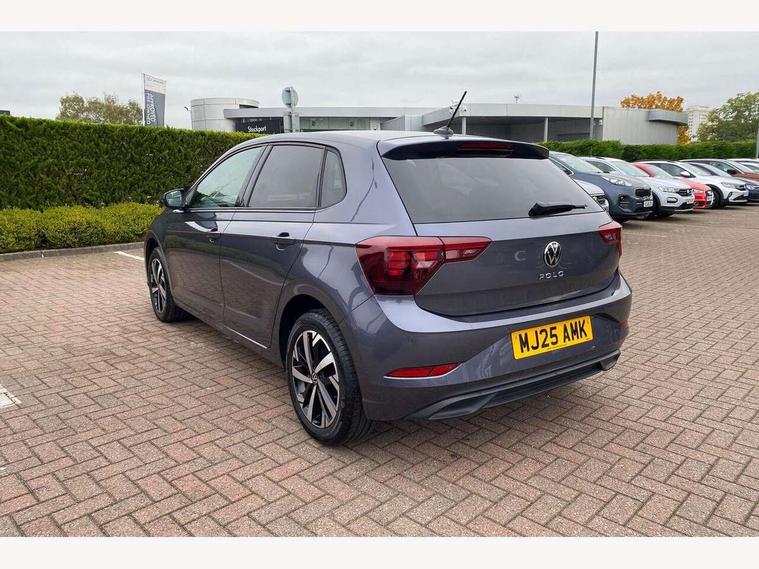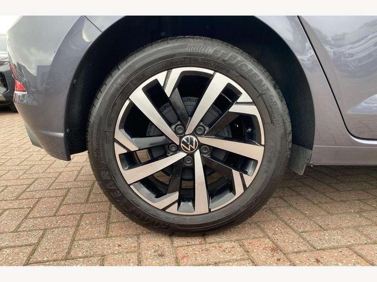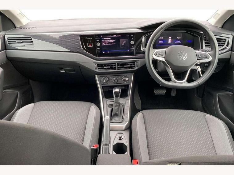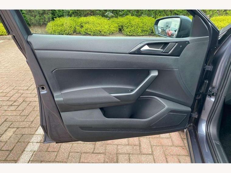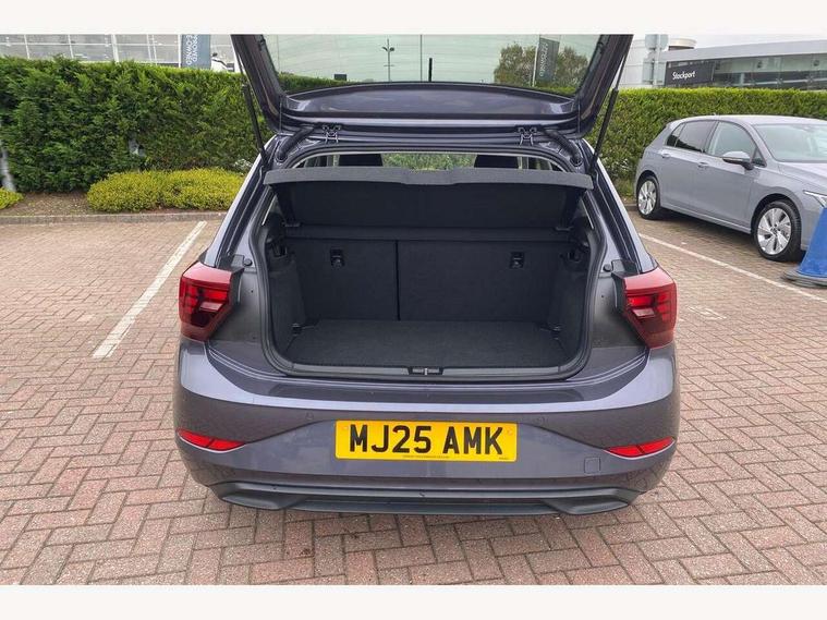 Advanced driver attention and drowsiness monitor, Bluetooth mobile phone interface, Dynamic road sign display, Emergency call service, Multifunction front facing camera for distance control, Park distance control, Power assisted speed sensitive steering, Predictive adaptive cruise control without follow-to-stop and speed limiter, Preparation for navigation system with media and internet package, Preparation for We connect and We connect plus, Rear view camera, Speedo and rev counter, electronic odometer, trip, service interval display and exterior temperature gauge, Standard rear axle, Travel Assist - Lane keeping system and traffic jam assist, Travel assist including emergency assist, Trip computer, Warning signal and warning light for front and rear seatbelts not fastened, Washer fluid level indicator, Wireless app connect, Front wheel drive, Rear shock absorpion, Start-stop system with battery regeneration (recuperation - energy recovery during braking), DAB Digital radio, Diversity antenna for FM reception, Front and rear 6 speakers, Automatic dimming interior rear view mirror, Automatic headlight control with LED separate daytime running lights with coming/leaving home function, Body colour bumpers with chrome inserts, Body colour door handles, Body colour door mirrors, Electric front windows, Engine badge deletion, Headlight range adjustment, Heat insulating and laminated safety glass windshield, LED Headlights, LED rear combination lamps, Power folding adjustable/heated exterior mirrors and front passenger exterior mirror lowering function, Rain sensor, Rear electric windows, Rear fog light, Rear side wing doors, Rear tinted glass from B-pillar backwards approx 65% tinted, Rear windscreen washer and wiper with interval delay, Third brake light, 12V power socket in centre console, 2 front and 2 rear reading lights with switch off delay and dimmer, 2 USB-C ports in the front, 2 USB-C charging sockets on the center console in the rear, 3 rear head restraints, 60/40 split folding rear seat and rear seat bench not split, Ceramique roof lining, Chrome plated radiator grille inserts, air vent surrounds and light switch surrounds, Door and side trim panel, Driver and front passenger seat height adjustment, Driver/passenger sunvisors with illuminated vanity mirrors, Front centre armrest, Front seat backrest storage pockets, Front standard seats, Handbrake lever handle in leather, Hartley/Thomas cloth upholstery, Headliner in recycled material, Isofix child seat preparation easy-fit (for two outer rear seats, and front passenger seat) compatible with I-size, Leather trimmed gear knob, Luggage compartment cover, Luggage compartment lighting, Removable luggage compartment floor, Single front passenger seat, Standard climatic zones, Standard pedal cluster, Three spoke leather wrapped multifunction steering wheel with shifting paddles, Light and vision pack - Polo, 3 point height adj front seatbelts + pretensioners, 3 point seat belt for centre rear seat, 3 point seatbelts, outer rear with ECE lable, ABS, Driver and front passenger airbag with front passenger airbag deactivation, Drivers and front passengers safety optimised head restraints, ESC (Electronic stability control) + EDL (Electronic Differntial lock) and ASR (Traction control), Extended and predictive pedestrian/ cyclist protection, Front assist with autonomous emergency braking (for Adaptive Cruise Control ACC up to 130 mph), Front curtain and side airbags with center airbag, Front disc brakes, Hill hold control, Manual child lock in rear doors, Rear drum brakes, Single tone horn, Tyre pressure loss indicator, Alarm with interior protection, Anti-theft alarm system with interior monitoring, backup horn, and towing protection, Anti-theft wheel bolts, Electronic engine immobiliser, Lava stone black gloss/matt decorative inserts in dash and front door panels, 16" Torsby alloy wheels, Low rolling resistance tyres,