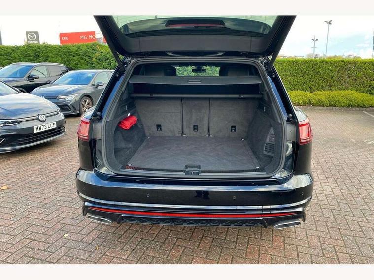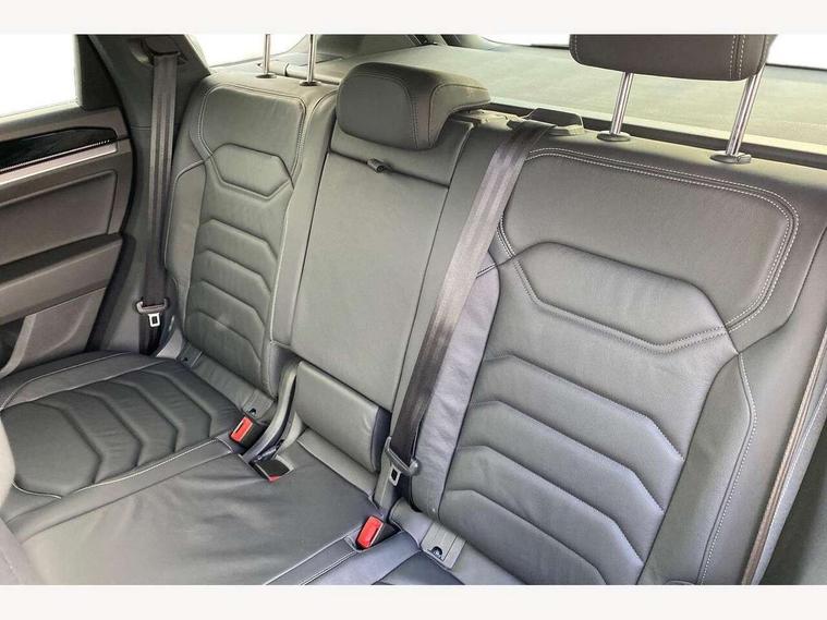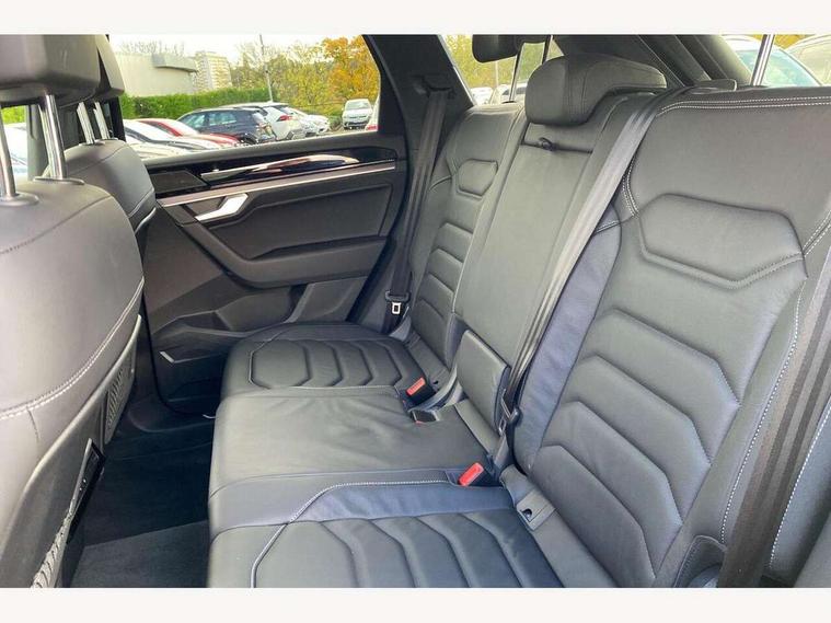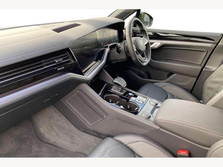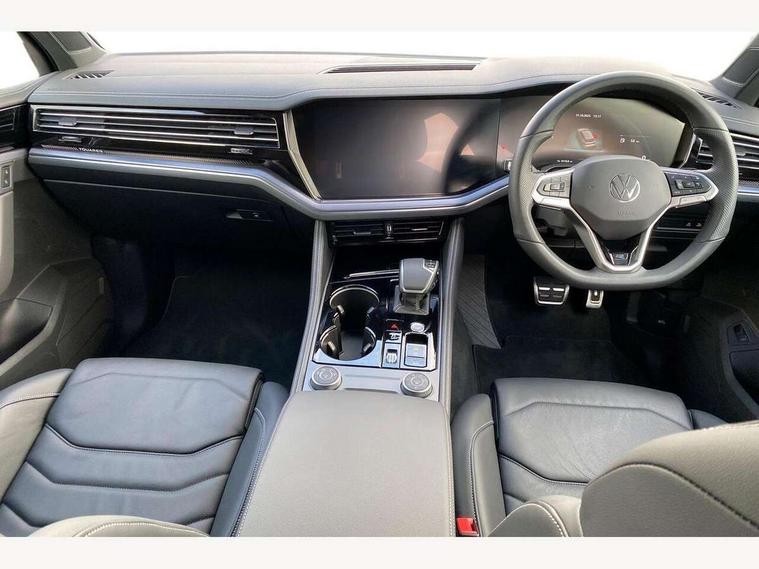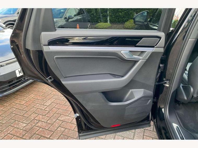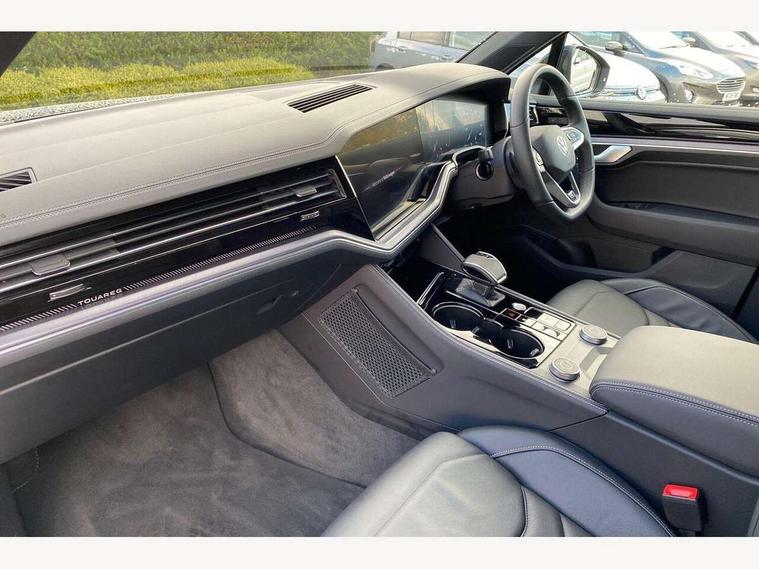15" Screen Top infotainment system Premium (MIB3), Adaptive cruise control, Advanced driver attention and drowsiness monitor, Driver profile selection, Dynamic road sign display, E-Sim card for online connectivity, eCall emergency system, Innovision cockpit, Intelligent park assist, Mobile phone interface with inductive charging, Multi-colour Active Info display, Park Assist - Sensor controlled steering aid to assist parallel or bay parking, PAS, Warning signal and warning light for front and rear seatbelts not fastened, Wireless app connect, Adaptive chassis control, DAB Digital radio, Diversity antenna for AM/ FM reception, We Connect and We Connect Plus functionality, Automatic coming/leaving home lighting function, Automatic headlights, Black door mirrors, Black style comfort bumpers, Dynamic headlight range control with dynamic cornering light, Electric front tilt/slide panoramic sunroof and fixed rear sunroof, Electrically power adjustable, heated, folding, auto dimming, front passenger exterior door mirror lowering function, External USB type C socket and charging sockets, Gloss black roof rails, HD LED Matrix beam plus digital headlight projection with variable light distribution, Headlight washers, Highway light, LED 3rd brake light, LED daytime running lights, LED rear combination lamp with variable lighting functions and special styling, Poor weather light, Rain sensor, Rear exhaust tailpipe, Rear fog light with back up light on both sides, Rear light bar and illuminated logo, Rear side wing doors, Rear wiper, Stainless steel door sill protection, 12V socket in centre console, 3 rear headrests, 3 seat bench in 2nd row, 4 zone climate control, Airbag label on sun visor and B-pillar, Brushed stainless steel pedals, Double sun visors with illuminated vanity mirrors, Front + rear carpet mats, Front centre armrest, Leather wrapped multifunction sports steering wheel, heated, with touch control and shift paddles, Mechanical rear seat release, Power adjustable lumbar support in front, Power seats in front, right side with memory features and seat cushion depth adjustment, Rear seat backrest and split folding with center armrest, Single front passenger seat, Memory pack plus - Touareg, 3 point seatbelts, outer rear with ECE lable, ABS, Child locks on rear doors, Curtain airbags, Driver and front passenger safety-optimised head restraints, Driver/Front Passenger airbags, Extended pedestrian protection measures, Front assist, Front seat side impact airbags, Generative braking with start and stop system, Height adjustable 3 point front seatbelts with pre tensioners, Passenger airbag deactivate switch, Three 3 point rear seatbelts, Two tone horn, Tyre pressure loss indicator, Warning triangle and first aid kit, Alarm system with interior protection, Easy open and close sensor controlled luggage compartment opening and closing with remote unlocking, Keyless Access Keyless locking and starting system with SAFELOCK, Aluminium decorative inserts, Black decorative trims, Gloss black decorative inserts in centre console, Tool kit,