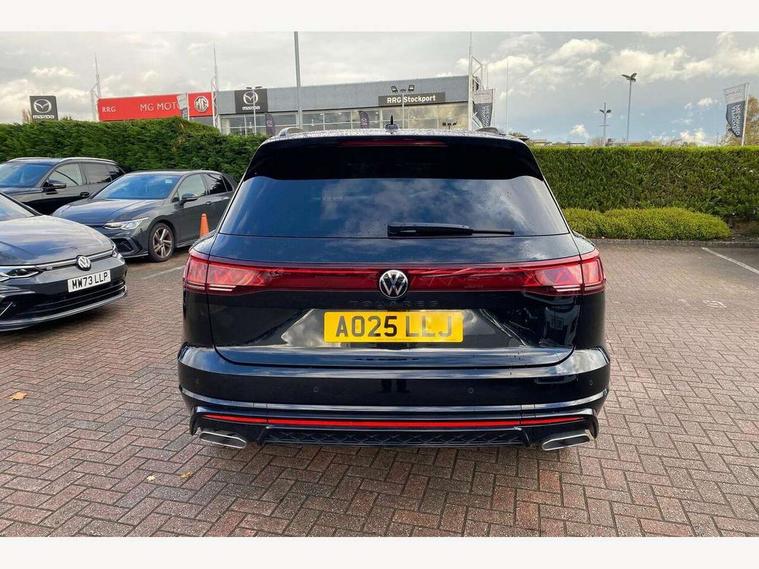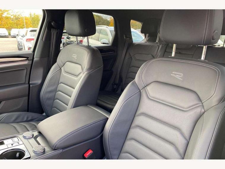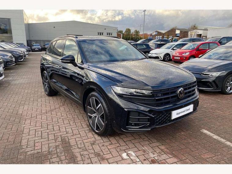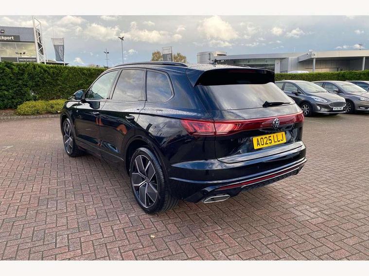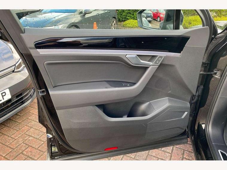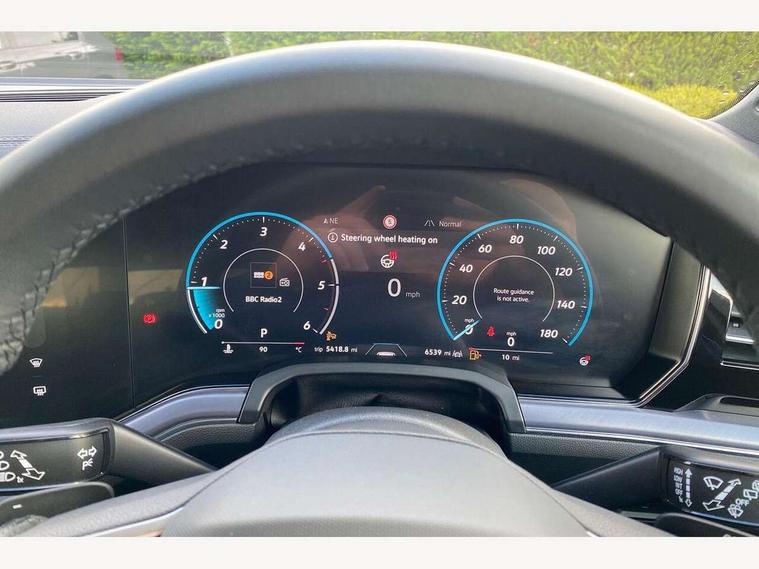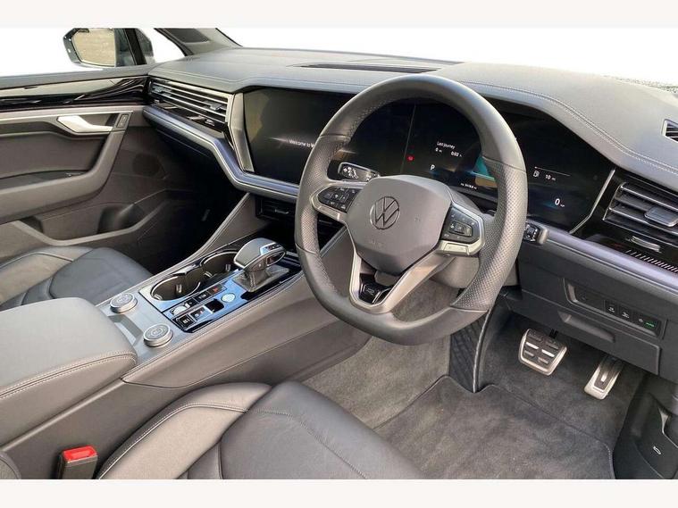 15" Screen Top infotainment system Premium (MIB3), Adaptive cruise control, Advanced driver attention and drowsiness monitor, Driver profile selection, Dynamic road sign display, E-Sim card for online connectivity, eCall emergency system, Innovision cockpit, Intelligent park assist, Mobile phone interface with inductive charging, Multi-colour Active Info display, Park Assist - Sensor controlled steering aid to assist parallel or bay parking, PAS, Warning signal and warning light for front and rear seatbelts not fastened, Wireless app connect, Adaptive chassis control, DAB Digital radio, Diversity antenna for AM/ FM reception, We Connect and We Connect Plus functionality, Automatic coming/leaving home lighting function, Automatic headlights, Black door mirrors, Black style comfort bumpers, Dynamic headlight range control with dynamic cornering light, Electric front tilt/slide panoramic sunroof and fixed rear sunroof, Electrically power adjustable, heated, folding, auto dimming, front passenger exterior door mirror lowering function, External USB type C socket and charging sockets, Gloss black roof rails, HD LED Matrix beam plus digital headlight projection with variable light distribution, Headlight washers, Highway light, LED 3rd brake light, LED daytime running lights, LED rear combination lamp with variable lighting functions and special styling, Poor weather light, Rain sensor, Rear exhaust tailpipe, Rear fog light with back up light on both sides, Rear light bar and illuminated logo, Rear side wing doors, Rear wiper, Stainless steel door sill protection, 12V socket in centre console, 3 rear headrests, 3 seat bench in 2nd row, 4 zone climate control, Airbag label on sun visor and B-pillar, Brushed stainless steel pedals, Double sun visors with illuminated vanity mirrors, Front + rear carpet mats, Front centre armrest, Leather wrapped multifunction sports steering wheel, heated, with touch control and shift paddles, Mechanical rear seat release, Power adjustable lumbar support in front, Power seats in front, right side with memory features and seat cushion depth adjustment, Rear seat backrest and split folding with center armrest, Single front passenger seat, Memory pack plus - Touareg, 3 point seatbelts, outer rear with ECE lable, ABS, Child locks on rear doors, Curtain airbags, Driver and front passenger safety-optimised head restraints, Driver/Front Passenger airbags, Extended pedestrian protection measures, Front assist, Front seat side impact airbags, Generative braking with start and stop system, Height adjustable 3 point front seatbelts with pre tensioners, Passenger airbag deactivate switch, Three 3 point rear seatbelts, Two tone horn, Tyre pressure loss indicator, Warning triangle and first aid kit, Alarm system with interior protection, Easy open and close sensor controlled luggage compartment opening and closing with remote unlocking, Keyless Access Keyless locking and starting system with SAFELOCK, Aluminium decorative inserts, Black decorative trims, Gloss black decorative inserts in centre console, Tool kit,
