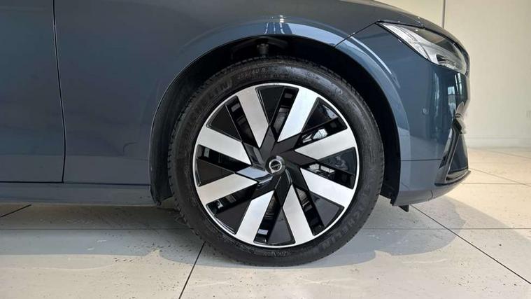 12.3" Progressive Driver Display, 360 degree surround view parking camera with side proximity sensors, 9" centre console touch screen, Adjustable steering wheel force, Apple CarPlay and Android Auto, Bluetooth handsfree system, Drive mode settings, Driver alert control with lane keeping aid, Driver assistance (pilot assist and adaptive cruise control), Driver awareness - Blind spot system + steer assist, cross traffic alert with autobrake, rear collision warning and mitigation, E-call, Emergency assist, Front and rear park assist, Google automotive services - Enabled entertainment apps, navigation with google maps, voice recognition with google assistant, Handsfree bootlid opening/closing, Intelligent speed assistance, Oncoming Lane Mitigation, Power operated tailgate/boot lid, Speed sensitive steering, Volvo on call app, 6m 3 phase 16amp Type 2 / mode 3 charge cable, 8 speed automatic transmission with start/stop + manual change functions, Dynamic chassis, Electric rear axle drive, Lithium-Ion Battery 18.8kWh, On board charger - 6.4 kW 2 phase/3.7kW single phase, Recharging port located in nearside front wing, DAB Radio (Digital Audio Broadcasting), Low speed exterior sound speaker, Premium Sound by Harman Kardon, dirac unison, dolby pro logic II surround sound, 13 speakers/600W output and fresh air subwoofer, Steering wheel remote infotainment controls, Adaptive brake lights with high level LED brake lights, Auto dimming interior + exterior mirrors, Automatic headlight levelling system, Automatic LED Headlights + Active high beam incorporating daytime running lights, Front and rear power windows, Heated windscreen, High gloss black door mirrors and window surround, High gloss black front and rear bumper decoratives, High gloss black mesh front grille and surround, Home safe and approach lighting, Integrated roof rails in high gloss black, Power heated autofolding door mirrors, Puddle lights, Rain sensor with automatic windscreen wiper activation, Rear LED lights with sequential indicators, Rear side wing doors, Rear wiper, Roof antenna, Roof spoiler, Variable front intermittent wipers, Visible VIN plate, 2 zone electronic climate control with Clean zone air quality system + pollen filter, 3 seat bench in 2nd row, 3 Spoke tailored steering wheel with chrome trim, Air purifier particulate matter (PM) 2.5 filter, Ambient door and instrument panel lighting, B Pillar ventilation, Boot lid/tailgate illumination, Bright metal luggage scuff plate, Cargo divider with grocery bag holder, Centre console cupholder and storage, Charcoal carpets and floor mats, Driver and front passenger seat power height adjustment, Extended front seat cushions, Front 12V socket tunnel console and cargo area, Front and rear cabin courtesy light, Front and rear door pocket lights, Front and rear footwell and side step illumination, Front and rear reading lights and centre armrest Storage Illumination, Front headrests, Glovebox compartment with illumination, Heated front seats, Heated rear seats outer positions, Heated steering wheel, Height/reach adjustable steering column, Illuminated luggage compartment, Illuminated recharge aluminium tread plates, Illuminated vanity mirrors + ticket holder, Illumination front tunnel storage, Inner door release handle illumination, Integrated sun curtains in rear doors, ISOFIX attachment on outer rear seats, Leather upholstery, Load cover, Load protection net, Luggage compartment load hooks, Memory function for drivers seat and exterior mirrors, Multi directional lumbar support, Power folding rear headrests, Rear armrest with cupholder, Single front passenger seat, Underfloor cargo storage, Versatile split folding rear seat - 60/40, 3x3 point rear seatbelts, Active bonnet, City safety with steering support with Pedestrian + cyclist + front collision warning with full auto brake and rear auto brake, Driver and front passenger airbags, Drivers knee airbag, Front seats SIPS airbags, Hill start assist, IC (Inflatable Curtains) - Full Length, Passenger airbag cut-off switch, Power child locks on rear doors, Power parking brake with auto hold function, Road sign information display, Run off Road Mitigation, Run off Road Protection, Seatbelt reminder and pretensioners for all seats, SIPS (Side Impact Protection System), Slippery road and hazard light alert, Stability and Traction Control with Spin control, Engine Drag Control and Corner Traction Control, Tyre pressure monitoring system, Vehicle deceleration control with Anti-lock Brake System, Electronic Brake Distribution and Emergency Brake Assist, Warning triangle and first aid kit, WHIPS whiplash protection system - front, 2x Key integrated remote control central locking + fuel flap with deadlocking system and auto open/close power windows, Anti-theft alarm including immobiliser/volume sensor + level sensor, Care key with user defined top speed, Keyless drive includes keyless entry and keyless start, Locking wheel nuts, Private locking for tailgate, Tailored Instrument Panel and Door Tops with Contrast Stitching, 19'' 8 spoke diamond cut black alloy wheels, Tyre sealant kit and compressor,