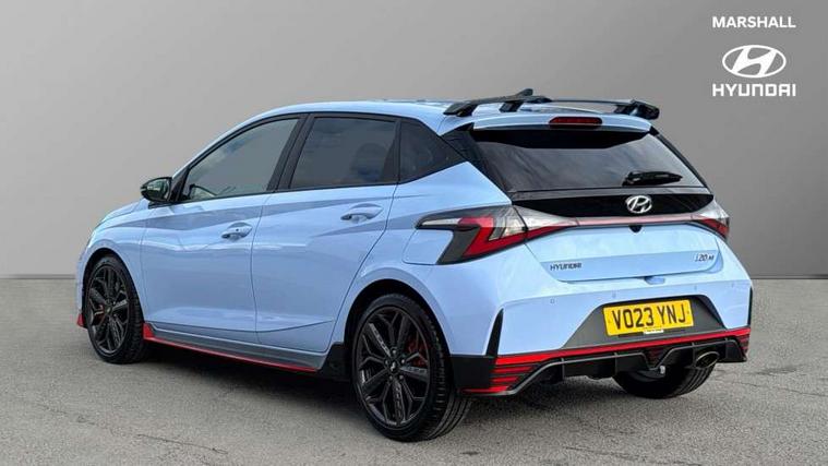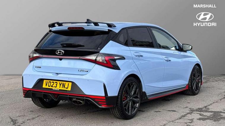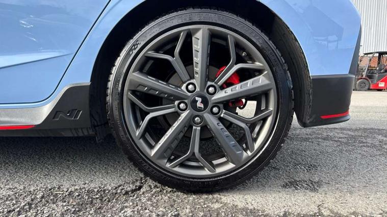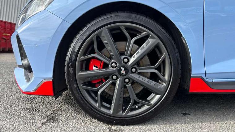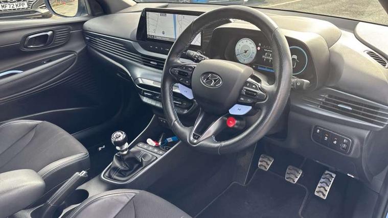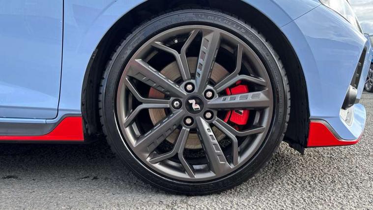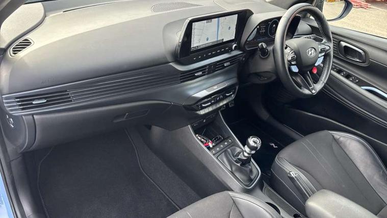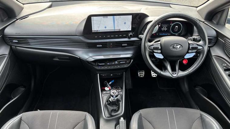 10.25" digital supervision cluster, 10.25" touchscreen centre console display satellite navigation including traffic messaging channel, map care and live services, Apple car play/Android Auto, Bluetooth connectivity with voice recognition, Cruise control + speed limiter, Drive mode selector, Driver alert system, eCall emergency call system, Electric power steering, Emergency stop signalling system, Forward collision assist with pedestrian monitoring and cycle detection, Haptic steering, Intelligent speed limit warning, ISG - automatic start/stop, Lane departure warning system, Lane keep assist, N corner carving differential - mechanical limited slip differential, N custom mode, N grin control system, N Rev matching system, Rear parking sensor, Rear view camera with dynamic limitation singnalling, Trip computer, Wireless charging pad, Launch control, Vehicle Stability Control (VSC), Auxiliary input socket, DAB Digital radio, Steering wheel mounted audio/telephone controls, USB connection, Adjustable intermittent front windscreen wipers with aero wiper blade, Auto dimming rear view mirror, Automatic defog system for front windscreen, Automatic headlights with dusk sensor, Automatic windscreen wipers with rain sensor, Black radiator grille with integrated N logo, Black window surrounds, Body colour exterior door handles, Drivers one touch up/down with anti-trap, Electric adjustable heated door mirrors, Electric folding door mirrors, Electric front windows, Electric rear windows, Front fog lights, Gloss black door mirrors with integrated indicators, High beam assist, LED rear combination lights, MFR - LED headlights, Privacy glass - Rear windows and tailgate, Rear apron with integrated diffuser and red accents, Rear fog lights with N exclusive triangular lamp, Rear roof spoiler with integrated LED brake light, Rear side wing doors, Rear Windscreen Wiper - Intermittent Function, Shark fin antenna, Side skirts with red accents, Signature LED daytime running lights integrated into headlamp, Static Cornering lights, Tinted windows, 12v power outlet - front, 3 seat bench in 2nd row, 60/40 split folding rear seat, Adjustable head restraints, Aluminium sports pedals, Black roof liner, Blue interior mood lighting, Climate control, Driver/passenger sunvisors and illuminated vanity mirrors, Front armrest with storage box, Front map reading lights, Heated front seats, Heated steering wheel, Height adjustable driver's seat, Height/reach adjustable steering column, Isofix rear child seat preparation, Leather wrapped gear knob with N logo, Leather wrapped steering wheel with N logo, Luggage board, Luggage compartment lighting, Map pocket in rear seats, N sport seats in fabric/leather upholstery with performance blue stich detail, Parcel shelf, Satin chrome interior door handles, Single front passenger seat, Sound generator with variable silencer control, 3x3 point rear seatbelts, Anti-lock brake system (ABS), Autonomous emergency braking, Childproof rear door locks, Curtain airbags, Driver/Front Passenger airbags, ESP, Fasten seatbelt reminder, Front seatbelt pretensioners, Front side airbags, Height adjustable front seatbelts, Hill start assist control (HAC), Impact sensing auto door unlocking, Manual handbrake, N performance braking system with red calipers and N logo, Passenger airbag deactivate switch, Tyre pressure monitoring system, Deadlocks, Immobiliser, Locking wheel nuts, Perimeter alarm, Rear occupant alert, Remote central locking, Smart key with keyless entry and engine start/stop button, Speed sensitive auto door locking, Black N exclusive interior trim, 18" Matt grey light alloy wheels, Pirelli P-Zero tyres, Tyre repair kit,