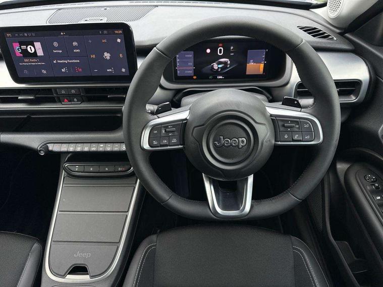 (AEB) Autonomous Emergency Braking with pedestrian and cyclist recognition, 10.25" Full TFT reconfigurable colour cluster, 180 Degree rear camera with drone view, 360 degree parking sensors, Adaptive cruise control, All-Terrain Mode Selector, Apple Carplay/Android Auto with wireless mirroring, BSRF connectivity box, Connectivity services, Drowsy driver detection system, eCall emergency call system, Keyless Start/Engine On Button, L2 Autonomous driving, Lane Centering, Lane keep assist, Odometer, PAS, Quick Guide English, Rear parking sensors, Rear view camera with dynamic grid lines, Telematic box and connected services, Traffic jam assist, Traffic sign recognition, Urban blind spot monitor, Warranty Booklet - UK, Wireless charging, Battery default, High efficiency alternator, Idle coasting, L2-AGM 12V battery, Rear USB port with type-C charging, 3rd brake light, 7 Slots grille in gloss black, All power windows express Up/Down, Automatic headlights, Automatic high/low beam, Body colour exterior door handles, Day time running light, Frameless auto dimming interior rear view mirror, Full LED headlights, Gloss black mirror caps, LED Fog lamps with cornering function, LED rear lights, Power foldable mirrors, Rain sensor, Rear side wing doors, Rear wiper, Silver skid plates, Welcome/leaving lighting, Wiring preperation for towing group by Mopar, 3 rear headrests, 3 seat bench in 2nd row, Automatic A/C (1 Zone), Central console dividers x2, Driver and front passenger sunvisor with vanity mirror, Foldable second row seats 40/60 - Fix and Fold, Front and rear velour floor mats, Front central armrest with storage, Front head restraints, Front passenger grab handle, Front passenger isofix child seat attachment, Front seat backrest pocket, Height adjustable cargo floor, I am Jeep label, Paddle shifter, Predisposal for tunnel pad cover, Single front passenger seat, Synthetic leather steering wheel, Tunnel pad cover and interior rubber mats "Jeep", Anti-lock braking system (ABS), Child locks on rear doors, Electric parking brake, ESC - Electronic Stability Control + traction control, Hill descent control, Kit fix and go predisposition/housing only, Rear seat ISOFIX, Three 3 point rear seatbelts, Volumetric anti theft alarm, Painted silver dashboard, 18" Diamond cut alloy wheels painted in matt black with summer not chainable, Fix and go tyre repair kit,