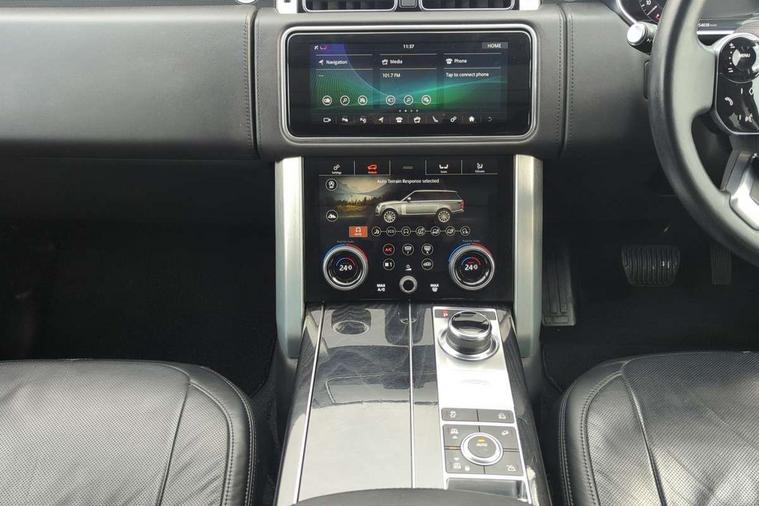 360 degree parking aid, 360 degree surround camera, Adaptive cruise control with steering assist, Android Auto, Apple car play, Blind spot assist, Bluetooth mobile phone connection, Clear exit monitor, Driver condition monitor, Dynamic response, Dynamic route guidance, Electric power assisted steering (EPAS), Interactive Driver display instrument cluster, Lane keep assist, Navigation pro system with 10" touch screen, app interface and media storage, Park Assist - Parallel Park/Parking Exit/Perpendicular park, Powered gesture tailgate/boot lid, Push button starter, Rear camera wash, Rear traffic monitor, Rotary shifter, Service interval indicator, Touch pro duo system, Traffic sign recognition with adaptive speed limiter, Trip computer, Voice control system, 8 speed automatic transmission, Active rear locking differential, Adaptive dynamics, All terrain progress control, All Wheel Drive (AWD), Automatic access height, Diesel particulate filter, Electronic air suspension, Terrain Response 2 Auto, Twin speed transfer box, Digital Audio Broadcast radio-DAB, Digital TV, InControl app, USB socket, Acoustic windscreen, Auto dimming interior rear view mirror, Auto self levelling headlights, Automatic headlights, Body coloured bumpers, Centre high mounted stop light, Door/quarter lights in toughened plate glass, Electric windows with one touch open/close and anti trap, Electrical towing preparation, Follow me home headlights, Front and rear recovery eyes, Front fog lights, Headlamp power wash, Heated rear window, Heated windscreen includes heated washer jets, Illuminated aluminium treadplates with Autobiography script, Integrated twin tailpipes, LED rear lamps, LED tail lights, Power fold, auto-dimming, heated door mirrors with memory and approach lights, Power front/rear windows with global close, Rain sensing windscreen wipers, Rear fog lights, Rear wash/wipe, Side repeater indicators in mirror, Trailer stability assist, 12V power point in luggage area, 12V power sockets, 3 rear headrests, Black gearshift paddles, Cabin pre-conditioning with remote control, Centre console with storage and armrest, Configurable Ambient interior lighting, Customer configurable single point entry, Driver and passenger front seat armrests, Easy boot loading, Electrically adjustable steering column, Extreme passenger seat away, Folding rear seats, Four zone climate control, Front and rear cupholders, Front and rear grab handles, Front headrests, Front seat back map pockets, Heated steering wheel, Loadspace cover, Loadspace light, Lockable glovebox, Luggage compartment lighting, Luggage tie down in loadspace, Perforated Semi-Aniline leather upholstery, Power deployable rear centre console, Premium carpet mats, Rear centre armrest, Rear ISOFIX, Rear seat lumbar and powered headrest with wings, Remote intelligent seat fold, Soft close doors, Through load facility, Twin blade sunvisors with Illuminated vanity mirrors, 3 rear 3 point seatbelts, Anti-lock braking system (ABS), Auto lock system when vehicle in motion, Cornering brake control (CBC), Curtain airbags, Customer configurable autolock, Driver/front passenger head+thorax airbag, Drivers knee airbag, DSC - Dynamic Stability Control, Electronic brake force distribution, Electronic parking brake, Electronic traction control, Emergency braking, ESP, Front airbags with passenger seat occupant detector, Front seatbelt pretensioners with force limiters, Front side airbags, Height adjustable front seatbelts, High speed emergency braking, Hill descent control, Hill launch assist, Low traction launch, Power operated child locks, Roll stability control, Tyre pressure monitoring system (TPMS), Immobiliser, Intrusion sensor and alarm, Keyless entry, Locking wheel nuts, Remote central locking,