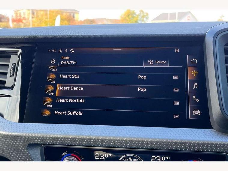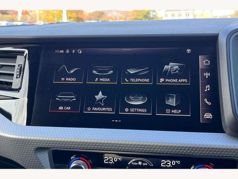 10.25" Digital instrument cluster display classis style instrument dials + speed, odometer, time, outside temperature, telephone menu + fuel level warning, Audi smartphone interface with connect compatible smartphone via USB directly MMI display + Nav, music, third party apps controlled via MMI controller, Automatic start/stop system, Bluetooth interface, Cruise control, Driver's information system, Electromechanical power steering, Emergency e-call, Emergency services call system, Lane departure warning system, Service interval indicator, Speed limiter, Voice control system, Washer fluid level indicator, Sports suspension, 1 x SDXC card reader, 2 x USB type C connection points, DAB Digital radio, MMI radio plus with 8.8" colour MMI display screen and MMI touch, Auto dimming rear view mirror, Black door mirrors, Black side skirts, Body coloured bumpers, Door sill trims with aluminium inlays and logo, Electric front and rear windows, Electrically adjustable, heated, folding door mirrors with integrated LED side indicator, Front side air inlets in grained matt black and C frame in anthracite black, Front wing badges, Heat insulating glass windscreen and side windows, Heated rear windscreen, High level LED brake light, LED headlights with LED rear lights + dynamic rear indicators + headlight adjustment and high beam, turning light + LED daytime running lights, Radiator protective grille frame in matt aluminium silver, Rain and light sensors, Rear diffuser strip in matt titanium black, Rear fog lights, Rear side wing doors, Rear wing door, Rear wiper, Side front spoiler lips in grained matt black, 12V socket in centre console with two cup holders, 3 rear seats with headrests, 3 seat bench in 2nd row, 3 spoke flat bottomed multi-function plus leather steering wheel with S badging, grips in preforated leather and contrast stitching, 40:60 Split folding rear seat or folded fully, Black cloth headlining, Driver and passenger seat with manual height adjust with forward and backwards adjustment, Front and rear black floor mats with contrast stitching in fine silver, Front head restraints, Front passenger seat, Height and reach adjustable steering wheel, ISOFIX child seat mounting for front passenger and outer rear seats including top tether attachment point of outer rear seats, Leather gear knob with aluminium trim, Luggage compartment light with front and rear reading lights, Manually adjustable lumbar support in front seats, Stainless steel pedals, Black styling pack - A1 Sportback Black Edition, LED interior lighting pack - A1, Luggage compartment pack - A1, 3x3 point rear seatbelts, Brake assist function, Driver and front passenger airbag with front side and head airbags, Electronic Stability Control including ABS, EBD, ASR and EDL, Front passenger airbag deactivation switch, Hill hold assist, Manual rear child locks, Seatbelt height adjustment for front seats, Seatbelt monitoring, Tyre pressure warning light, Warning triangle and first aid kit, Anti theft alarm, Anti theft wheel bolts and loose wheel warning, Audi pre-sense front with pedestrain and cyclist recognition, Immobiliser, Remote central locking with 2 foldaway keys, Aluminium trim for control switches, air vents and digital instrument cluster, Silver grey inlays polygon structure in diamond paint finish, Structured grey accent areas including air vents, door handle recesses and centre console in quartz paint finish, 18" 7 spoke rotor design alloy wheels in gloss anthracite black, diamond cut finish,