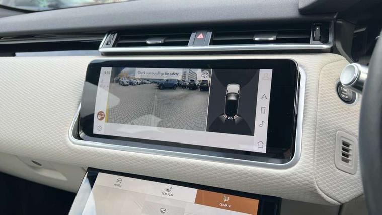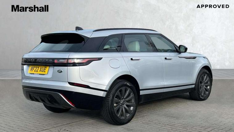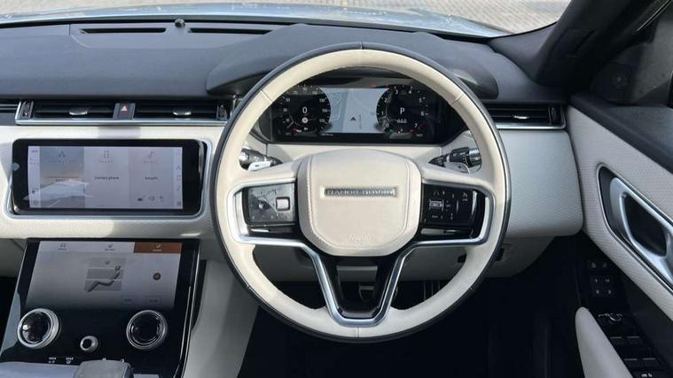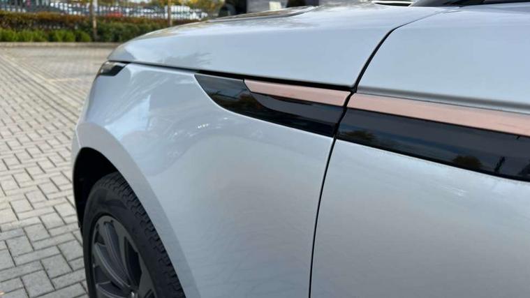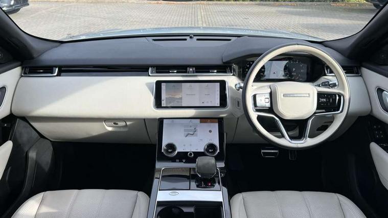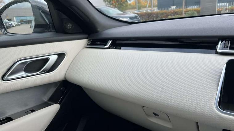 10" deployable touchscreen, Android Auto, Apple car play, Blind spot assist, Bluetooth connectivity, Brake pad wear indicator warning light, Driver condition monitor, eCall emergency call system, InControl remote, Land Rover InControl apps, Lane keep assist, Pivi pro with connected navigation, Push button start, Rear traffic monitor, Service indicator, Speed proportional electronic power assisted steering (EPAS), Traffic sign recognition with adaptive speed limiter, Trip computer, Voice control system, 8 speed automatic transmission, All terrain progress control, Open differential with torque vectoring by braking, Single speed transfer box, Digital Audio Broadcast radio-DAB, Steering wheel mounted controls, Acoustic laminated windscreen, Adaptive front lighting system, Auto dimming interior rear view mirror, Automatic headlamp levelling, Automatic headlights, Body coloured bumpers, Boot protection plate, Electric heated/power fold door mirrors with approach lights and auto dimming driver side, Electric windows with one touch open/close and anti trap, Flush deployable exterior door handles, Follow me home headlights, Heated rear window with timer, Heated washer jets, Heated windscreen, LED 3rd brake light, Metal load space scuff plates, No badge - Removes engine badge, Rain sensor windscreen wipers, Rear animated directional indicators, Rear fog lights, Rear side wing doors, Rear wash/wipe, Tailgate/boot lid spoiler, Trailer stability assist, Velar and R-dynamic badge, 3 seat bench in 2nd row, Ambient lighting, Bright metal pedals, Driver/passenger sunvisors with illuminated vanity mirrors, Isofix system on outer rear seats, Loadspace cover, Overhead lighting console, Overhead stowage for sunglasses, Passive front headrests, Rear air vents, Rear centre headrest, Satin chrome gearshift paddles, Single front passenger seat, Standard interior, Twin front cupholders, Twin sliding front centre armrest, Online pack with data plan - Velar, 355mm front brakes and 325mm rear brakes, 3x3 point rear seatbelts, Anti-lock braking system (ABS), Cornering brake control, Curtain airbags, Customer configurable autolock, Door side intrusion beams, Driver airbag, DSC - Dynamic Stability Control, Electronic brake force distribution, Electronic parking brake, Electronic traction control, Emergency brake assist, Emergency braking, Front and rear seatbelt reminder, Hill descent control, Hill launch assist, Low traction launch, Passenger airbag, Power operated child locks, Rear airbags, Roll stability control, Side airbags, Tyre pressure monitoring system, Unpainted brake calipers, Global lock and unlock switch on driver door, Immobiliser, Intrusion sensor, Keyless entry, Lock only switch on front passenger door, Locking wheel nuts, Perimetric alarm, Remote central locking,