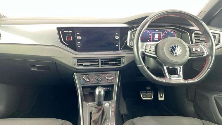 ACC - Adaptive cruise control with front assist, forward collision warning, distance monitoring, city emergency brake and speed limiter, Digital clock, Digital Cockpit Pro - Active info display, Driver alert system, Driving Mode Selection with four preset modes - Eco, normal, sport or individual modes, Emergency call service, Lights on warning, Multifunction computer plus, Power assisted speed sensitive steering, Speedo and rev counter, electronic odometer, trip, service interval display and fuel gauge, Start/stop system, Volkswagen connect, Warning buzzer and light for front seatbelts unfastened, Wireless app connect, Battery regeneration during braking, Galvanished body, Sports select suspension lowered by 15mm, XDS electronic differential lock for improved traction and handling, Diversity antenna for FM reception, Black grille with chrome surround, Body colour door handles, Body coloured side sills, Chrome trimmed strip on lower bumper, Door sill protectors with GTI logo, Electric front windows, Electrically adjustable and heated door mirrors with reverse activated kerb view adjustment on passenger's side, Front windscreen washers and wipers with 4 speed intermittent delay, GTI name plate, Heated rear window with auto timer, High level 3rd brake light, LED darkened rear light clusters, LED headlamps for low beam and high beam with separate daytime running light and automatic headlight range adjustment, LED rear number plate lights, Rear diffuser, Rear electric windows, Rear windscreen washer and wiper with interval delay, reverse activated, Twin tailpipe exhaust, 2 bag hooks in luggage compartment, 2 front cupholders and 12 V socket with cover, 3 rear head restraints, 60/40 split folding rear seat, Ambient lighting in front foorwell, front/rear door and dashboard light strips, Centre console storage with open storage compartment, Chrome-plated electric mirror adjustment switch surround, Chrome-plated electric window button surround, Driver and front passenger seat height adjustment, Driver and front passenger sunvisors with illuminated vanity mirrors, Dust/pollen filter, Folding rear seat backrest, Front + rear carpet mats, Front head restraints, Front seat backrest storage pockets, Front sport seats, Gear lever gaiter in black trim surround, Glovebox, Handbrake grip button in chrome effect, Height/reach adjustable steering column, Instrument lighting, adjustable panel illumination, Interior light with delay, Isofix Preparation 2 Rear child seats, Leather gear knob and handbrake grip, LED interior lighting - 2 reading lights front and rear with interior delay and dimming function, Luggage compartment cover, removable, Luggage compartment lighting, Luggage compartment with variable load floor, Lumbar adjustment for front seats, Stainless steel pedals, Storage compartment in front doors, Storage compartment in rear doors, Storage compartment under front seats, Three spoke leather wrapped multifunction sports steering wheel with shifting paddles, Titanium black roof lining and sun visors, Unique R Line door sill protectors, GTI styling pack - Polo, Light and sight pack - Polo, 3 point height adj front seatbelts + pretensioners, 3x3 point rear seatbelts, ABS, Automatic post collision braking, Driver/front passenger airbag, Drivers and front passengers safety optimised head restraints, ESP with EDL + ASR, Front and rear passenger curtain airbags, Front passenger airbag deactivation, Front seat side impact airbags, Front/rear disc brakes, Hill hold control, Hydraulic Brake Assist (HBA), Predictive pedestrian protection, Red brake calipers, Single tone horn, Tyre pressure monitoring system, Alarm with interior protection and deactivation via infotainment system, Electronic engine immobiliser, Remote central locking with 2 remote folding keys, Remote keyless entry using key fob including Start/Stop button on centre console, Chrome plated air vent surround, Chrome plated instrument surrounds,
