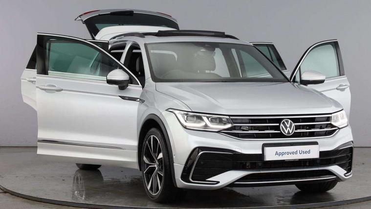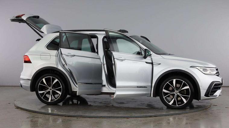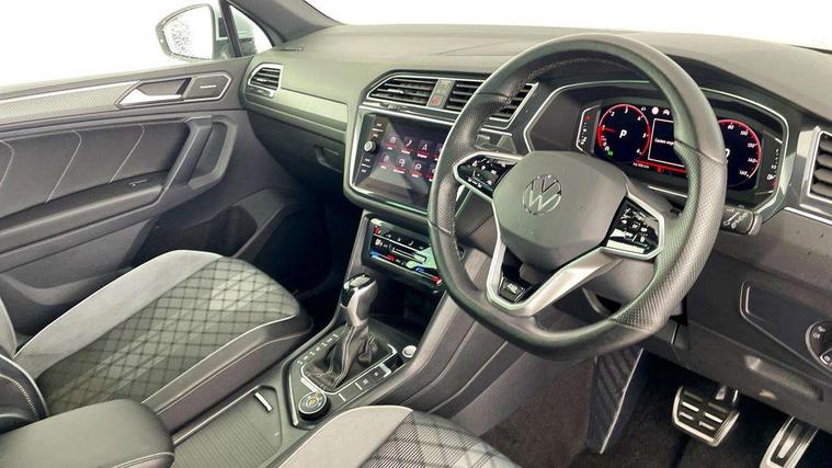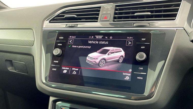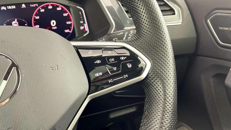 Adaptive cruise control ACC stop and go including speed limiter, App-Connect incl. App-Connect Wireless for Apple CarPlay and Android Auto, Bluetooth phone integration system, Distance control assist, Driver alert system, Driver profile selection, Dynamic road sign display, eCall emergency call system, Electromechanical speed sensitive power steering, Engine start/stop button, Lane keeping system Lane Assist, Lights on warning, Multifunction front facing camera, Outside temperature display, Premium multifunction display with multi colour display, Remote control boot opening, Rev counter, Revision / skills operating concept travel assistant, Service interval indicator, Speed limit display, Start/stop system with regenerative braking, Trip computer, Warning sound and light for doors and tailgate open, All wheel drive - 4Motion, Battery regeneration during braking, Diesel particulate filter, Misfuel prevention device for diesel engine, Selective Catalytic Reduction, XDS electronic differential lock for improved traction and handling, 4 X 20 watt output, 8 Speakers, Diversity antenna for FM reception, Radio, SD card slot, Simultaneous pairing of 2 compatible mobile devices, SMS functionality - read, compose and send SMS messages using touch-screen display, Title and cover art display, USB C ports, Auto dimming interior rear view mirror, Automatic headlight control system, Body colour door handles, Chrome moldings on the side windows, Coming/leaving home lighting function, Dynamic headlight range control, Front and rear electric windows, Heated rear window, High level 3rd brake light, Laminated safety glass windshield, heat and sound insulating, LED headlamps with LED separate daytime running light and dynamic cornering light, LED rear combination lamps, LED rear number plate lights, License plate carrier in front and rear, Poor weather light and cornering light, R Line body kit, R Line side sills, Rain sensor windscreen wipers, Rear exhaust tailpipe, Rear fog lamp, Rear side wing doors, Rear spoiler in R style, Rear windscreen washer and wiper with interval delay, Side and rear windows in heat insulating glass, Trailer Stability Programme, Unique R Line badging, Windscreen wipers/ intermittent wipe + 4 position delay, 12V outlet in center console rear and in luggage compartment, 12V outlet in front and tray, 2 cup holders in front, 2 LED front reading lights, 2 LED rear reading lights, 3 bench rear seats in 2nd row, 3 rear headrests, 4 load lashing points, 40:20:40 split folding rear seats, Air Care Climatronic 3 zone automatic climate control with enhanced air filter and controls in the rear, Backrest release for left front seat, Black headlining, Brushed stainless steel pedals and footrest, Carpet mats in front and rear with decorative stitching in Gray, Climate control unit rear with touch function, Door and side trim panel in foam film, insert in leatherette, Front centre armrest, Front footwell illumination, Front seats head restraints (x-adjustment), Height adjustable front seats, Height/reach adjust steering wheel, Instrument lighting white adjustable panel illumination, Interior light with delay, Isofix Preparation 2 Rear child seats, Leather gear knob, Lockable cooled glovebox, Luggage compartment lighting, Luggage net, Rear bench seat asymetrically split folding, longitudinally movable and folding with load-through hatch and center armrest, Remote unlocking for rear seat backrest, Removable luggage cover, Removable rear headrests, Safety optimised front head restraints, Single front passenger seat, Sliding/reclining rear seats, Standard rear seat release, Storage compartment in driver's door, Storage compartment in passenger's door, Storage compartment in rear doors, Storage compartments in luggage area left and right, Storage tray on dashboard, Sun visors with illuminated vanity mirrors, Top front comfort seats, Variable boot floor, height adjustable and removable, Driver assistance pack plus - Tiguan DSG, 3 point seat belt for centre rear seats, 3 point seat belts with seat belt pretensioners for the outer rear seats, Active bonnet, Curtain airbags for front and rear passengers, Driver/Front Passenger airbags, Drivers knee airbag, Electronic parking brake with auto hold, Electronic Stability Control with driver steering recommendation, ABS, ASR, EDL, EDTC and trailer stabilization, Front assist with autonomous emergency braking (for Adaptive Cruise Control ACC up to 130 mph), Front disc brakes, Front passenger airbag deactivation, Front side airbags, Height adjustable front 3 point seatbelts + pretensioners, Hill hold control, Manual child proof rear door locks, Pedestrian monitoring system, Power assisted brakes, Proactive passenger protection system in combination with front assist, Rear disc brakes, Rigid safety cell with front and rear crumple zones, Two tone horn, Warning sound and light for front seat belts if unfastened, Anti theft alarm system with interior monitoring, backup horn and towing protection, Anti theft wheel bolts, Electronic engine immobiliser, Tool kit,