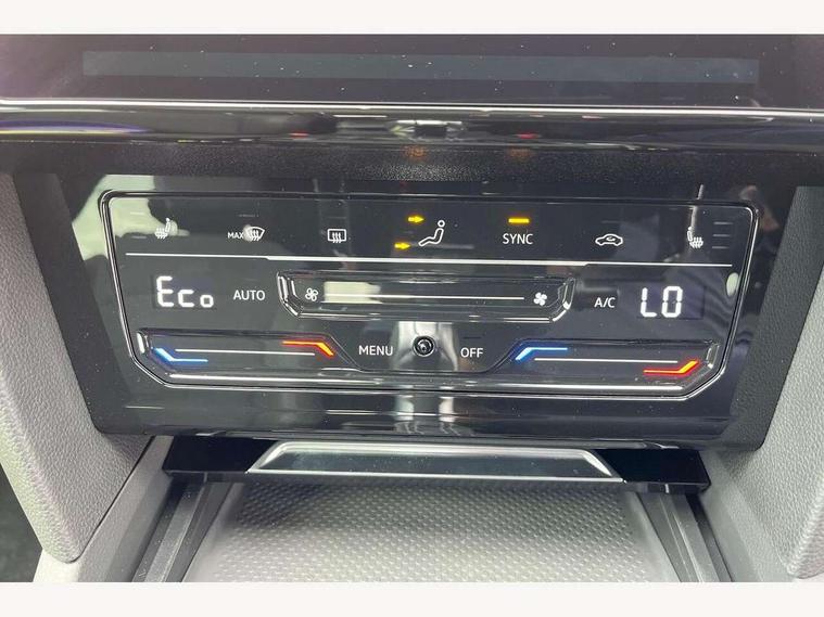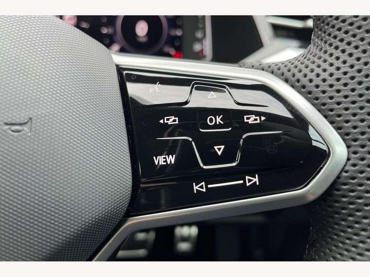 Adaptive cruise control (ACC) with speed limiter, front assist (reacting vehicles pedestrian and cyclists) and follow to stop, App connect including wireless Apple CarPlay, Camera for warning system, Digital cockpit with 10.25" high resolution TFT display screen with customisable menus and information, Driver alert system with fatigue detection, Driver profile selection including ECO function, Dynamic road sign display, eCall - Emergency call service for SOS calls to emergency response, Emergency assist, Hands free boot opening, Press and drive key, Progressive steering, Speedo and rev counter, electronic odometer, trip, service interval display and exterior temperature gauge, Tailgate, Travel assist - Lane keeping assist and traffic jam assist, Voice activation for telephone and navigation, 10 amp mode 2 charging cable, 16 amp mode 3 charging cable, Dynamic Chassis Control (DCC) - Adjustable dampers lowered by 15mm, Start/stop function with battery regeneration, 8 Speakers, Premium USB cable in choice of either Apple or Android smartphone compatibility, Auto dimming interior rear view mirror, Automatic headlights, Body colour door handles, Body colour side skirt, Body coloured top and matt black lower door mirrors with integrated indicators, Chrome plated radiator grille inserts and light switch surrounds, Chrome side window surrounds, Dynamic headlight range control, Electric folding door mirror, adjustable, heated with front passenger exterior mirror lowering function, External USB-C data socket with increased charging performance in front, Front and rear electric windows, Front and rear stainless steel door sill protection, Front windscreen washers and wipers with 4x interval delay, Heat insulating glass windscreen, Heat insulating side and rear windows, Heated rear windscreen, Heated windscreen washer jets, LED 3rd brake light, LED rear combination lamp with dynamic indicators, LED rear number plate lights, Panoramic sunroof with tilting and sliding including integrated roller blind, R Line design body coloured bumpers, Rain sensor, Rear boot spoiler, Rear fog lamp on one side and reversing lamp on both sides, Rear side wing doors, Rear tinted glass from B pillar backwards, approx 65% tinted, Rear wash/wipe, Tailpipes behind rear bumper, 12V socket in front centre console, 12V socket on rear of front centre armrest, 3 rear head restraints, 3 seat bench in 2nd row, 30 colours options interior ambient lighting, 60:40 split folding rear seat backrests with centre armrest, Air care climatronic 3 Zone electronic air conditioning with automatic air recirculation, Black roof lining, Chrome trim on upper and lower air vents extending across cockpit, Driver and front passenger sunvisor with vanity mirror, Front + rear carpet mats, Front cupholders x 2, Front footwell illumination, Front sports comfort seats, Glovebox, Heated front seats, Height/reach adjust steering wheel, Isofix child seat preparation easy fit for two outer rear seats, Luggage compartment lighting, Removable luggage compartment cover, Single front passenger seat, Split folding front seat backrest with front centre armrest, Stainless steel pedals, Two LED front reading light, 3 rear three point seatbelts, ABS+EBD+Brake assist, Child locks on rear doors, Driver airbag and front passenger airbags with deactivation switch including driver knee airbags, Electronic parking brake, Electronic stability control (ESC) and Electromechanical brake booster, Front disc brakes, Front side airbags with curtain airbags, Hill start assist, Pro active occupant protection to detect critical situations with elevated accident potential from the front, Rear disc brakes, Three point height adjust front seatbelts + pretensioners, Two tone horn, Tyre pressure loss indicator, Warning buzzer for seatbelts if unfastened, Warning triangle, Alarm with interior protection with deactivation via infotainment system, Electronic engine immobiliser, Keyless entry system including start/stop button on centre console, Remote central locking, Aluminium decorative inserts, Chrome trim on lower doors in front and rear, Leatherette insert on door and side trim panel in foam film, Piano black decorative inserts in centre console, 19" Montevideo alloy wheels with Airstop tyres + anti-theft wheel bolts, Tyre mobility kit,
