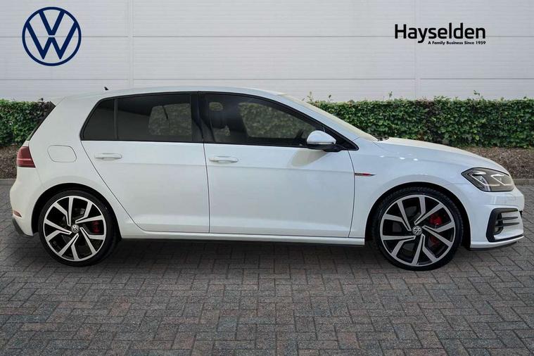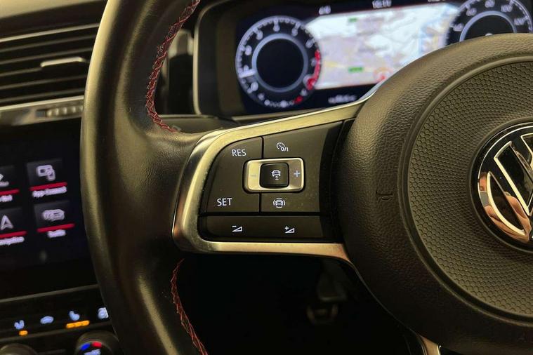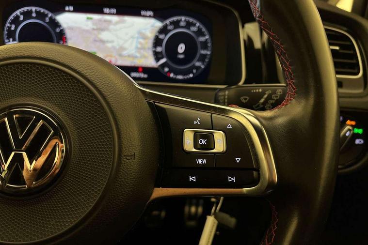 'Lights On' Reminder warning buzzer, ACC - Adaptive cruise control with front assist, forward collision warning, distance monitoring, city emergency brake and speed limiter, Active information display - 12.3" high resolution TFT display, Bluetooth telephone and audio connection for compatible devices, Brake pad wear indicator warning light, Car information display, Driver alert system, Driver profile selection, Driving Mode Selection with four preset modes - Eco, normal, sport or individual modes, Front assist, radar sensor controlled distance monitor, city emergency braking + predictive pedestrian protection, Front assistant collision mitigation, Instrument cluster in white, Multifunction computer with visual gear change recommendation for fuel consumption, Power assisted speed sensitive electro-mechanical steering, Rear view camera, Speedo, rev counter, electronic odometer, trip, service interval display, exterior temperature and fuel gauge, Stop/start system, Ultrasonic front and rear optical and audible parking sensors, Warning buzzer and light for front seatbelts unfastened, Battery regeneration during braking, Limited slip differential, Lowered sports suspension, Composition media system, DAB Digital radio receiver, MDI multi device interface, MP3/WMA compatability, Multi device interface (MDI) with USB connection, Premium USB cable in choice of either Apple or Android smartphone compatibility, SD card slot, SMS Functionality, Title and cover art display, 4 X 20W output, USB connection and socket, USB and SD card connectivity, Volkswagen media control, 3D-LED tinted rear light clusters with indicator sweep function, Automatic dimming rear view mirror/rain sensor, Black rear diffuser, Body colour door handles, Body colour door mirrors with integrated indicators, Body colour rear roof spoiler, Body colour sports bumpers, Chrome trimmed front air intake surrounds, Darkened rear light clusters, Electric front windows, Electric rear windows, Electrically adjustable and heated door mirrors, Extended sill strips flared, Glavanised body, Heated rear windscreen, High level 3rd brake light incorporating LED Technology, Honeycomb radiator grille - black, LED front fog lights, Range adjustable headlights via infotainment system with LED daytime running lights, Rear fog lamp, Rear number plate lights incorporating LED technology, Rear window aerial, Rear window wash/wipe with intermittent wipe, Reflectors in all doors, Remote electrically foldable door mirrors, door mirror puddle lights and reverse activated kerb-view adjustment on passengers door mirror, Twin exhaust tailpipe, Windscreen wipers/ intermittent wipe + 4 position delay, 12V socket in luggage compartment, 3 rear headrests, 4 load lashing points in luggage compartment, 60/40 split folding rear seat backrest, Bag hook in luggage compartment x 2, Black roof lining, Climate control - 2 zone electronic air conditioning with automatic air recirculation and allergy filter, Cooled glovebox, Dust/pollen filter, Front + rear carpet mats, Front centre armrest with storage compartment and two rear air vents, Front footwell lights, Front reading lights, Front seat back storage pockets, Grab handles front x 2, rear x 2 with integrated coat hooks, Height and reach adjustable steering wheel, Illuminated door sills, Illuminated vanity mirrors, Instrument lighting white adjustable panel illumination, Interior light delay, Isofix preparation for 2 rear child seats, Leather gear knob and handbrake grip, LED front and rear reading lights, Load through provision with rear centre armrest and cupholders x2, Luggage compartment light, Multi-function leather steering wheel with red stitching, Multifunction leather steering wheel with leather trimmed gear knob, Overhead storage box, Stainless steel pedals, Storage box in luggage compartment, Storage compartment in roof console with cover, Storage compartments in front doors, Storage compartments in rear doors, Stowable luggage compartment cover, Sun visors, Three spoke multi-function leather trimmed steering wheel and gearknob, Variable boot floor, height adjustable and removable, Ambient lighting pack - Golf, Convenience Pack - Golf, Light and Sight pack - Golf, Mirror pack - Golf, 3 rear three point seatbelts, Airbags - Driver's and front passenger's, curtain airbag, Driver's knee, front side impact and passenger's airbag deactivation switch, Anti-lock Braking System (ABS) with Hydraulic Brake Assist (HBA), Automatic post collision braking system, Child locks on rear doors, Driver/Passenger optimised head restraints, Electronic parking brake with auto hold, Electronic stability control (ESC) including Electronic differential lock (EDL) and ASR (Traction control) with deactivation via infotainment system, Pre crash preventive occupant protection, Red brake calipers, Three point height adjustable front seatbelts with tensioners, Tyre pressure loss indicator, Uprated front disc brakes + calipers, Alarm with interior protection and deactivation via infotainment system, Electronic engine immobiliser, Keyless entry, Remote central locking with 2 remote folding keys, Chrome plated air vent surround, Chrome plated electric mirror adjustment light switch surround, Honeycomb black decorative inserts, Piano black centre console, Space saver spare wheel,