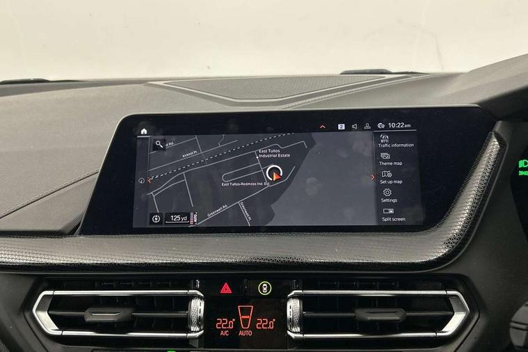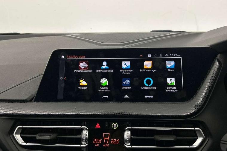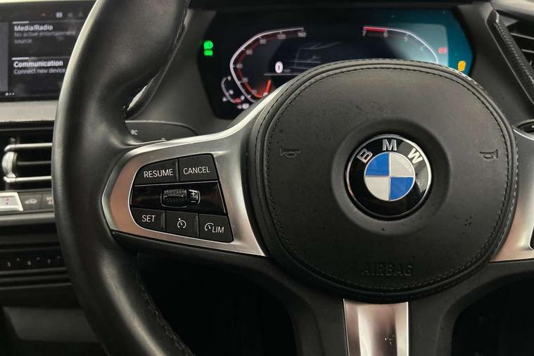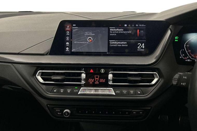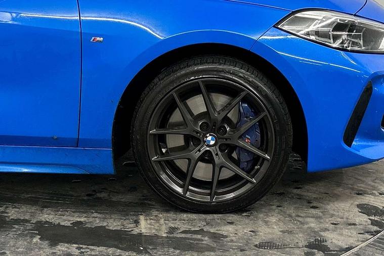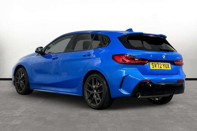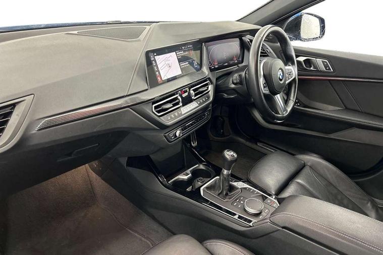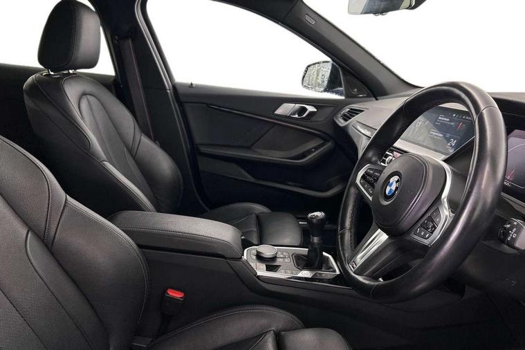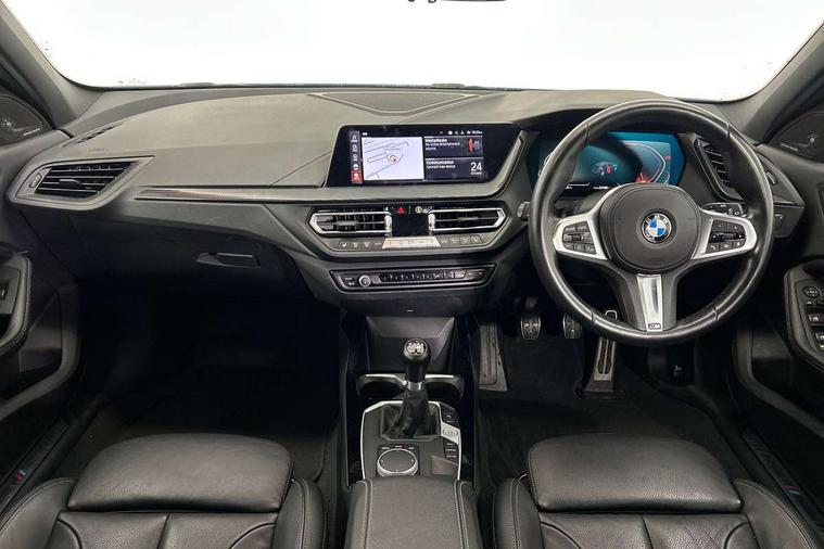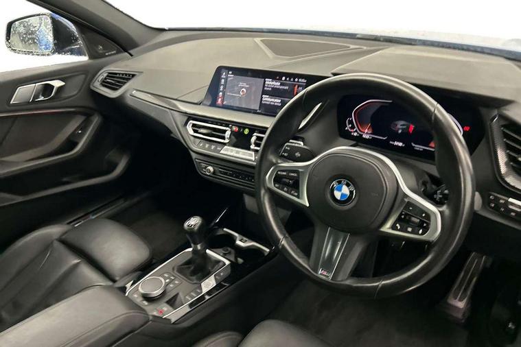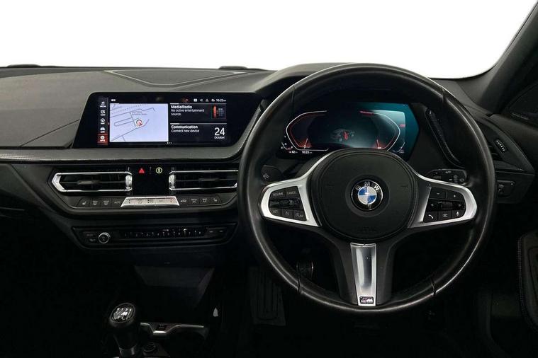 Active guard plus, Attentiveness assist, BMW ConnectedDrive online services, BMW Teleservices, Check Control warning system for monitoring of lights and door/luggage compartment open warning, Cruise control with brake assist, Eco pro mode, Front axle single joint with specific axle kinematics to minimise drive influences on steering + provide increased rigidity agile driving behaviour, Integrated owners handbook, Lane departure warning system, Oil sensor for level and grade, On board computer, Optimum shift indicator, Personal Profile, Pull away assistant, Rigidly mounted rear subframe - Multi link construction with separate spring / damper configuration and excellent driving characteristics, Speed limit Info including no-overtaking indicator, Speed limiter, Aluminium lightweight construction, Anti roll bar front and rear, Balancer shaft, Double VANOS twin scroll turbocharging system, Drive Performance Control, Electronic differential lock, High precision injection, M sport suspension, Petrol Particulate Filter, Twin tube gas filled shock absorbers with degressive characteristic curve, VALVETRONIC engine management, DAB Digital radio, Auto dimming rear view mirror, Automatic headlight beam throw control, Automatic windscreen wipers and automatic headlight, Body colour door handles, Body colour mirror caps, Body colour roof trims, Chrome 'M' logo side designation, Chrome exhaust twin tailpipes round 90mm in left, Chrome kidney grille frame with Satin Aluminium struts, Direction indicator side lights in exterior mirrors, Fading support, Folding side mirrors with auto dimming/folding wing mirrors with auto dimming, Follow me home headlights, Front and rear bumper system with replaceable deformation elements, Front and rear electric windows with open and close fingertip control, anti trap facility and comfort closing, Front door sill finishers in black plastic with M designation in metallic look, Green tinted heat protection glazing, Heated, electrically adjustable exterior mirror aspheric on driver side, convex on passenger side, High gloss shadowline window frame, Recess cover mirror frames and B/C pillar embelisher trim, High level third brake light, Integrated front windscreen with washer jets, LED daytime running lights, LED eyebrow turn indicators, LED front fog lights, LED Headlights, Lightweight engineering, Matt black air guide grilles, Matt black wheel arch trim, Model designation on electric bootlid, Nearside reverse light in rear light cluster, Preparation for high beam assistant, Rear fog lights, Rear side wing doors, Rear window wiper, Shark fin antenna, Trailer stabilisation logic, Visible VIN plate, Welcome lighting, 12V power socket in front centre console with blanking plug, 3 rear seat head restraints, 3 seat bench in 2nd row, 3 spoke sports leather steering wheel in black leather with black stitching and decorative finisher in pearl chrome, specific M badge + leather knob, Anthracite headlining, Black boot net with lashing eyes, Cargo function on 2nd seat row, Child seat ISOFIX attachment for two outer rear seats and front passenger seat with anchorage points, Conditioned based service, Driver and front passenger seat heating, Folding rear clothes hook, Four grab handles integrated in roof lining, Front and rear door pockets with bottle holders, Front and rear side armrest integrated into door trim, Front armrest, Front sports seats, Gearshift lever with M designation, Glove compartment, Height adjustable front head restraints, Luggage compartment for bag hooks on left and right, foldable luggage compartment liner and four lashing eyelets, Manual adjust steering wheel, Multi-function controls for steering wheel, Single front passenger seat, Storage compartment in centre console, Sun visors with vanity mirrors and insert tab, Two front centre console cupholders, Two zone automatic air conditioning, Velour floor mats, Additional interior lighting pack - 1 Series, BMW live cockpit professional pack- 1 Series, Connected pack professional - 1 Series, Interior lights pack - 1 Series, M Sport exterior styling aerodynamics pack - 1 Series, 2 tone horn, 3 point seatbelts on all seats, front pyrotechnic belt tensioners, stopper and belt force limiters, rear coded belt buckles, Airbags - Front driver/passenger, front and rear curtain head protection, front side, manual deactivation of front passenger airbag, Anti lock braking system (ABS) with brake assist, BMW emergency call, Brake drying, Braking readiness, Child proof locking system in rear door, City braking function, Comfort modes, Cornering brake control, Crash sensor activating central locking release, hazard warning lights, fuel cut off, interior lighting + activation of safety battery terminal clamp, Driver and front passenger seat belt security check, Dynamic stability control + (DSC+), Dynamic Traction Control - DTC, Electrically operated hand brake, Front and rear disc brakes, Seatbelt warning, Side impact protection, Tyre pressure monitoring system, Warning triangle and first aid kit, Central locking switch for all doors, fuel filler cap and luggage compartment, Deadlocking function system to all doors, Drive away locking system on all doors and luggage compartment with de-activated in iDrive settings, Locking wheel bolts, Remote control with integrated key with High-gloss Black inlay and M designation and 1 button for open/ close lock, window, open luggage compartment, Start/stop button illuminated in centre console with keyless engine start and auto start stop deactivation button, Thatcham Cat.1 alarm and immobiliser, Wheel slip limitation close to the actuator (ARB), Contrast stitching on instrument panel, Electrically powered 12V compressor, Reduced rolling resistance tyres,