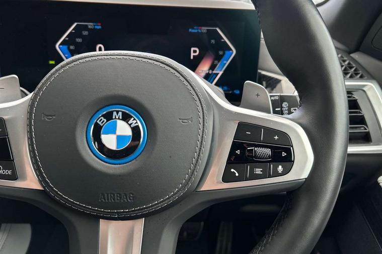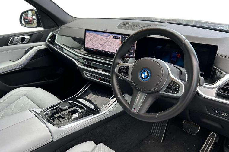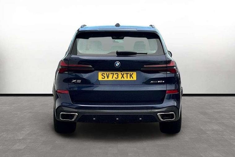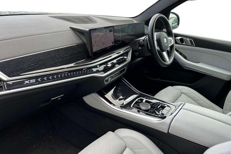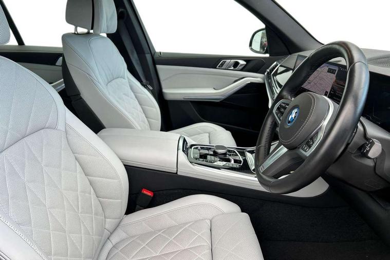 Attentiveness assist, Automatic tailgate operation, BMW ConnectedDrive online services, BMW live cockpit + with curved 12.3 instrument cluster/14.9 central display, nav/Tuner with diversity reception, RDS/4GLTE/remote software upgrade, BMW Teleservices, Condition based service, Cruise control with brake assist, eCall emergency call system, Enhanced bluetooth with wireless charging, Integrated owner's handbook, PAS, Speed limiter, Wi-Fi hotspot, Adaptive 2-axle Front and rear air suspension, Drive performance control with ECO PRO comfort + sport mode, Eight speed steptronic sport automatic transmission and gearshift paddles on the steering wheel, Hi-Fi loudspeaker system, Adaptive LED Headlights, Front and rear electric windows, High beam assistant, High gloss black shadow line roof rails, LED daytime running lights, Rear side wing doors, Third brake light in rear spoiler, Variable intermittent rear wash/wipe, 12V - Power sockets with 2x centre console and 1x luggage compartment, 3 seat bench in 2nd row, Foldable rear centre armrest with 2 cupholders and storage compartment, Front and rear side armrest integrated into door trim, Headrests for all seats, Luggage compartment separating net, Single front passenger seat, Three spoke sport M leather steering wheel, Velour floormats, Ambient light interior pack - X5, Driving assistant pack with radar based driver assistance system - X5, Expanded exterior mirror pack - X5/X5 M, M aerodynamics pack - X5, 3 rear seatbelts, Acoustic protection for pedestrians, Active protection, Airbags - driver/front passenger, rear and side, first and second row seats head airbags, front passenger seat airbag deactivation + knee airbag, Anti-lock braking system (ABS), Automatic Stability Control (ASC), Brake energy regeneration, Cornering brake control (CBC), Crash sensor activating central locking release, hazard warning lights, fuel cut off, interior lighting + activation of safety battery terminal clamp, DSC - Dynamic Stability Control, Dynamic Traction Control - DTC, Electromechanical parking brake with automatic drive away release and auto hold function, Electronic brake force distribution, Hill start assistant, M Sport blue painted brake calipers with 'M' designation, Mechanical child proof lock on rear doors, Tyre pressure monitoring system, Tyre pressure sensors, Ventilated front and rear disc brakes, Warning triangle and first aid kit, Closing system with central locking, Comfort access system, Locking wheel bolts, Sensatec instrument panel,