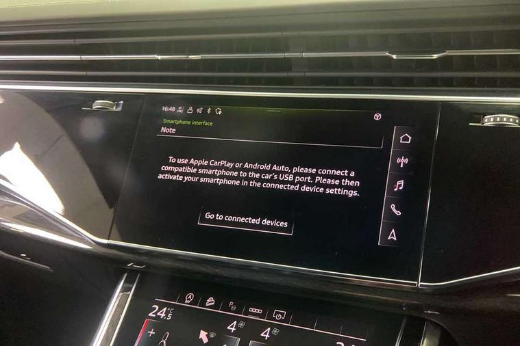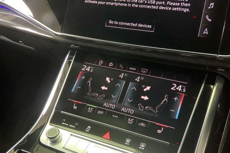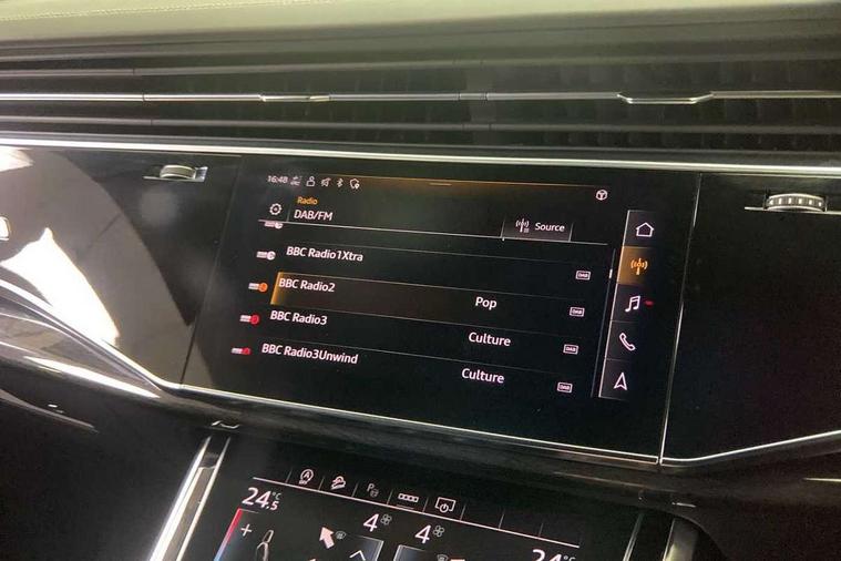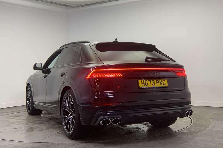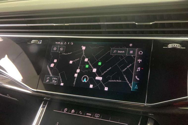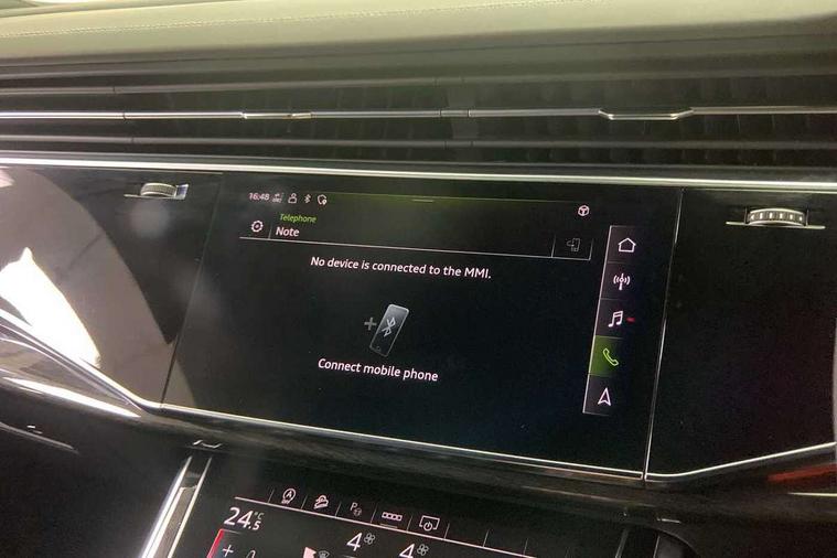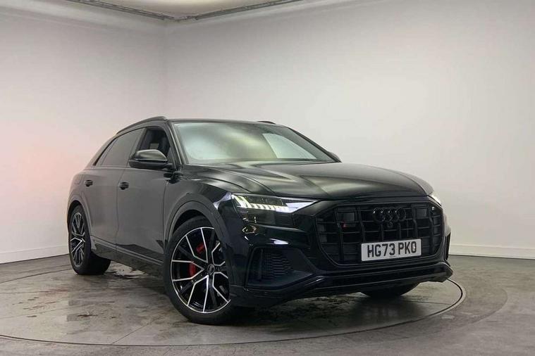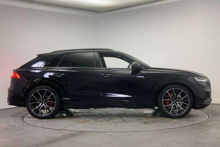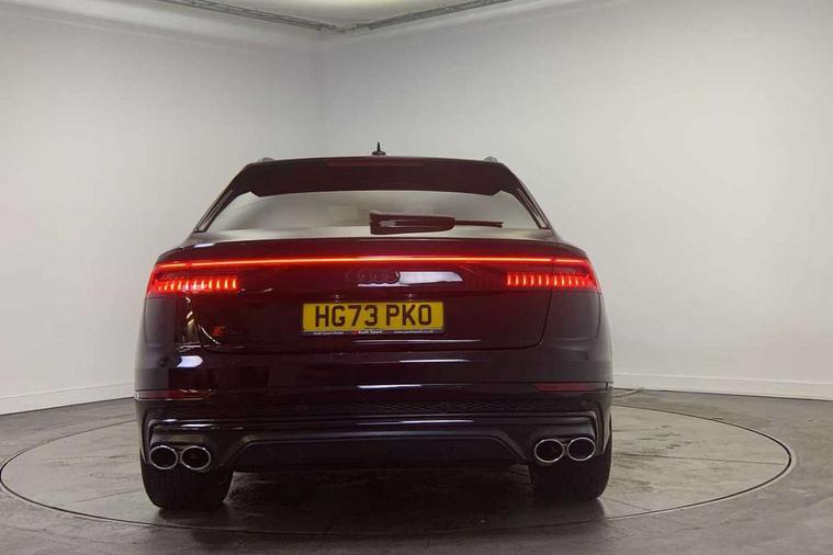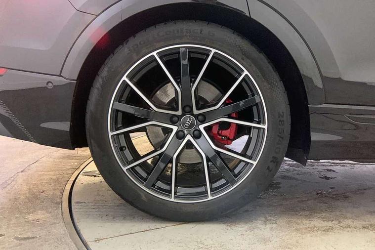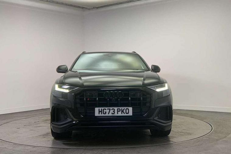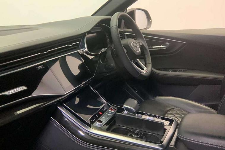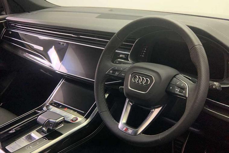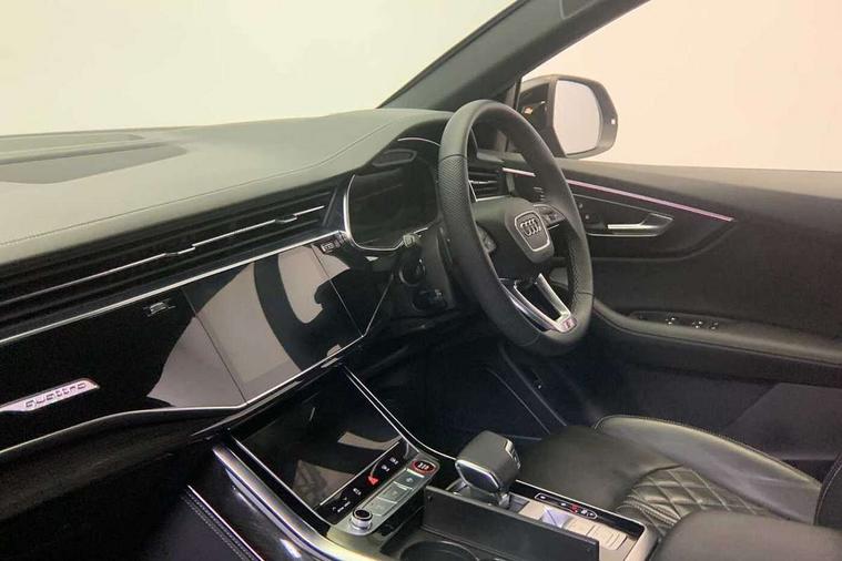 10.1" and 8.6" Dual colour touchscreens, All wheel steering, Audi connect safety and service (e-call), Audi connect with Amazon Alexa Integration, Audi drive select, Audi parking system plus includes 360 degree display with front and rear sensors, Audi virtual cockpit - 12.3" high resolution LCD display with fully customisable instrument cluster, Automatic start/stop system, Electro-mechanical PAS, Low washer fluid indicator, MMI - Multi Media Interface control system, MMI navigation plus with MMI touch, Natural voice recognition, On board computer, Operating buttons in black, glass look with haptic feedback, Power operated tailgate, Rear view camera, Service interval indicator, Smartphone interface includes wireless Apple carplay/Android Auto, 48V Mild hybrid technology, 85 litre fuel tank, Quattro all wheel drive with self locking centre differential, S specific Adaptive air suspension, Audi music interface with 2 USB ports with charge and data functions, Audi sound system with 6 channel amplifier, 180 watt amplifying capacity and 10 loudspeakers including subwoofer, Aux-in socket, DAB Digital radio, 3rd brake light, Acoustic windscreen, Audi Beam uses LEDs to project the Audi logo, Audi HD Matrix LED headlights with dynamic front and rear indicators, Auto dimming frameless rear view mirror, Body coloured bumpers, Coming/leaving home lighting function, Electric front+rear windows, Electrically folding auto dimming/adjustable/heated door mirrors with memory function, LED side indicators and kerb view function for passenger side, Gloss black finish for exterior Audi rings and SQ8 logo, Headlight washers, Heat insulating glass in windshield, LED signature daytime running lights, Platinum grey front spoiler lip and diffuser insert, Privacy glass - dark tinted rear and rear side windows from B-pillar backwards, Rain and light sensors, Rear side wing doors, Rear wiper, S specific dual brach chrome tailpipes on both the left and right, S specific front and rear bumpers, S specific side skirts in matt selenite silver, Side air inlet grilles in matt anthracite black, Trim and underbody protection in matt selenite silver, 3 bench rear seats in 2nd row, 4 zone deluxe automatic climate control, 4-way lumbar support for front seats, 40:20:40 split folding rear bench seat, Black cloth headlining, Comfort front centre armrest, Driver seat memory function, Electrically adjustable front seats, Front head restraints, Front/rear floor mats, Heated front seats, Illuminated door sill trims, ISOFIX child seat mounting for front passenger seat and 2 outer rear seats with top tether child seat mounting for all 3 rear seats, LED interior ambient lighting, Luggage compartment sill protection in stainless steel, Rear centre armrest with 2 cupholders, Rear headrests, Single front passenger seat, Stainless steel pedals, Sunvisors with illuminated vanity mirrors, Upper and lower interior elements in leather, leather door armrests, Valcona leather upholstery + super sports seats with S embossed logo, Anthracite black Styling Pack - Q8, 3 point seatbelts on all seats, Audi pre sense front, Child locks on rear doors, Driver and front passenger, front side and curtain airbags, Electromechanical parking brake, Electronic Stability Control (ESC) including ABS, ASR and EDL, Front passenger airbag deactivation, Hill descent control, Hill hold assist, Predictive pedestrian protection, Seatbelt monitoring, Traction control, Tyre pressure loss indicator, Warning triangle and first aid kit, Anti theft alarm with tow away protection, Anti-theft wheel bolts and wheel loosening detection, Immobiliser, Keyless go with remote central locking, Polished oak trim with grey finish inlay, Tool kit, Tyre repair kit,