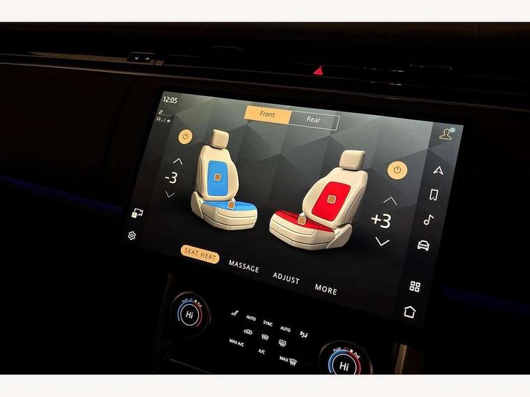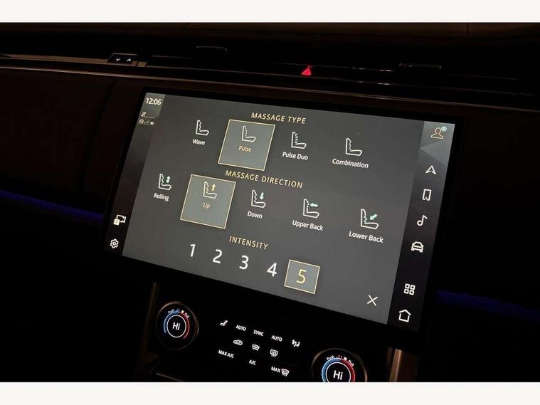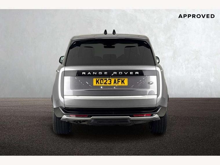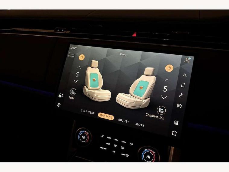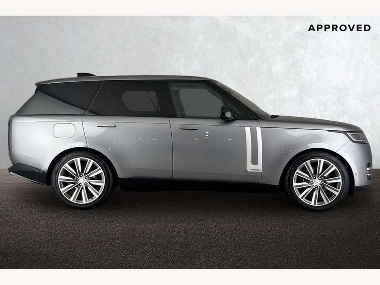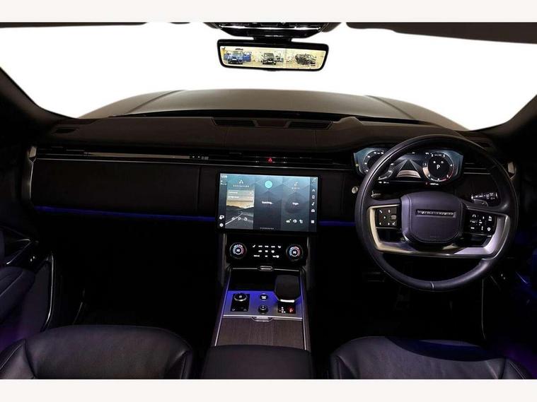 13.1" Touchscreen, 3D surround camera inc frwd traffic detection, vehicle clearance guidance, 3D view, clearsight ground view, manoevure light, 360 parking aid, wade sensing, All Terrain Info Centre, All wheel steering, Android Auto, Apple car play, Blind spot assist, Bluetooth connectivity streaming, Configurable programs, Driver condition response, Eco mode, Electric power assisted steering (EPAS), Emergency call service, Front and rear parking aid, Head up Display, Interactive driver display, Lane keep assist, Rear collision monitor, Rear traffic monitor, Remote, Traffic sign recognition with adaptive speed limiter, Wi-Fi Enabled with data plan, Wireless device charging with phone signal booster, 8 speed automatic transmission, Active damper technology system, Adaptive dynamics, All terrain progress control, All Wheel Drive (AWD), Automatic access height, Terrain Response 2 Auto, Twin speed transfer box, Digital Audio Broadcast radio-DAB, Pivi pro including smart settings, Connected navigation pro, nuance speech, USB socket, Acoustic laminated windscreen, Animated directional indicators, Automatic headlights, Automatic levelling headlights, Centre high mounted stop light, ClearSight interior rear view mirror, Electric windows with one touch open/close and anti trap, Engine cover, Flush deployable exterior door handles, Front and rear recovery eyes, Front fog lights, Headlamp power wash, Heated rear window, Heated washer jets, Illuminated metal treadplates with Autobiography script, Laminated front and rear side glass, LED tail lights, Power fold, auto-dimming, heated door mirrors with approach lights, Rain sensing windscreen wipers, Rear boot, Rear fog lights, Rear side wing doors, Side repeater indicators in mirror, Solar attenuating windscreen, Trailer stability assist, Winter wiper park position, 12V power sockets, 3 seat bench in 2nd row, Air quality sensor, Auto folding loadspace cover, Bright metal pedals, Cabin air purification pro, Cabin lighting, Customer configurable single point entry, Driver and passenger front seat armrests, Easy boot loading, Ebony Carpet, Electric rear side window sunblinds, Four zone climate control, Front and rear cupholders, Front and rear grab handles, Front head restraints, Gearshift paddles, Heated steering wheel, Hook in load space, Loadspace light, Luggage tie down in loadspace, Multifunction steering wheel, Rear centre armrest, Rear head restraints, Rear ISOFIX, Single front passenger seat, Soft close doors, SV bespoke carpet mats, Twin blade sunvisors with Illuminated vanity mirrors, Upper and lower glovebox, Versatile loadspace floor in tailgate, Online pack with data plan - Range Rover, 3x3 point rear seat belts, Anti-lock braking system (ABS), Black brake calipers, Brake hold function, Cornering brake control (CBC), Customer configurable autolock, DSC - Dynamic Stability Control, Electronic brake force distribution, Electronic parking brake, Electronic traction control, Emergency brake assist, Emergency braking, Front airbags with passenger seat occupant detector, Front side airbags, Hill descent control, Hill launch assist, Illuminated seat belt buckles, Low traction launch, Occupant protection assist, Power operated child locks, Roll stability control, Tyre pressure monitoring system (TPMS), Immobiliser, Intrusion sensor and alarm, Keyless entry, Locking wheel nuts, Remote central locking, Noble chrome controls,