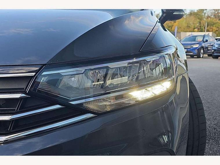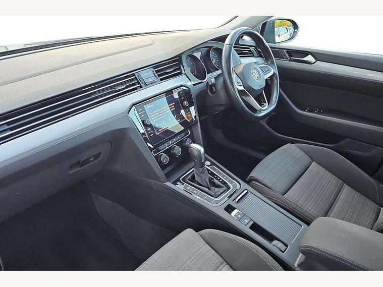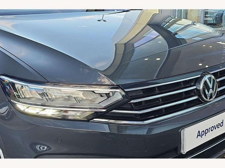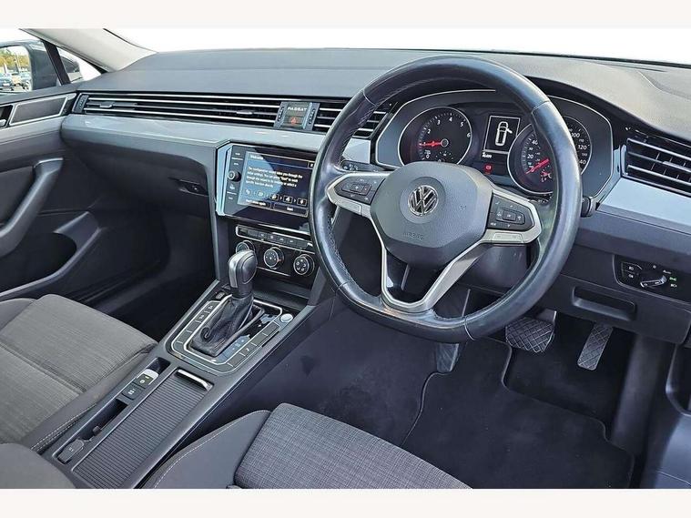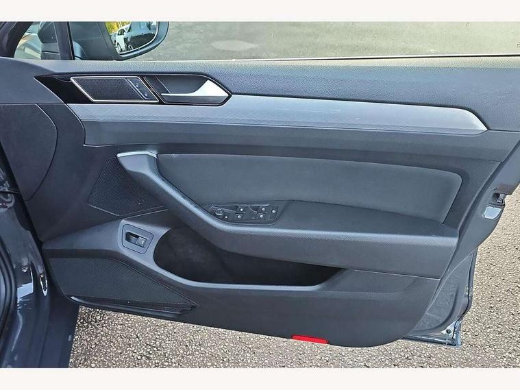 Adaptive cruise control including Front Assist, radar sensor controlled distance monitoring system, City emergency braking system, Driver alert system, Driver profile selection, Exterior temperature gauge with frost alarm, Lane assist, Low washer fluid warning light, Multifunction computer includes visual gear, One touch indicator turn signal, Proactive occupant protection, Security and service including e-call, Speed sensitive power steering, Speedo and rev counter, electronic odometer, trip, service interval display and fuel gauge, Start/Stop function, Traffic jam assist, Warning buzzer and light for front seatbelts unfastened, Wireless app connect, Battery regeneration during braking, Misfuel prevention device, Petrol Particulate Filter, Aerial for radio integrated into rear windscreen, Auto dimming interior rear view mirror, Automatic headlights with dusk sensor, Automatic leaving home and manual coming home lighting functions, Black radiator grille with chrome louvres, Black roof rails, Body colour bumpers, Body colour door handles, Body coloured door mirrors with integrated indicators, Chrome side window surrounds, Electrically adjustable and heated door mirrors, Front and rear electric windows, Fully galvanised body, Gloss black finish on B pillar, Heated rear window, High level 3rd brake light, LED rear lights, LED rear number plate lights, Plastic load sill protection, Rain sensor, Rear window wash/wipe, Warning lights for open tailgate and doors, White instrument lighting, 12V socket in front centre console, 12V socket in luggage compartment, 40:20:40 split folding rear seats with backrest, Driver's door storage compartment for 1.0 litre bottle, Extending luggage compartment cover with convenience opening, stowable, Front + rear carpet mats, Front and rear interior lighting with delay and dimming function, Front centre armrest with storage compartment and two rear air vents, Front cupholders x2 with covers, Front passenger storage compartment for 1.5 litre bottle, Height adjustable and removable variable boot floor, Height adjustable rear seat head restraints (x3), Height/reach adjust steering wheel, Illuminated vanity mirrors, Isofix child seat preparation, outer rear seats, Load lashing points x 4 in luggage compartment, Load through provision, Lockable, illuminated, cooled glovebox, Luggage compartment lighting, Rear seat centre armrest with storage compartment, Storage compartment in rear doors, Storage compartment in roof console with cover, Discover navigation pack - Passat, 3x3 point rear seatbelts, ABS (Anti locking brake system) includes BAS (Brake assist) and EBD (Electronic brake pressure distribution), Automatic post collision braking, Disc brakes front and rear, Door open warning reflectors, Driver/Front Passenger airbags, Drivers and front passengers safety optimised head restraints, longitudinal and height adjustable, Drivers knee airbag, Electronic parking brake with auto hold, First aid kit, Front airbags with deactivation switch, Front and rear passenger curtain airbags, Front side impact airbag, Height adjustable front 3 point seatbelts + pretensioners, Hill hold function, Pre crash preventive occupant protection, Rear seat side impact airbags, Rigid safety cell with front and rear crumple zones, Volkswagen roadside assistance, Warning light for rear seat belts if unfastened, Alarm with interior protection and deactivation via infotainment system, Electronic engine immobiliser, Chrome air vent and instrument surround, Cross hatch decorative inserts in dash and door panels,