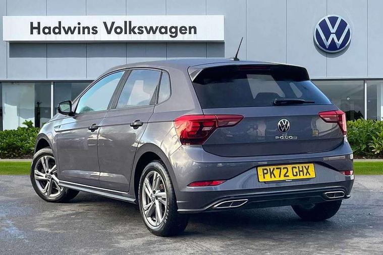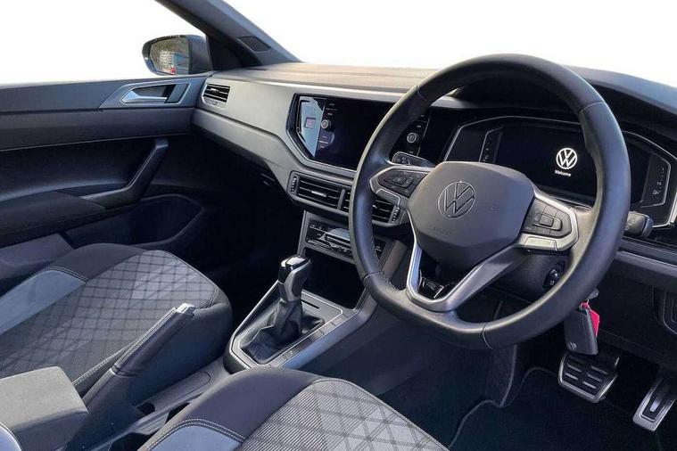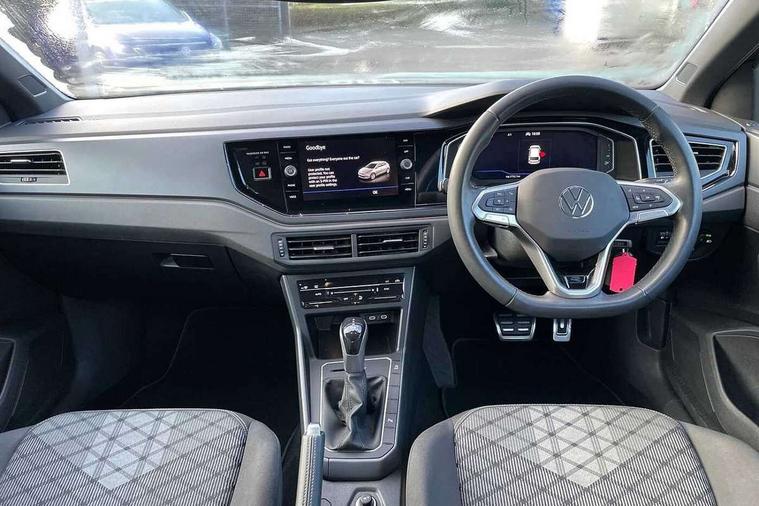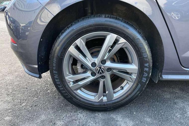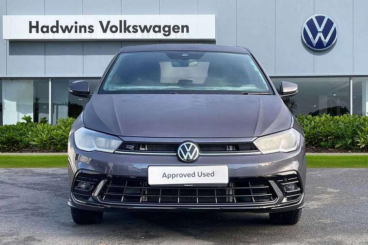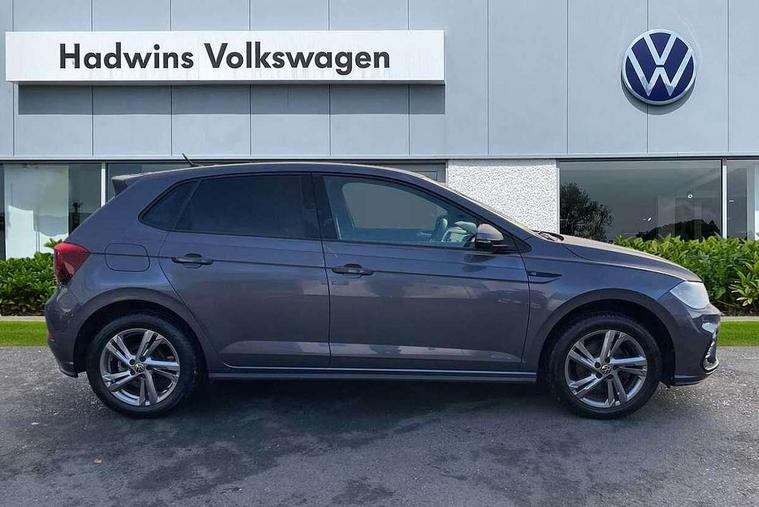 Adaptive cruise control with follow-to-stop and speed limiter, Bluetooth mobile phone interface, Digital Cockpit Pro with 10.25" Display, Driver alert system, Dynamic road sign display, Emergency call service, Power assisted speed sensitive steering, Preparation for We connect and We connect plus, Speedo and rev counter, electronic odometer, trip, service interval display and fuel gauge, Standard rear axle, Travel Assist - Lane keeping system and traffic jam assist, Travel assist including emergency assist, Trip computer, Warning signal and warning light for front and rear seatbelts not fastened, Washer fluid level indicator, Wireless app connect, Front wheel drive, Rear shock absorpion, Start-stop system with battery regeneration (recuperation - energy recovery during braking), DAB Digital radio, Diversity antenna for FM reception, Front and rear 6 speakers, Body colour bumpers, Body colour door handles, Body colour door mirrors, Electric front windows, Front scuff plates with R-Line logo, Heat insulating darkened glass in side and rear windows, Heat insulating glass windscreen, Power folding adjustable/heated exterior mirrors and front passenger exterior mirror lowering function, Rear electric windows, Rear fog light, Rear side wing doors, Rear tinted glass from B-pillar backwards approx 65% tinted, Rear windscreen washer and wiper with interval delay, Third brake light, 12V power socket in centre console, 2 USB-C ports in the front, 2 USB-C charging sockets on the center console in the rear, 3 rear head restraints, 60/40 split folding rear seat and rear seat bench not split, Air care climatronic air conditoning system with active combination filter and 2-zone temperature control, Black roof lining, Ceramique headliner, Chrome plated radiator grille inserts, air vent surrounds and light switch surrounds, Door and side trim panel, Driver and front passenger seat height adjustment, Driver/passenger sunvisors with illuminated vanity mirrors, Front + rear carpet mats, Front centre armrest, Front footwell illumination, Front seat backrest storage pockets, Front sports comfort seats, Handbrake lever handle in leather, Isofix child seat preparation easy-fit (for two outer rear seats, and front passenger seat) compatible with I-size, Karoso artvelours cloth upholstery, Leather trimmed gear knob, LED interior light with switch off delay and dimmer, 2 reading lights front and rear, Luggage compartment cover, Luggage compartment floor, Luggage compartment lighting, Lumbar adjustment for front seats, Single front passenger seat, Stainless steel pedals, Standard pedal cluster, Three spoke leather wrapped multifunction steering wheel with shifting paddles, Light and sight pack - Polo R-Line/Black Edition, 3 point height adj front seatbelts + pretensioners, 3x3 point rear seatbelts, ABS, Driver and front passenger airbag with front passenger airbag deactivation, Drivers and front passengers safety optimised head restraints, ESC (Electronic stability control) + EDL (Electronic Differntial lock) and ASR (Traction control), Extended and predictive pedestrian/ cyclist protection, Front curtain and side airbags with center airbag, Front/rear disc brakes, Hill hold control, Manual child lock in rear doors, Single tone horn, Tyre pressure loss indicator, Alarm with interior protection, Anti-theft alarm system with interior monitoring, backup horn, and towing protection, Anti-theft wheel bolts, Electronic engine immobiliser, Chrome applications on rotary light, mirror adjustment, window regulator switches, outlet with frame in black, Dark grey anodised matt decorative inserts in dash and front door panels, Low rolling resistance tyres,