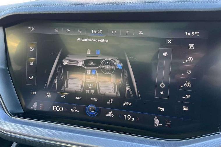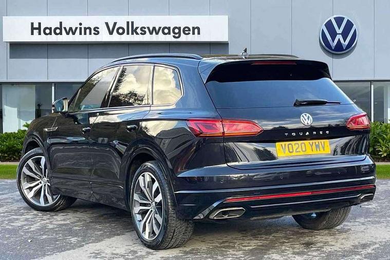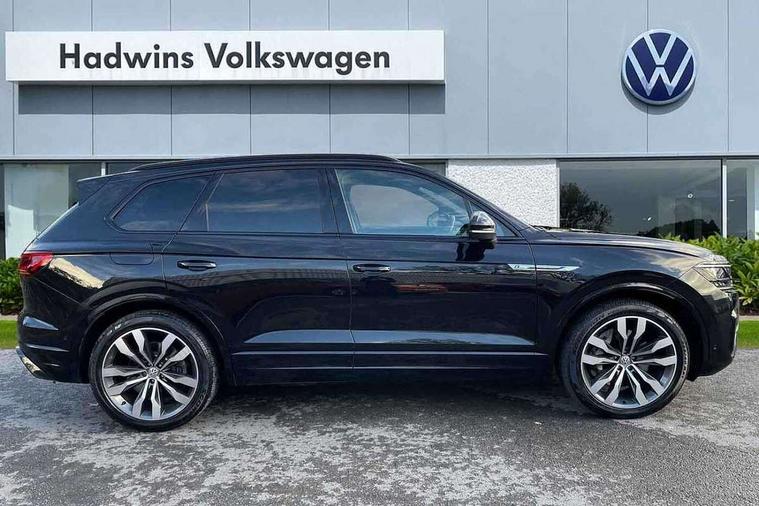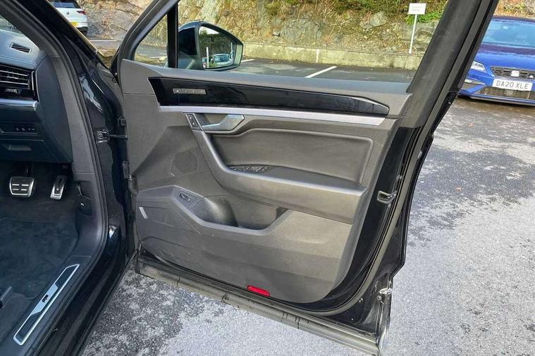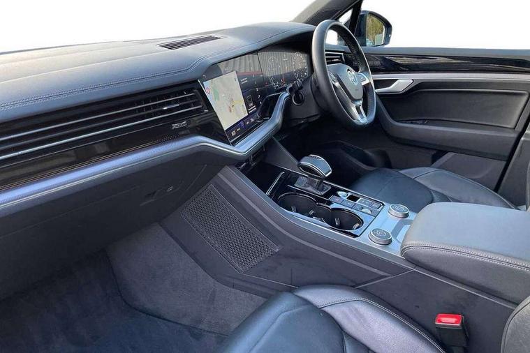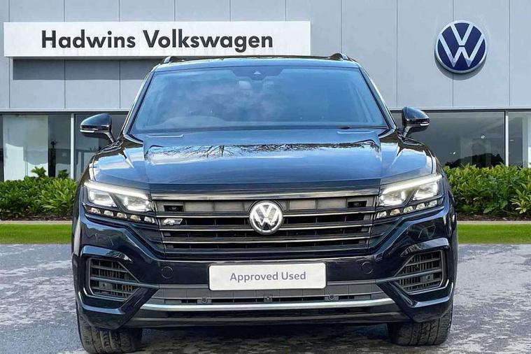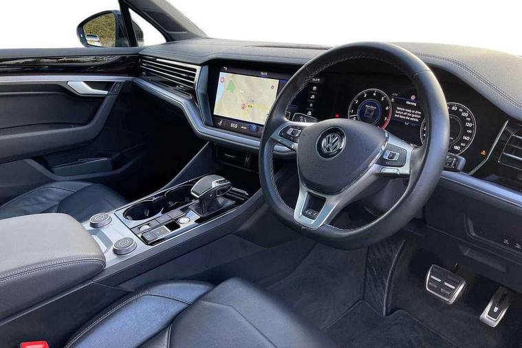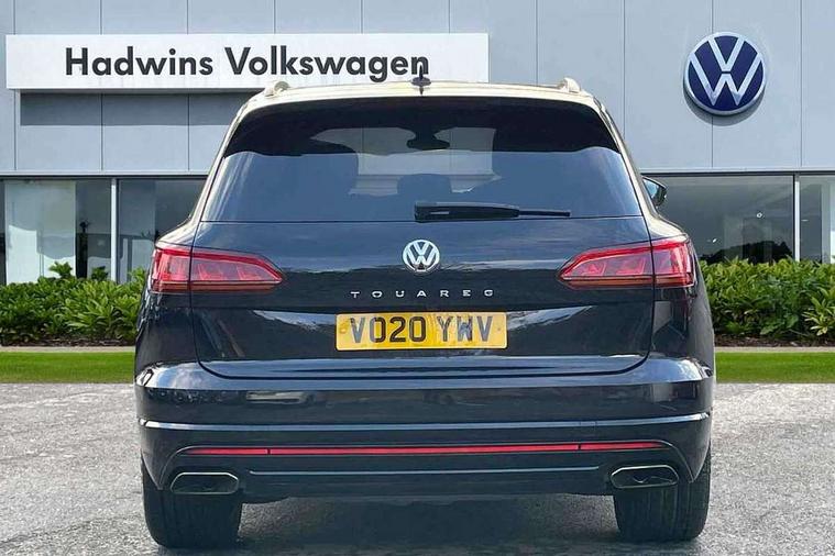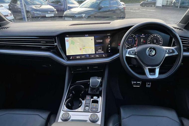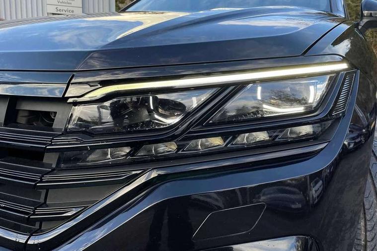 2D/3D map view, ACC - Adaptive cruise control with front assist, forward collision warning, distance monitoring, city emergency brake and speed limiter, Apple car play/Android Auto, Audible and visual fatigue detection system, Bluetooth hands free telephone connection, Car information display, Drive select with Damper control, Driver alert system, Dusk sensor, Dynamic road sign display camera controlled system with visual warning for traffic and road signs, eCall emergency system, Fully electric tailgate + keyless entry and start, Instrument cluster, MirrorLink, Multifunction camera with lane assist, Multifunction computer premium with 7" colour display, One touch indicators with repeat function, Park assist with area view camera, Service interval indicator, Speed sensitive power steering, Start/stop system with regenerative braking, Tailgate power latch, Think blue trainer driver tips and journey analysis, Traffic sign recognition, Voice control system, Wireless Smartphone charger, Torsen limited slip differential, DAB Digital radio, Dynamic navigation based on TMC+, Gesture control for infotainment system, Multi device interface (MDI) with USB connection, Music playback - MP3, WMA and AAC files, SD card slot, Simultaneous pairing of 2 compatible mobile devices, SMS functionality - read, compose and send SMS messages using touch-screen display, Title and cover art display, Volkswagen media control, Adaptive low beam for urban and motorway use, Auto dimming rear view mirror, Automatic coming/leaving home lighting function, Automatic headlights, Black anodised roof rails, Black door mirrors, Black rear diffuser, Black side window surrounds, Black upper and lower grille louvres extending into headlights and radiator grille, Body colour door handles, Body coloured wheel arches, C signature gloss black front air intake, Chromed tailpipe on the left and right integrated in the bumper with trapezoid design, Dynamic headlight range control, Electric front tilt/slide panoramic sunroof and fixed rear sunroof, Electrically power adjustable, heated, folding, auto dimming, front passenger exterior door mirror lowering function, Front and rear electric windows, Galvanised body, Gloss black finish B pillar, Gloss black rear diffuser, Headlight washers, Heat insulating glass in side and rear windows, Heated windscreen washer jets, IQ.Light-LED matrix headlight, daytime running light with dynamic cornering light and indicator, LED rear fog light, LED rear number plate lights, Plastic scuff plates in door apertures, Poor weather light, Puddle lights, Rain sensor, Rear wiper, 12V socket in front and rear centre console and boot, 2 Coat hooks on B pillar, 3 rear head restraints, 3 spoke heated leather multi-function steering wheel including paddle shift, 4 way adjustable front head restraints, 4 way electric lumbar support for driver and front passenger, 4 zone climate control, 40:20:40 split folding slide/recline rear seat, B pillar vents, Black lower edge of door extending sills, Branded points of interest, Double sun visor for drivier and passenger with LED illuminated vanity mirrors, Driver/front passenger seat height adjustment, Electric luggage compartment cover, Folding rear centre armrest with 2 cupholders, Front + rear carpet mats, Front centre armrest with storage box, Front headrests, Gear shift indicator, Height/reach adjust steering wheel, Illuminated air conditioned glovebox, Isofix preparation for 2 rear child seats, Jack and tool kit, Leather trimmed gear knob with gloss black inlay/aluminum trim, Leatherette door trim, LED luggage compartment lighting, Load through provision, Luggage compartment with load lashing rings, Plastic loading edge protection, Rear seat remote release levers, Soul black headlining, Stainless steel pedals, Innovision cockpit pack - Touareg, R line styling pack - Touareg, 3 point front seatbelts with pre-tensioners, ABS, Active bonnet, Automatic post collision braking system, Curtain airbags, Driver/Front Passenger airbags, EBD + Brake Assist, EDL, Electronic parking brake with auto hold, ESC with ASR, Front seat side impact airbags, Hill descent control, Hill start assist, Passenger airbag deactivate switch, Seatbelt warning lamp and buzzer, Three 3 point rear seatbelts, Two tone horn, Volkswagen roadside assistance, Warning triangle and first aid kit, Alarm with interior monitoring in cab, backup horn and towing protection, Child security locks for front and rear doors, Electronic engine immobiliser, Remote central locking, Black decorative trims on the side windows, High gloss black centre console, Temporary space saver steel spare wheel,