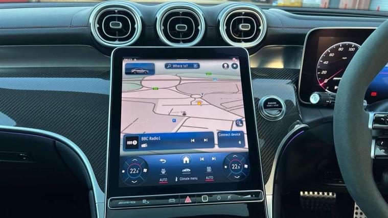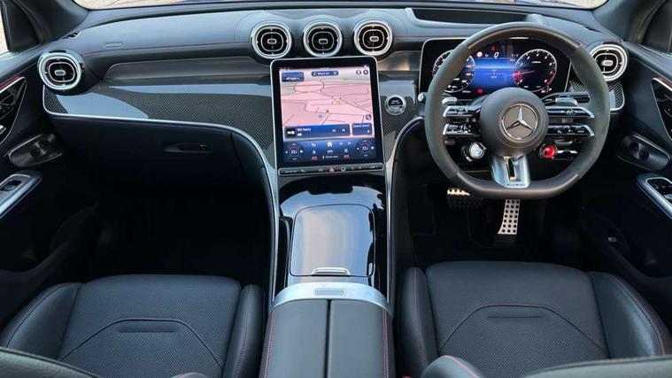 11.9" high resolution multimedia colour display, 12.3" Digital individually configurable instrument display, 360 degree camera, Active parking assist with parktronic system, AMG DYNAMIC SELECT with a choice of driving modes (Slippery, Comfort, Sport, Sport+, Individual), Attention assist, Bluetooth interface for hands free telephone, Dashcam - front camera for video recording, Easy pack automatic powered tailgate, eCall emergency call system, Head up Display, MBUX augmented reality for navigation, MBUX navigation premium, MBUX voice control activated by keywords "Hey Mercedes", Mercedes connect me with remote online services, Outside temperature display, Pre-installation for digital key transfer, Rear axle steering, Remote boot release, Service indicator (ASSYST), Smartphone integration, Sports direct steer system with speed sensitive steering, Status display for rear seat belts in instrument cluster, Traffic sign assist, Trip computer, Wireless charging surface integrated into quick stowage tray in front of centre console, 4MATIC permanent four wheel drive, 63 litre fuel tank, 9G TRONIC plus automatic transmission, Agility control comfort suspension, Petrol Particulate Filter (PPF), Burmester 3D surround sound system, DAB digital radio tuner, MBUX extended functions, Adaptive brake lights, AMG bodystyling front apron, rear apron and side skirts, AMG exhaust system with sporty engine sound, AMG radiator grille with vertical struts in high gloss chrome and AMG logo, AMG spoiler lip, Auto dimming rear view mirror, Auto headlights, Body colour door mirrors, Chrome roof rails, Digital light LED headlights with projection function, Electric panoramic glass sunroof, Electric windows with one touch opening/closing and obstruction sensors, Electrically adjustable and heated door mirrors, Headlight washers, Heat and noise insulating acoustic glass, Heated rear window, High level LED brake light, Illuminated front door sill panels, Integrated LED daytime running lights, LED indicator lights, LED rear fog lights, LED tail lamp, Mercedes AMG exterior, Rain sensor windscreen wipers, Range adjustable headlights, Rear side wing doors, Rear wiper, Tinted glass all round green, Variable front intermittent wipers, Welcome and follow-me home light functionality, 3 seat bench in 2nd row, 3 Spoke multi function AMG steering wheel in black nappa leather, 40:20:40 split folding rear seats, Ambient lighting, AMG sports seats, AMG steering wheel buttons, Artico leather dashboard with contrast stitching, Audio and onboard settings control on multifunction steering wheel, Automatic child seat recognition sensor, Black floor mats with AMG lettering, Double cup holder in centre console, Electrically height/reach adjustable steering column, Front centre armrest with stowage compartment, Front head restraints, Gearshift paddles on steering wheel, Heated front seats, Illuminated door sill panels with AMG lettering and with exchangable cover, Illuminated glove compartment, Load compartment cover, Mercedes AMG interior, Rear head restraints, Rear top tether child seat ISOFIX attachment, Single front passenger seat, Sports pedals with stainless steel surfaces and rubber studs, Sun visors with illuminated vanity mirrors, THERMOTRONIC 4 zone automatic climate control, Interior lighting pack - GLC AMG, Memory pack - GLC, Mirror pack - GLC AMG, Seat comfort package - GLC AMG, Stowage pack - GLC AMG, USB Plus Pack - GLC, 3 rear 3 point seatbelts, Active bonnet, Adaptive brake system with HOLD function and brake drying in the wet, Anti-lock braking system (ABS), Child proof door locks, Dual-stage airbags - driver and front passenger, sidebags in front seats, driver kneebag, pelvis bag and window bags for driver, Electronic key chrome surround, Electronic parking brake, Electronic Stability Programme (ESP), Front and rear seatbelt reminder, Front passenger seat occupancy sensor, Front seatbelt pretensioners, Hill start assist, Silver brake calipers, Tyre pressure monitoring system, Warning triangle and first aid kit, Central locking with interior switch, automatic locking and crash sensor with emergency opening function, Guard 360 degree vehicle protection, Immobiliser, Keyless Go comfort access, Centre console in high gloss black, High gloss black with carbon fibre trim, 21" AMG Y spoke light alloy wheels painted in tantalum grey with high sheen rim finish, TIREFIT with tyre inflation compressor,