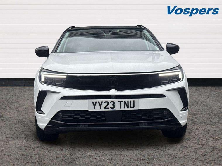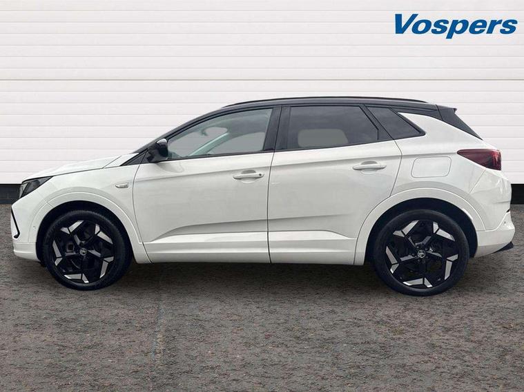 12" colour digital cluster, Central facia display with digital clock, outside air temperature and audio information, Digital fuel gauge with low fuel level warning light, Digital rev counter, Digital speedometer, Digital water temperature gauge with warning light, Drive mode selector, Driver drowsiness alert system, Driver information - Total mileage, service indicator, oil life, EV information display with powerflow, charge, e-save and statistics, Front and rear parking distance sensors with 360 degree rear view camera and advanced park assist, Gearshift up/down indication light, Highway integration assist (Lane positioning assistant and Adaptive cruise control), Lane departure warning system, Lane keep assist, Lights on audible warning, Multi function trip computer - Trip odometer, vehicle range, average speed and fuel economy, instantaneous fuel economy and driving time, Multimedia navi pro with 10" colour touch+ sat nav+AM/FM/DAB radio, bluetooth audio streaming/mobile phone portal, Apple carplay/Android auto, USB, Power operated tailgate with foot sensor, Side blind spot alert, Speed sensitive electric power assisted steering, Speed sign recognition, Vauxhall connect including Emergency call (SOS e-call) and Breakdown call (b-call), Wireless charger for mobile devices, Enhanced handling and powertrain tuning, Type 2 mode 3 charging cable, Six speaker - four front + two rear, Steering wheel mounted audio/phone/cruise controls, Automatic lighting control, Black door mirrors, Black side window trim, Body colour door handles, Body colour lower front and rear bumpers, protective wheel arches and lower door cladding, Body colour upper front bumper, Collapsible windscreen wipers, Door to door illumination, Electric adjustable/heated/folding door mirrors, Electrically operated front and rear windows with safety auto reverse and one touch up/down facility, Frameless auto dimming anti dazzle rear view mirror with LED spotlight, Front wiper system spraying directly from wipers, Gloss black protective front skid plate and rear skid plate with 3 fin diffuser, GSe badge on tailgate, Hazard warning lights, Heated rear screen with timed cut off, High beam assist, High gloss black exterior detailing, High gloss black Griffin for Vizor and tailgate with high gloss black Grandland tailgate lettering, High gloss black roof rails, High level centre rear brake light, IntelliLux adaptive LED pixel headlights and LED tail lights, Intermittent rear window wash/wipe, LED daytime running lights, LED front fog lights, Magic wash, Manual headlight beam levelling, Partial heated windscreen, Rain sensor windscreen wipers, Rear side wing doors, Rear spoiler, Reversing light, Shark fin aerial, Soundproof insulated windscreen, Two speed windscreen wipers with variable intermittent wipe, Unique sports style front bumper and rear valence, Upper and lower bumper design, Vizor front grille, Welcome lighting, 12v plug in front console and 12v plug in boot, 3 bench rear seats in 2nd row, 3 spoke flat bottom leather steering wheel with satin chrome effect bezel, 4 way electric driver lumbar support, 4 way passenger electric lumbar support, 60/40 split folding rear seat with centre rear seat armrest and load though facility, Advanced predictive logic control system using a sun sensor, Alcantara upholstery, Alloy sports pedals, Ambient centre console downlighter, Automatic air direction and fan speed with manual override, Charcoal filter, Chrome effect interior door handles, Covered storage compartment in centre console and in driver armrest, Driver's centre armrest, Drivers and front passengers seat with height, reach, tilt, backrest adjustment and seat cushion extension, Dual zone electronic climate control, Electrical thermal preconditioner, Ergonomic active driver and front passenger GSe sports style seats, Front door pockets with 2.6 litre capacity, Front seat back storage pockets, Fully carpeted luggage area, Height adjustable headrests, Illuminated driver/passenger sunvisors with vanity mirror, Illuminated luggage area, ISOFIX on front passenger and rear outer seats, Luggage compartment cover, Reach + rake adjustable steering column, Rear centre seat head restraint, Rear door pockets with 1.8 litre capacity, Rear passenger compartment heating ducts, Rear reading lights, Two drinks holders in centre console, Winter pack - Grandland, Anti-lock braking system (ABS), Automatic emergency braking with pedestrian detection, Child proof locks on rear doors, CSC - Cornering stability control, Deactivation switch for front passenger front and side impact airbags, Deflation detection system, Driver airbag, Dual seatbelt pretensioners on front seats, EBD - Electronic brakeforce distribution, Electronic parking brake, Electronic stability program (ESP) including traction control, Forward collision alert, Front passenger airbag, Front seat side impact airbags, Full-size curtain airbags for driver and front passenger, Hill start assist, Hydraulic Brake Assist (HBA), Inertia reel lap and diagonal seatbelts for all seats, Load limiters on outer rear seatbelt retractors, Pretensioners on outer rear seatbelt retractors, Smart seatbelt reminder for front and rear seats, Tyre pressure monitoring system, Central locking, Deadlocking system, Electronically protected audio equipment, Engine deadlock immobiliser, Keyless entry and start, Locking wheel nuts, Remote security alarm system, Black door panels with black premium leather effect inserts, Dax decor facia panel with palladium medium finish, 19" diamond cut gloss black bi-colour alloy wheel, Tyre inflation kit,