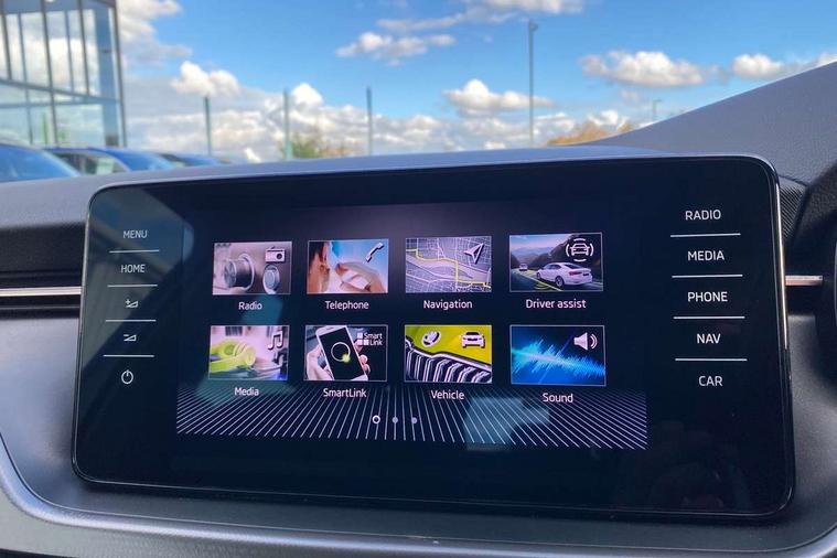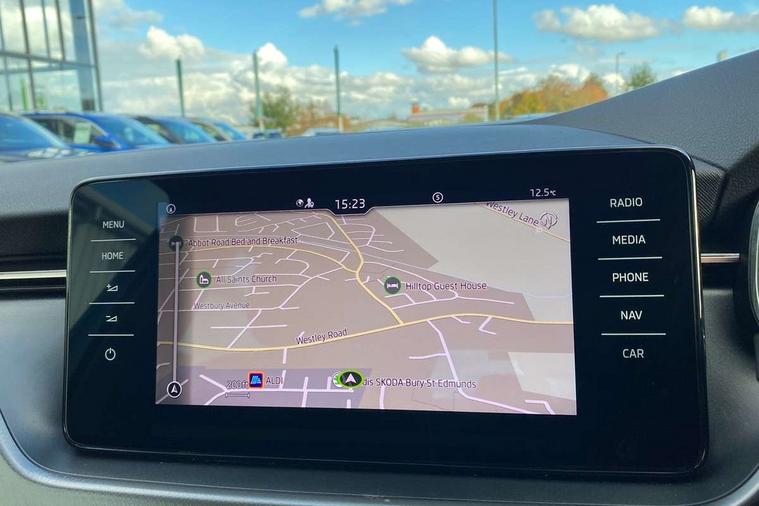 Amundsen satellite navigation with 9.2" glass colour touchscreen with virtual cockpit, web radio, Android Auto, Bluetooth system, Colour multifunction trip computer, eCall emergency system, PAS, Rain and light assist with auto dimming rear view mirror, Rear view camera, Speed limiter, Tailgate, Traffic sign recognition, Virtual cockpit, Voice control system, Wireless SmartLink for Apple Car Play, 2 USB - C ports, 8 loudspeakers, DAB Digital radio, 3rd brake light, Automatic headlamp activation with Coming home and Leaving home feature, Body colour door mirrors and handles, Chrome grille surround, Dimming rear view mirror with black frame, Electric folding door mirrors, Electrically adjustable and heated door mirrors, Front and rear electric windows, Front fog lights with cornering function, LED rear tail lights with dynamic indicators, Privacy glass, Rear side wing doors, Rear wiper, Tinted windows, 12V Accessory socket in centre console, 3 seat bench in 2nd row, Chrome inner door handles, Chrome on gear and handbrake lever, Chrome strip on the dash and door panel, Dual zone climate control, Front head restraints, Glasses storage in roof liner, Instrument cluster with chrome painted decor ring, ISOFIX for rear passenger seat, Leather gearknob and handbrake lever, Manual lumbar support for front seats, Net in centre console, Reading lights for driver and front passenger, Single front passenger seat, Sun visor with make up mirror for front passenger, Textile floor mats, Third rear headrest, Umbrella, 3x3 point rear seatbelts, Curtain airbags, Emergency call and proactive services, Front head and side airbags, Hill hold control, Manual rear child locks, One tone horn, Passenger airbag switch off function, Seat belt reminder for all seats, Alarm, Anti-theft wheel bolts, Keyless entry with start/stop button, Remote central locking with 2 remote folding keys, SAFE function for remote central locking, Latice grey decorative insert with copper hot stamping, Temporary space saver wheel,