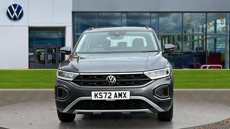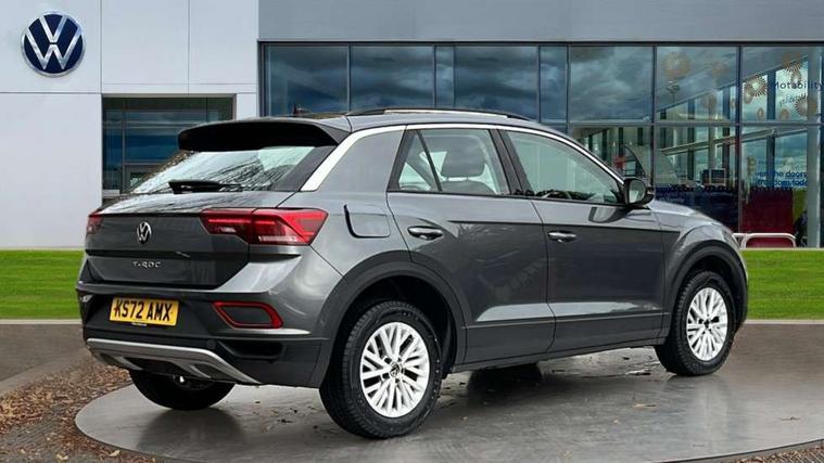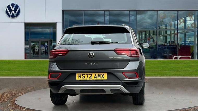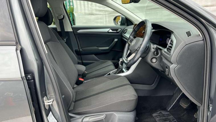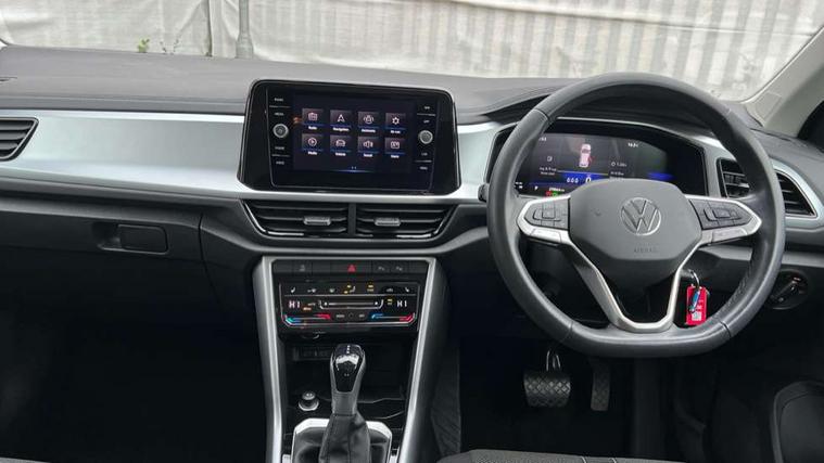 Bluetooth mobile phone interface, Driver alert system with fatigue detection, Driver tips and journey analysis, Emergency call service, Lane keeping system Lane Assist, Modified key software - reduce switch off time for key status change to Long no motion, Online services, Park assist including front and rear parking sensors, Power assisted speed sensitive steering, Service interval indicator, Tailgate/trunk lid release from outside, Think blue trainer driver tips and journey analysis, Warning sound and light for front seatbelts unfastened, Wireless app connect, Battery regeneration during braking, Front shock absorption, Rear shock absorption chassis with increased ride height, Start/stop function with battery regeneration, DAB Digital radio, Diversity antenna for FM reception, Front and rear 6 speakers, Music playback - MP3, WMA and AAC files, Premium USB cable in choice of either Apple or Android smartphone compatibility, SD card slot, Simultaneous pairing of 2 compatible mobile devices, Title and cover art display, We Connect and We Connect Plus functionality, 3rd brake light, Auto dimming interior rear view mirror, Automatic hazard lights activation under emergency braking, Automatic headlight control with LED separate daytime running lights with coming/leaving home function, Black roof rails, Body coloured bumpers and radiator grille with chrome trim and front fog lamps with chrome bezel, Body coloured exterior mirror housings and door handles, Extended roof spoiler, Exterior mirrors aspherical on driver side, convex on front passenger side, External USB type C socket and charging sockets, Front windscreen wiper with intermittent wipe and 4 position delay, Heated rear window, LED Headlights, LED rear combination lamps, LED rear number plate lights, LED tail lamp rear comination lamps, Power windows with comfort operation and circuit breaker, Rain sensor, Rear exhaust tailpipe, Rear fog light on one side and reversing lights on both sides, Rear side wing doors, Rear wash/wipe with intermittent wipe setting, Remote electrically foldable door mirrors, puddle lights and reverse activated passenger's door mirror, 12V power socket in centre console, 3 rear head restraints, 3 seat bench in 2nd row, 4 load lashing points in luggage compartment, Air care climatronic air conditoning system with active combination filter and 2-zone temperature control, Ambient lighting with mirror logo projection, Cloth upholstery, Door and side trim panel in cloth, Drawer under drivers seat, Driver/front passenger seat height adjustment, Front centre armrest, Front comfort sports seats, Front cupholders x 2, Front reading light, Instrument lighting, white adjustable panel illumination, Interior light delay, Isofix child seat preparation, Leather gearshift handle, Load-through provision with cup holder when folded down ('Unsplit rear seat bench, split folding backrest, with centre armrest), Luggage compartment lighting, Lumbar support for driver's and front passengers seat, Non-folding front passenger seat backrest, Single front passenger seat, Storage compartment in left and right luggage area, Storage compartment in rear doors, Storage compartments in driver and front passenger doors, Sunvisors with illuminated vanity mirrors, Variable boot floor, height adjustable and removable, Driver assistance pack without proactive passenger protection - T-Roc, 3 point height adj front seatbelts + pretensioners, 3 point seatbelts in outer rear with ECE label, ABS, Child locks on rear doors, Driver and front passenger airbag with front passenger airbag deactivation, Driver and front passenger safety-optimised head restraints, Drivers seatbelt reminder, Electronic parking brake, Electronic Stability Control (ESC) inc EDL (Electronic Differential Lock) and ASR (Traction Control), Front and rear passengers curtain airbag system including front side airbags, Front assist with city emergency braking and pedestrian monitoring, Front disc brakes, Front seat side impact airbags, Hill start assist, Predictive pedestrian protection, Rear disc brakes, Single tone horn, Tyre pressure loss indicator, Volkswagen roadside assistance, Alarm with interior protection, Anti-theft alarm system with interior monitoring, backup horn, and towing protection, Remote central locking with SAFELOCK, radio remote control with 2 remote control folding keys, Pewter matt decorative inserts for intrument panel, centre console and door panels at the front, Trims for alloy wheels,