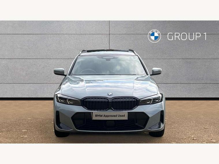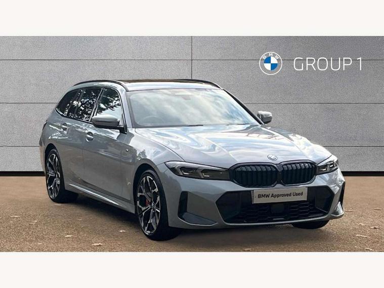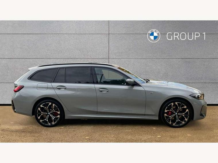 Active guard plus, Attentiveness assist, Automatic Start/stop button, Bluetooth Wi-Fi interface, BMW iDrive, BMW Teleservices, ConnectedDrive Services - last state call, Electric bootlid, Live cockpit plus with Navigation + 12.3" instrument display + 14.9" display, Intelligent voice assist, 2 USB, 4G LTE connect, Oil sensor for level and grade, Personal e-SIM, Shifting point display, Double joint spring strut front axle, Fuel tank breather system, Public mode 3 professional fast charging cable with 5m length, Steptronic Sport automatic transmission with steering wheel mounted gearshift paddles launch control and xtreme drive lever control, DAB tuner, 3rd brake light, Auto dimming rear view mirror, Automatic headlight beam throw control with load dependent regulating reaction, dynamic compensation of braking dive and acceleration squat, Bi-LED Low and high beam headlights, BMW emblem, engine compartment lid and tailgate, Body colour roof fin, Door sill strips, Electric windows - front and rear, with open/close fingertip control, anti-trap facility and comfort closing, Fading support, Follow me home headlight function, Front and rear bumper system with replaceable deformation elements, Front apron plastic in body colour, Fuel filler flap - right rear in body colour, Heat protection glazing on front windows and windscreen, Heated washer jets, High gloss chrome kidney frame with high gloss black kidney struts, High gloss shadow line roof rails, LED daytime running lights, LED rear lights, LED turn indicator, Licence plate panel integrated into front bumper and tailgate, M high gloss shadow line exterior trim, Matt black B-pillar finsher, Matt black window recess cover, Model designation on right side of tailgate, One piece front bumper cover including towing eye cover in body colour, Rain sensor with automatic headlight activation, Rear side wing doors, Rear wiper, Reversing lights, Side frame decorative moulding black matt, Trailer stabilisation logic, Visible exhaust tailpipe finisher, Welcome lights in interior and door handle area, 12V power socket in front storage compartment, 2 front cupholder in centre console with clamping elements and matt black inlay, 3 seat bench in 2nd row, 3 spoke M Sport multifunction flat bottom leather steering wheel, 3 zone automatic air conditioning, 40:20:40 split folding rear seat with loading system, Anthracite headlining, Armrest integrated in front and rear door trim + front centre console armrest, Battery in luggage compartment, BMW ID, Cruise control operation in steering wheel, Driving experience mode switch, Folding rear centre armrest with 2 cupholders, Front and rear headrests, Front and rear velour floor mats, Front reading light, Heated front seats, Height adjustable mechanically and infinitely variable steering column, Illuminated armrest storage compartment, Illuminated glove compartment, Illuminated luggage compartment, Lashing eyelets in luggage compartment, Single front passenger seat, Sunvisors with illuminated vanity mirrors and ticket pocket, Toolkit located in luggage compartment, Connected pack professional - 3 Series Saloon/Touring, Interior and exterior mirror pack - 3 Series Touring/Saloon, M sport exterior styling pack - 3 Series Saloon/Touring, Parking assistant pack - 3 Series, 3x3 point rear seatbelts, BMW emergency call, Child locks on rear doors, Crash sensor activating of airbags, Unlocking doors, hazard warning lights, interior light, safety battery terminal, Drive-off assistant, Driver and front passenger with seat occupancy detection for driver's and passenger side, Driver and passenger side airbags, body protection at side and airbags deploy from seat backrests, Dry braking, Dynamic brake control, Dynamic stability control + (DSC+) - Anti-lock Braking System (ABS) with brake assist and cornering brake control + Automatic Stability Control (ASC), Dynamic Traction Control - DTC, Electric parking brake including automatic hold function and automatic release of the parking brake when driving off, Electronic differential lock control (EDLC), Front airbag deactivation, Front airbags for driver and front passenger, Head airbags in 1st and 2nd row, head protection at side, curtain airbags open from headliner above 1st and 2nd row, Plastic fuel tank, Side impact protection, Tyre pressure sensors, Ventilated front and rear disc brakes, Warning triangle and first aid kit, Alarm system, Centre lock switch, Closing system with central locking, Electronic vehicle immobiliser, Locking wheel bolts, Tyre repair kit,