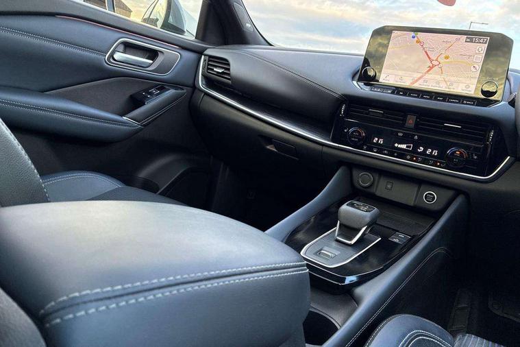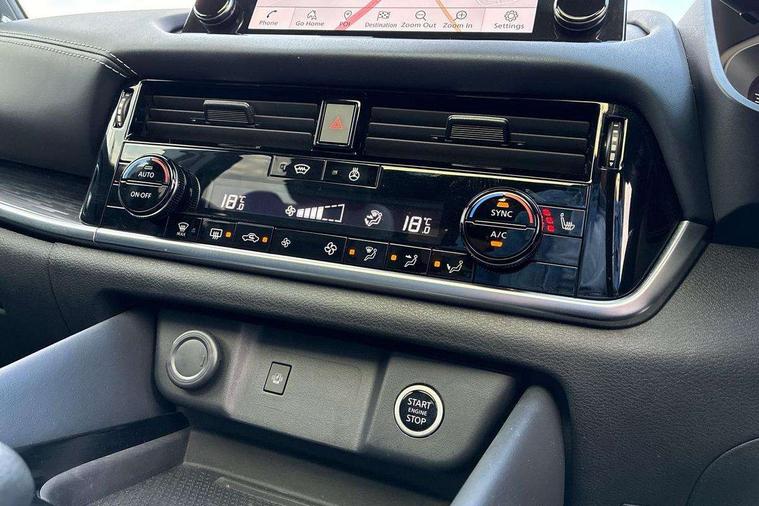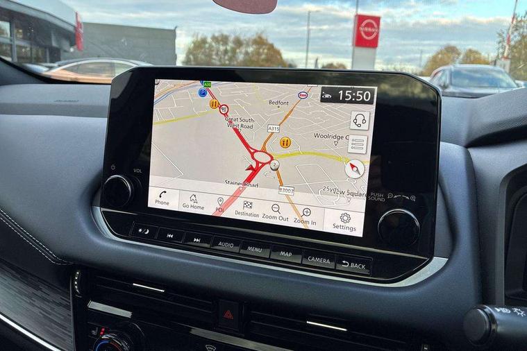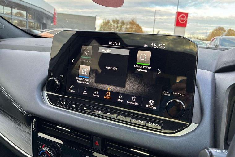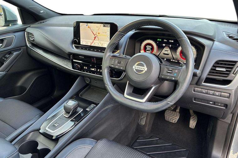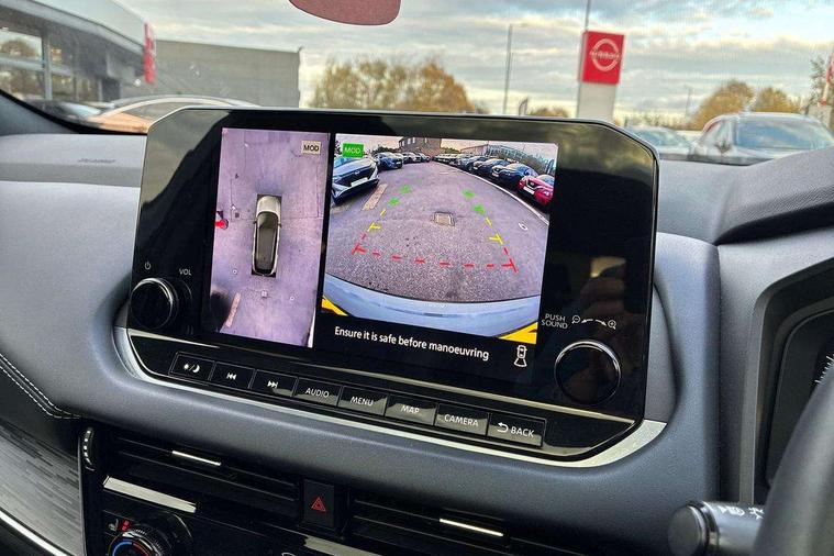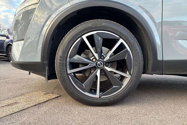 Blind spot warning, Drive modes (sport, normal, eco), Electric speed sensitive power steering, Emergency and breakdown call, Front and rear parking sensors, Full Digital 12.3" TFT Digital Combimeter, Hands free power tailgate, Idle stop/start system, Intelligent Cruise control (ICC), Intelligent driver alert system, Intelligent forward collision warning, Intelligent lane intervention, Lane departure prevention, Lane departure warning system, Moving object detection, Push button starter, Rear cross traffic alert, Traffic sign recognition with legal speed adjustment, Trip computer, 6 speakers, AM/FM audio system with DAB, Bluetooth audio streaming, Front USB connections (Type-A and Type-C), Rear USB charging only ports (Type-A and Type-C), Auto dimming rear view mirror, Auto rear wiper when reversing, Body colour mirror caps, Body coloured door handles, Bodyside mouldings, Chrome side window finisher, Electric auto folding door mirrors, Electrically adjustable and heated door mirrors with LED turn indicator, Fixed panoramic glass roof with electric sunshade, Follow me home headlights, Intelligent auto headlights, LED daytime running lights, LED signature rear lights, One touch front and rear electric windows with remote opening and closing, Partially body coloured bumpers, Privacy glass, Rear roof spoiler, Rear styling plate, Roof rails, Shark fin antenna, Splash free rain sensing wipers, Super UV and infrared cut glass, Three blink turn signal, 12v power socket in dashboard and luggage, 2 way electrical driver lumbar adjustment, 2x Rear coat hooks, 3 rear headrests, 4 grab handles, 6 Luggage hooks - 4 on floor, 2 on side, 60/40 split folding rear seat, 8 way electric adjustable drivers seat, Ambient lighting around centre console, Ambient lighting in front doors, Centre console storage tray, Chrome interior door handles, Cloth/syntech leather monoform upholstery, Dark headlining, Driver and front passenger sunvisors with illuminated vanity mirrors, Driver seat back pocket, Dual zone automatic climate control with pollen filter, Front centre console and armrest, Front cupholder, Front door with bottle holders, Glovebox with light, Hard trunk cover, Height adjustable front headrests, Leather steering wheel, Luggage board system, Luggage space lighting, Manual lumbar support on passenger seat, Manually adjustable passenger (slide recline + lifter), Multifunction steering wheel, Passenger seat back pocket, Rear armrest with 2 cupholders, Rear door bottle holders, Soft PVC kneepad, Steering wheel gearshift paddles, Steering wheel switches, Tilt/telescopic adjustable steering wheel, Two rear isofix child seat anchorage points with top tether, Welcome light and doors with console tray ambient lighting, Heat pack - Qashqai, Tech Pack (ProPILOT + HUD), 3x3 point rear seatbelt pretensioners + load limiters, ABS, ESP, EBD and brake assist, Active brake limited slip, Auto hold function, Child locks on rear doors, Curtain and front side, far side airbags, Driver and passenger airbags, Driver, passenger and 2nd row rear seat belt reminder, Electronic parking brake, Front seatbelt pretensioners + load limiters, Height adjustable front seatbelts, Hill start assist, Intelligent blind spot intervention, Intelligent front emergency braking with pedestrian, cyclist recognition and junction assist, Intelligent rear automatic braking, Tyre pressure monitoring system, Vehicle dynamic control, Capless fuel filler, Engine immobiliser, Nissan i-key, Remote central door locking with deadlocking, Thatcham Cat.1 alarm, 19" Alloy wheels,