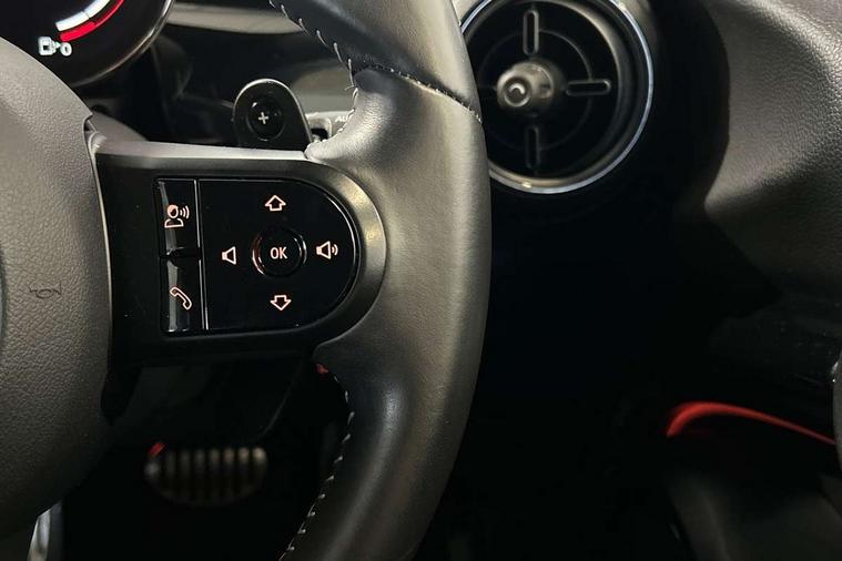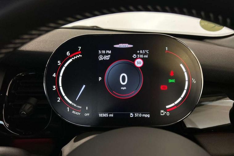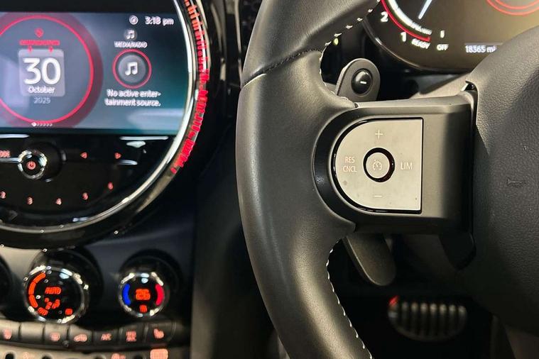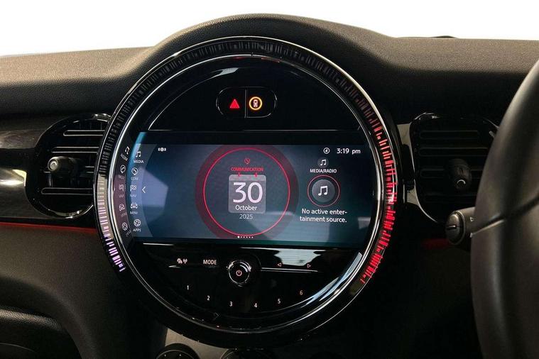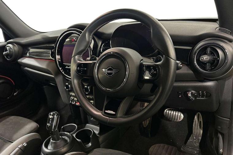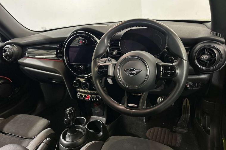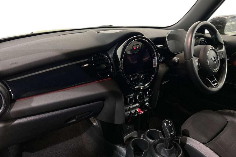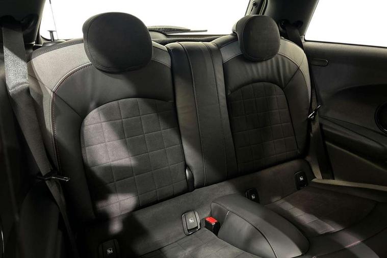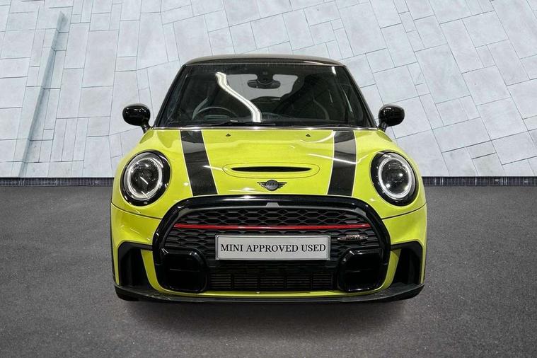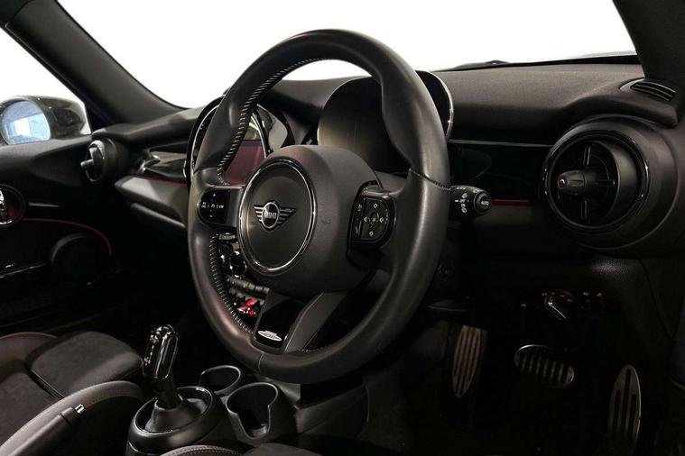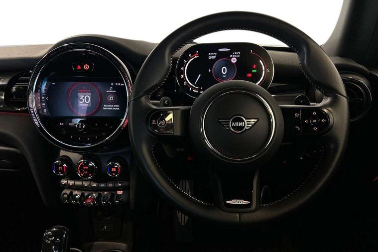 Apple CarPlay, Automatic start/stop function with brake energy recuperation, Compatible mobile phone bluetooth with audio streaming, Cruise control with brake assist, Electro-mechanical speed dependant steering assistance, Flexible car sharing preparation, Instrument cluster, MINI Driving Modes - centre toggle switch to control driving setting (sport, mid and green), Mini E-call, MINI TeleServices, On board computer, Rear park distance control, Service interval indicator, Double Vanos system, Eight speed steptronic sport transmission, with gearshift paddles, Fully variable valve control, High precision injection, Performance Control, 8.8" touchscreen with LED ring, FM tuner and DAB digital radio, 3rd brake light, Automatic headlight activation switch, Bonnet scoop, Dynamic brake lights, Electric front windows, Heated rear window, Heated windscreen washer jets, JCW Aerodynamic kit - Front and rear bumpers with sporty JCW styling and part-painted side sills with MINI John Cooper Works door sill finishers, John Cooper Works logo above an individual grille strut in Chilli Red, John Cooper Works rear spoiler, LED headlight with closed ring and daytime driving lights, Radiator grille piano black border with honeycomb structure in black matt, Rain sensor window wipers, Rear fog lights, Rear LED lights with union jack design, Rear window wiper, Side scuttle panel with integrated indicator, Side scuttle with MINI John Cooper Works logo in black high-gloss with red border, Sun/heat protection glass, Two central exhaust tailpipes with chrome finisher, White indicator lenses, 12V Accessory socket in centre console, 2 seat bench in 2nd row, 4 lashing eyes in luggage compartment, 60/40 split folding rear seat, Anthracite headliner including grab handles and clothes hooks, Carbon black colour line - Knee roll and door armrest, Chrome interior highlights, Cupholders, Front and rear isofix with front passenger airbag deactivation, Front floor mats in velour, Glove compartment, Height and length steering column adjustment, Interior lighting with 12 different colours across the dashboard, underneath door bezel with illuminated laser-engraved design on central display, JCW Sport seats with integrated headrests, adjustable thigh support and John Cooper Works logo, Leatherette gearshift lever and handbrake gaiters, LED reading lights, vanity mirror lights, front foot well light and spotlight on front seats, Manual air conditioning, Mechanical seat adjustment - forward/back & backrest for front seats and driver seat height adjust, Multifunction steering wheel, Passenger seat height adjuster, Rubberised stainless steel pedals, Single front passenger seat, Storage compartments in doors, Storage pocket on back of front seats, Sunvisors with vanity mirrors, Tool kit, Walknappa leather steering wheel with grey seam and John Cooper Works badge on Piano Black lower steering wheel spoke, Piano black exterior pack - JCW, 3 point seatbelts on all four seats, 4-piston fixed-calliper brakes front, 6 Airbags - front, side, head and seat belt tensioners, Anti-lock braking system (ABS), DSC - Dynamic Stability Control, Front and rear disc brakes, Red brake callipers with John Cooper Works logo, Single tone fanfare horn, Tyre pressure monitoring system, Alarm system with tilt sensor, monitoring doors, bonnet interior and tailgate, Electronic vehicle immobiliser, Start/stop toggle with keyless go,
