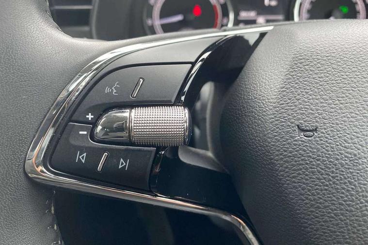 Amundsen satellite navigation with 9.2" glass colour touchscreen display, web radio, voice control and traffic sign recognition, Bluetooth system, E-call, Front assist system, Gesture control, PAS, Service indicator, Speed limiter, Wireless SmartLink for apple car play, android auto and mirrorlink, 8 Speakers, Auxiliary input socket, DAB Digital radio, Body colour bumpers, Body colour door mirrors and handles, Chrome grille surround, Dimming rear view mirror with black surround, Electrically adjustable and heated door mirrors, Front and rear electric windows, Headlight range control, Heated rear window, LED rear lights - low functionality, Light sensors, Privacy glass, Rear fog lights, Rear side wing doors, Rear wiper, 12V Accessory socket in centre console, 3 seat bench in 2nd row, Chrome inner door handles, Cloth upholstery, Front head restraints, Glove compartment with illumination, Height adjustable driver and front passenger seats - manual, Ice scraper, Isofix child seat fittings on outer rear seats, ISOFIX on front passenger seat, Manual lumbar support for front seats, Rake/reach adjustable steering wheel, Reading lights, Single front passenger seat, Sun visors with illumination on front passenger, Textile floor mats, Third rear headrest, Top tether for front passenger seat, Umbrella in driver's door, 3x3 point rear seatbelts, Airbags - driver and front passenger, ESP, Front passenger airbag deactivation switch, Front side airbags with curtain airbags, Hill hold control, Manual parking brake, Manual rear child locks, One tone horn, Rear disc brakes, Seatbelt reminder for driver an co-driver, Traction control, Tyre pressure monitor, Anti-theft alarm system with interior monitoring, backup horn, towing protection and remote central locking with SAFE system, Anti-theft wheel bolts, Electronic engine immobilizer, Silver haptic decorative insert on the dashboard with hot stamping in glossy black,