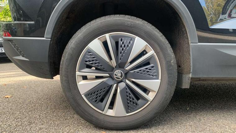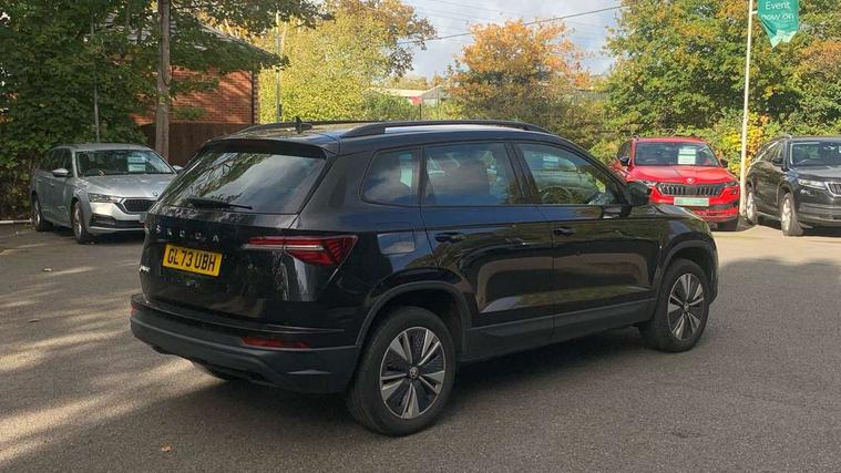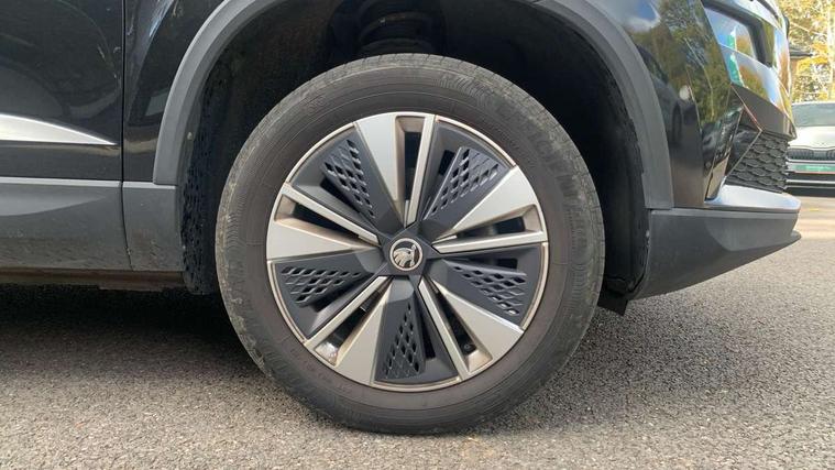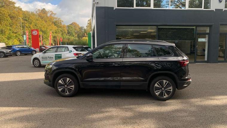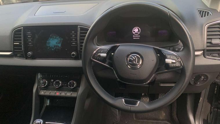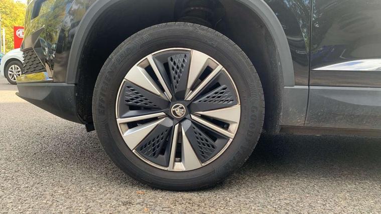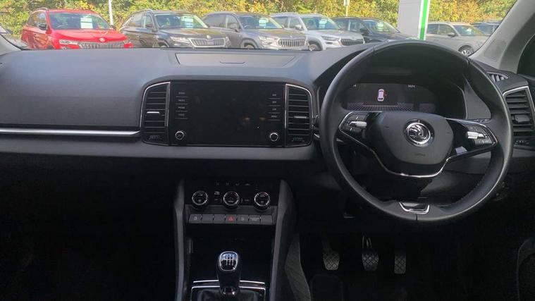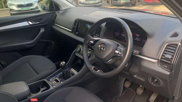 8" Digital display, Amundsen satellite navigation with 8" touchscreen display with maps Europe, WLAN and web radio, Care connect, Driver fatigue sensor, Electro-mechanical PAS, Emergency services call system, Outside temperature gauge, Service interval indicator, SmartLink wireless for Apple and wired for Android, Start/stop system with regenerative braking, USB C Port x 2 in front centre console, 8 Speakers, DAB radio with Bluetooth, USB connection, Acoustic glass, Aero front windscreen wipers with intermittent function, Auto dimming rear view mirror with light and rain sensors, Black electric window control buttons, Body colour door mirrors and handles, Dynamic headlight range control with cornering light function, Electric front and rear windows with child proof lock, Electrically adjustable heated folding and auto dimming door mirrors, Front fog lights, Heated rear windscreen, LED daytime running lights, LED Headlights, LED rear lights with high functionality welcome effect and dynamic indicators, Light assistant (coming/leaving home/tunnel light), Plastic scuff plates, Privacy glass, Rear side wing doors, Rear window wiper with washer system and intermittent control, Safety reflectors on front doors, Third brake light, 1.5 litre bottle holders in driver and front passenger door panels, 12V socket in boot, 12v socket in front centre armrest with storage compartment and rear air vents, 2 x Tablet holder, 3 rear height adjustable headrests, 3 seat bench in 2nd row, 4 foldable roof handles with rear coat hooks, Black floor carpet, Chrome inner door handles, Double sided boot floor, Driver/front passenger reading lights, Foldable hooks in the boot, Folding tables on the front seat backrests, Front head restraints, Height adjustable driver and passenger seat, Height adjustable front three point seats belts with tensioners, Height/reach adjust steering wheel, Ice scraper, Illuminated glovebox, Illuminated luggage compartment, Isofix child seat preparation for front passenger seat, Isofix child seat preparation outer rear, Manual lumbar support for front seats, Pearl grey interior ceiling, Pen holder, Pollen filter, Rear boot cover, Rear reading lights, Rubbish bin door, Safety vest holder, Single front passenger seat, Storage box in upper central dashboard closed, Sunvisors with illuminated vanity mirrors, Textile floor mats, Ticket holder, Umbrella under passenger seat, Boot pack - Karoq, Automatic door unlocking in case of crash, Automatic fuel cut off in case of crash, Child locks on rear doors, Driver airbag, Electronic parking brake with auto hold function, Emergency rear braking signal, ESC including ABS, MSR, ASR, EDS, HBA, DSR, RBS, MKB and traction control, Front side airbags, Hill hold control, Knee airbags, Passenger airbag with switch-off function, Pedestrian monitor, Seatbelt reminder signalisation and pretensioner for all seats, Three point seatbelts rear, Two tone horn, Tyre pressure display, Tyre pressure monitor, Alarm with interior monitoring, back up horn and tilt sensor with safe function, Electronic engine immobiliser, Remote central locking with 2 remote folding keys, Black centre console, Chrome framed air vents, Satin black dashboard, Satin black door trim, Anti-theft wheel bolts protection, Tool kit,