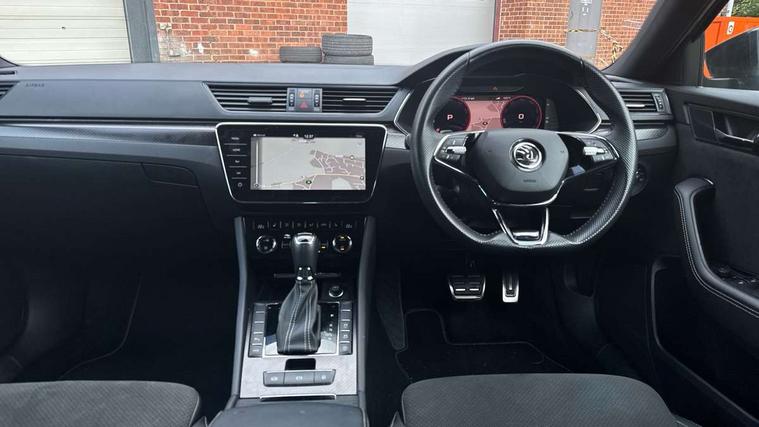 Bluetooth system, CareConnect and Emergency Call, Columbus HDD satellite 3D map navigation with 9.2" colour touch screen, web radio, integrated Wi-Fi, Driver fatigue sensor, Front assist with pedestrian protection, Progressive dynamic steering, Stop/start engine system and energy recovery, Virtual cockpit, Voice control system, Wireless smartlink apple carplay, SmartLink+ android auto, XDS+, 2 USB ports, Bolero radio with 8" touchscreen display, DAB Digital radio, 3rd brake light, Aero front windscreen wipers with intermittent function, Auto dimming rear view mirror, Black rear badge, Body colour door handles, Cornering front fog lights, Electrically adjustable heated and folding door mirrors with memory function, Front and rear electric windows, Full matrix LED headlights with AFS LED DRL integrated with headlight washer LED rear lights(High function), dynamic indicators and lighting animation, Gloss black exterior door mirrors with sports styling including front grill, side strip and window surrounds, Gloss black grille surround with gloss black rib elements, Gloss black rear spoiler (roof), Gloss black strip between rear lights, Light assistant (coming/leaving home/tunnel light), Privacy glass, Rain sensor, Rear exhaust diffuser styling elements, Rear side wing doors, Sportline badging, 12v power point in centre console, 3 seat bench in 2nd row, Black roof headlining, Black textile floor mats, Carbon optic interior elements, Electric auxiliary air heater, Front and rear footwell illumination, Front armrest with storage box, Height adjustable front and rear head restraints, Ice scraper, Illuminated and cooled glovebox, Interior lights with control switches, Isofix child seat fittings on outer rear seats, LED front and rear reading lights, Microsuede/leather upholstery with silver diamond stitching sports seats, One umbrella compartments in driver door with one umbrella in drivers door, Overhead glasses storage compartment, Rear centre armrest with cupholders, Removable parcel shelf, Single front passenger seat, Split folding rear seats, Storage compartment with cover in luggage compartment side panels, Ticket holder on A Pillar, LED package plus - Superb, 3 rear seatbelts, 7 airbags - Front, front side, curtain, driver's knee airbag with front passenger deactivation switch, Driver and passenger seatbelts with warning light, Electronic parking brake, ESC including ABS, EBV, MSR, ASR, EDS, HBA, DSR, RBS, CBC, multi-collision brake (MKB) and Auto hold, Hill start assist, Power operated child lock in rear doors, Tyre pressure monitor, Alarm with interior monitoring tilt sensor and back up horn, Electronic engine immobiliser, Keyless entry and start/stop, Remote central locking with SAFE system, Third remote key,