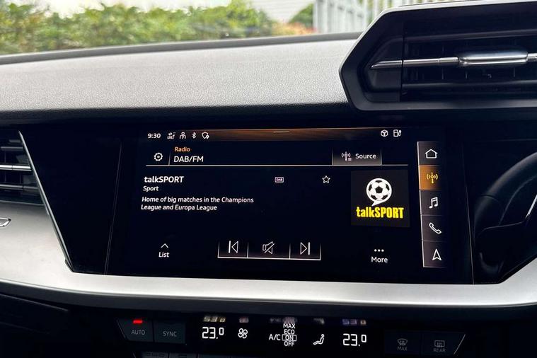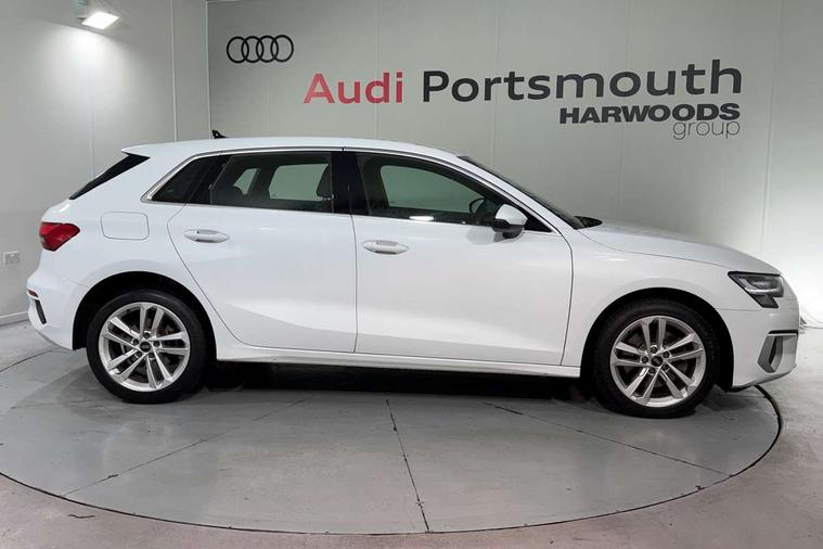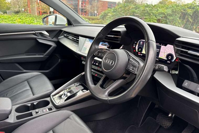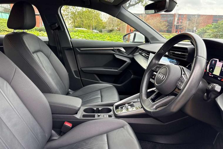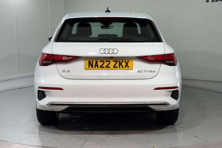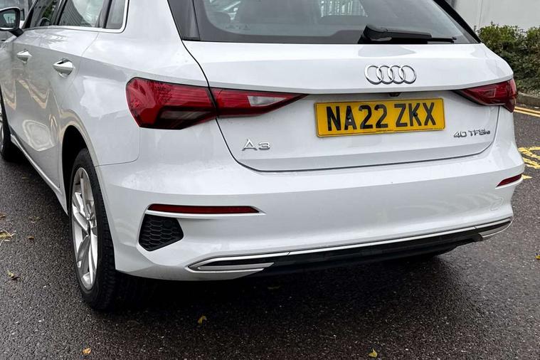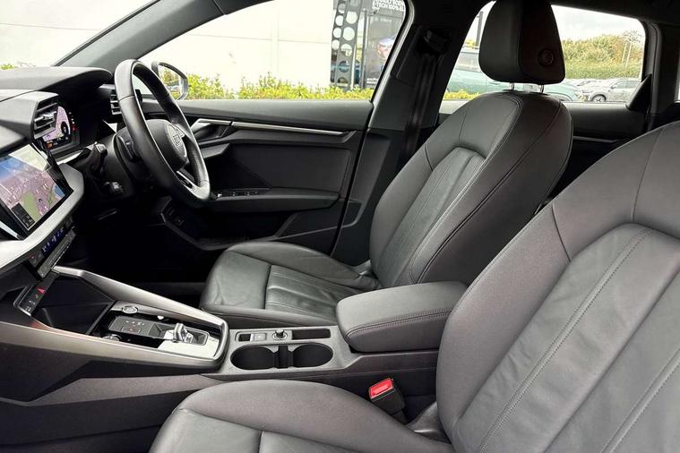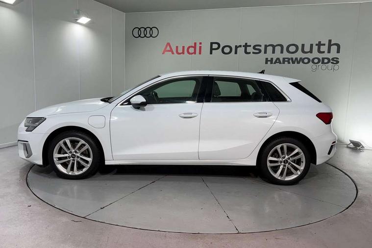 Audi drive select (Auto, Comfort, Dynamic, Efficiency and Individual), Audi smartphone interface, Audi Virtual Cockpit - 10.25" digital and colour instrument cluster, Automatic start/stop system with recuperation, Bluetooth interface, Collision avoidance assistant, e-Call (emergency call), Electromechanical power speed sensitive steering, Lane departure warning system, MMI Navigation Plus with high resolution 10.1" colour touch screen display, Service indicator, Trip computer, Voice control system with natural language interaction, 3 pin 10 amp domestic charging cable, 3.6 kw On-board charger, Standard suspension, Type 2 mode 3 32 amp charging cable, Type 2 socket for AC charging, 2xUSB-C connection with data and charging functions, 6 passive loudspeakers, DAB Digital radio, 3rd brake light, Acoustic glass windscreen, Aluminium window trim, Auto dimming frameless rear view mirror, Body colour exterior mirrors, Body colour roof spoiler, Electrically adjustable/heated/folding/auto dimming door mirrors with integrated LED indications + kerb view function for passenger side, Front electric windows, LED daytime running lights, LED headlights and halogen rear lights, Light and rain sensors, Rear electric windows, Rear side wing doors, Rear window, rear door windows and rear side windows in clear glass, Rear wiper, 12V socket and storage compartment in front centre console, 3 seat bench in 2nd row, 40/20/40 split folding rear seat bench with cupholder, Dual zone electronic climate control, Front and rear centre armrest, Front and rear headrests, Front door sill trims with aluminium inlay, Front/rear floor mats, Height and reach adjustable steering wheel, Interior lighting - Front and rear roof module including reading lights, glove compartment light and right hand side, Luggage compartment floor covering, Manual boot compartment lid, Manually adjustable front seats, Seat side bolsters, Single front passenger seat, Steel grey cloth headlining, Twin leather upholstery, Aluminium interior elements pack - A3 Sportback, Sport styling pack - A3 Sportback, 3x3 point rear seat belts, Audi pre sense front, Driver and front passenger airbag with passenger airbag deactivation, Electronic Stabilisation Control (ESC) including ABS, ASR and EDL, First aid kit with warning triangle and 2 safety vests, Front side airbags with head airbags and interaction airbag, Pre-sense front with pedestrian and cyclist detection, Seatbelt monitoring, Tyre pressure loss indicator, Anti theft alarm, Anti-theft wheel bolts, Immobiliser, Manual child locks, Remote control central locking, Inlays with silk effect paint in platinum grey, Tool kit, Tyre repair kit,