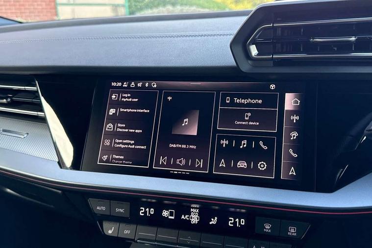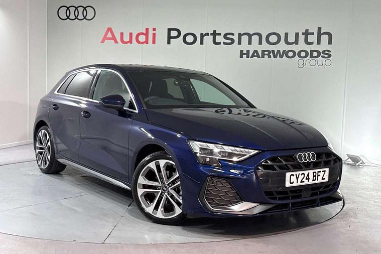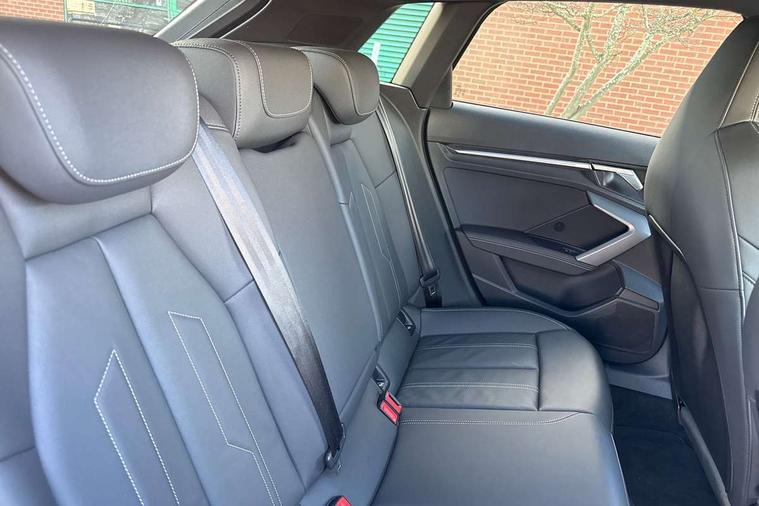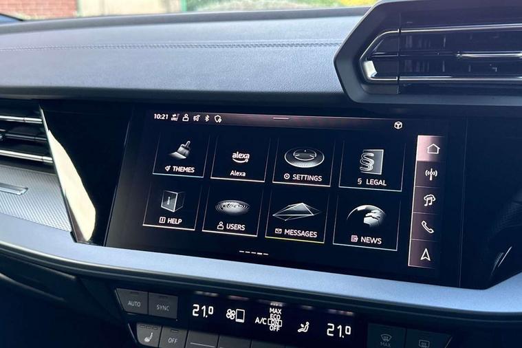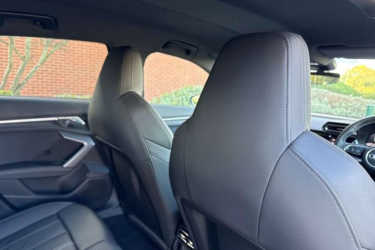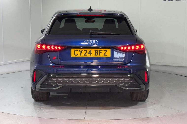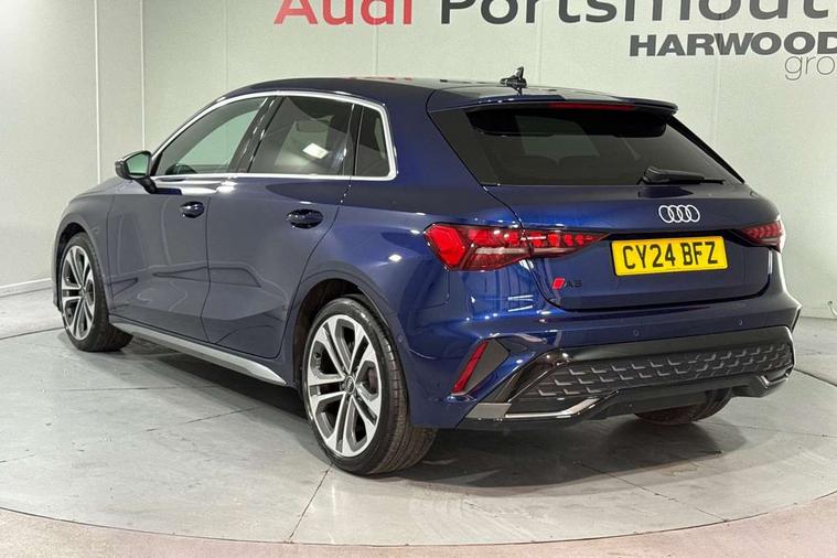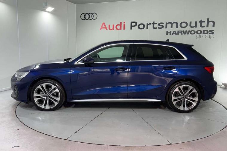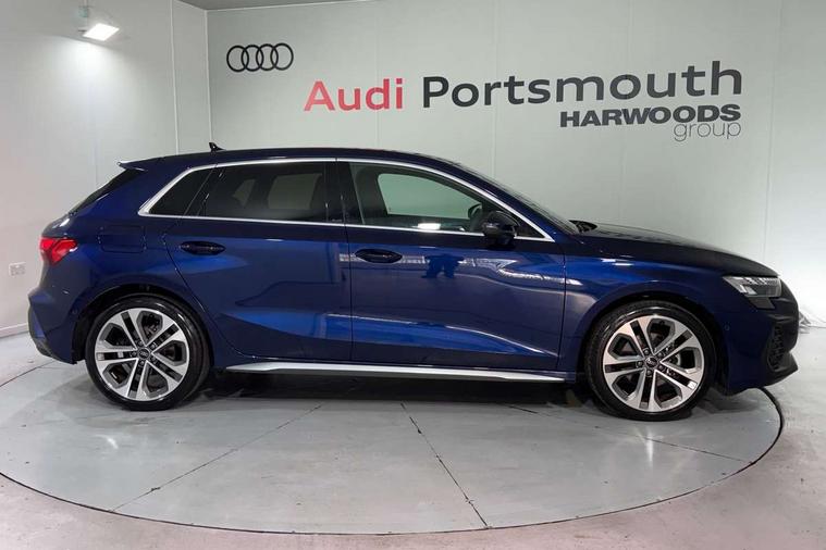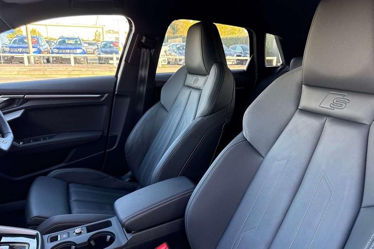 Adjustable speed limiter, Audi drive select, Audi smartphone interface with app store includes wireless Apple carplay, Android auto and Amazon alexa integration, Audi virtual cockpit plus - 12.3" full HD resolution dynamic digital instrument cluster, Automatic start/stop system with recuperation, Bluetooth interface, Camera based traffic sign recognition, Collision avoidance assistant, Cruise control, Distraction and Fatigue warning, e-Call (emergency call), Electromechanical power speed sensitive steering, Lane departure warning system, MMI Navigation Plus with high resolution 10.1" colour touch screen display, Park Assist with parking system Plus, Service indicator, Tailgate, Trip computer, Voice control system with natural language interaction, Sports suspension, Audi Phonebox light with wireless charging, Audi sound system - 10 loudspeakers including centre loudspeaker and subwoofer, DAB Digital radio, USB ports with charging function in the rear, Acoustic glass windscreen, Aluminium window trim, Auto dimming frameless rear view mirror, Body colour exterior mirrors, Chrome exhaust tailpipes, Electrically adjustable/heated/folding/auto dimming door mirrors with integrated LED indications + kerb view function for passenger side, Exterior model badging, Front and rear side air inlets in grained matt black with dark liquid chrome frame, Front electric windows, Front radiator grill in high gloss dark chrome, Heat insulating glass windscreen, Illuminated door sills with aluminium inserts at the front with S logo, LED 3rd brake light, LED daytime running lights, LED headlights with LED rear lights and dynamic rear indicators, Light and rain sensors, Privacy glass - dark tinted rear window, rear door and side windows, Rear diffuser and grill in grained matt black with inlay in dark liquid chrome, Rear electric windows, Rear side wing doors, Rear wiper, S line bumpers, S roof spoiler, Side S line emblems on front wings, Side sill trim in dark liquid chrome, 12V socket and storage compartment in front centre console, 3 seat bench in 2nd row, 3 spoke flat bottomed leather multifunction sport steering wheel with gear shift paddles, 3-zone deluxe automatic air conditioning, 4 way electrically adjustable lumbar support for driver and front passenger, 40/20/40 split folding rear seat bench, Black cloth headlining, Front and rear centre armrest in artificial leather, Front and rear headrests, Front/rear floor mats, Heated front seats, Height and reach adjustable steering wheel, Manual boot compartment lid, Manually adjustable front seats, Rear cup holders, S badging on the steering wheel, Seat side bolsters, Single front passenger seat, Stainless steel pedals and front footrest in black, Twin leather upholstery with front sports seats S embossed logo, Aluminium interior elements pack - A3 Sportback, Multi-coloured LED interior lighting package - A3, 3x3 point rear seat belts, Driver and front passenger airbag with passenger airbag deactivation, Electronic Stabilisation Control (ESC) including ABS, ASR and EDL, First aid kit with warning triangle and 2 safety vests, Front side airbags with head airbags and interaction airbag, Hill hold assist, Pre-sense front with pedestrian and cyclist detection, Seatbelt monitoring, Tyre pressure loss indicator, Anti theft alarm, Anti-theft wheel bolts, Electronically operated child locks, Immobiliser, Remote central locking with safelock, Dash & door Inlay in dark aluminium Spectrum,