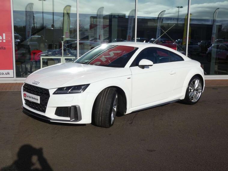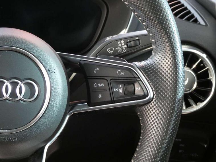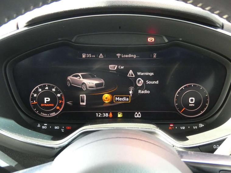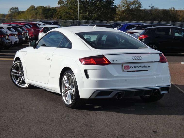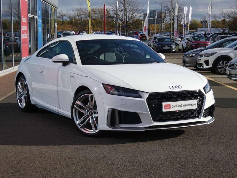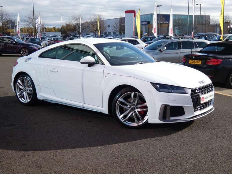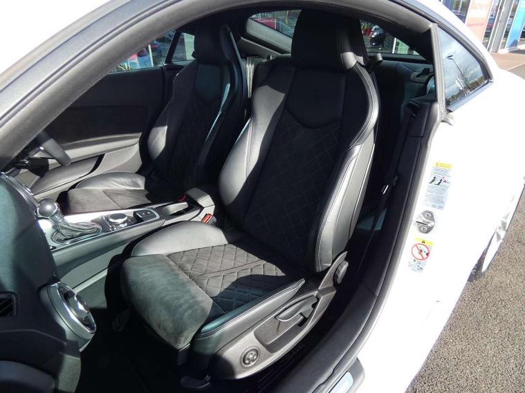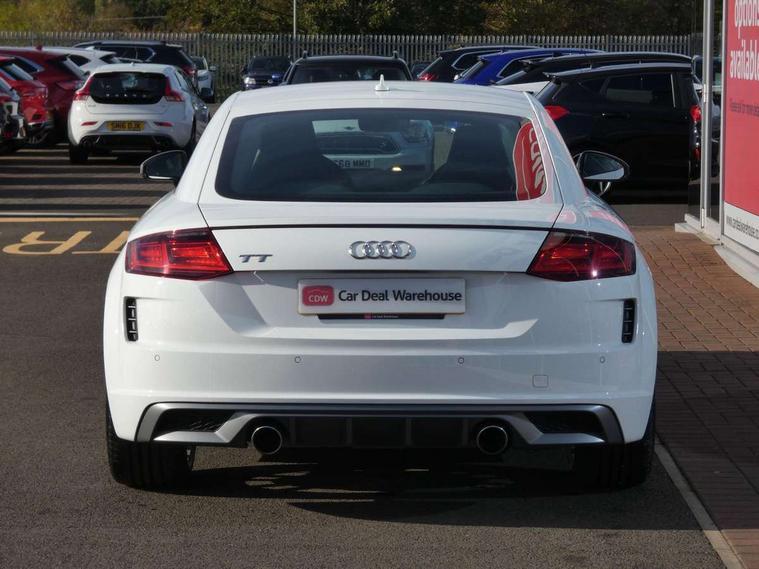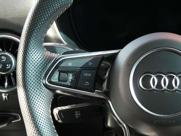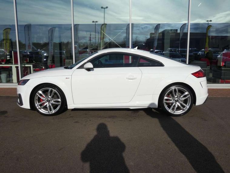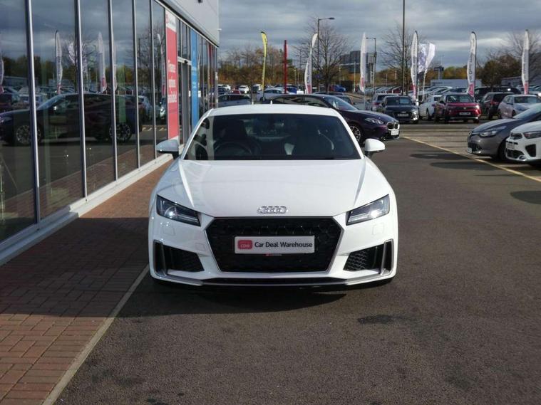 Audi drive select with 4 Pre configured modes, Audi smartphone interface, Audi virtual cockpit - 12.3" high-resolution LCD display with fully customisable instrument cluster, Cruise control + speed limiter, MMI touch panel, Mobile phone preparation with bluetooth interface, Progressive power assisted steering, Service interval indicator, Start/Stop system with energy recuperation, TP memo, S line sports suspension, AM/FM radio, Bluetooth audio streaming, DAB Digital radio, MMI Radio with CD player and SD/XC card slot, Auto dimming rear view mirror, Auto headlight range control, Body colour bumpers, Body colour electrically adjustable and heated door mirrors with built in LED side indicators, Dynamic rear indicators, Electric folding door mirrors, Electric front windows, Front fog lights, Green tinted heat insulating glass, Headlight wash system, High gloss black radiator grille, LED daytime running lights, LED headlights with LED rear lights + dynamic rear indicators, Light and rain sensors, Retractable rear spoiler, S line badges on front wings, S Line front and rear bumpers, S line rear diffuser with platinum grey insert, S line side sills, Sunband for windscreen, 12V socket, 3 spoke flat bottomed high multi-function leather sport steering wheel with gearshift paddles, 4 way electric lumbar support for driver and front passenger, Black headlining, Door sill trims with S line logo, Extended aluminium look with stainless steel pedals, Front centre armrest, Front super sports seats, Heated front seats, Height adjustable driver's seat, Height adjustable front head restraints, Height/reach adjust steering wheel, ISOFIX child seat mounting for front passenger seat with airbag deactivation, Perforated leather gearknob in black, Rear head restraints, Rear top tether child seat ISOFIX attachment, S Line badge on steering wheel, Split folding rear seat, Tool kit, Non smoking pack - TT/TT RS, 3 point front seat belts, ABS, ASR traction control, Brake energy regeneration, Curtain airbags, Driver and front passenger airbag with front passenger airbag deactivation, EDL traction control, Electromechanical parking brake, ESP, First aid kit, Front side airbags, Head airbags, Hill hold assist, Seatbelt warning, Tyre pressure warning, Warning triangle, Anti theft alarm, Anti theft wheel bolts, Immobiliser, Keyless Go, Remote central locking, Matt brushed aluminium inlays, Tyre repair kit,