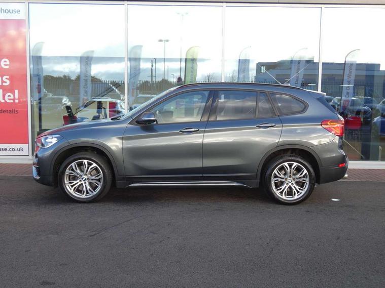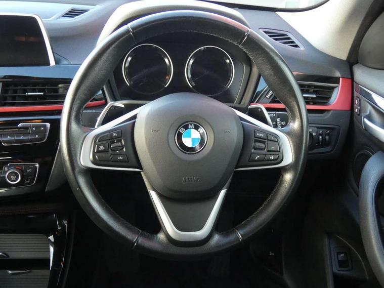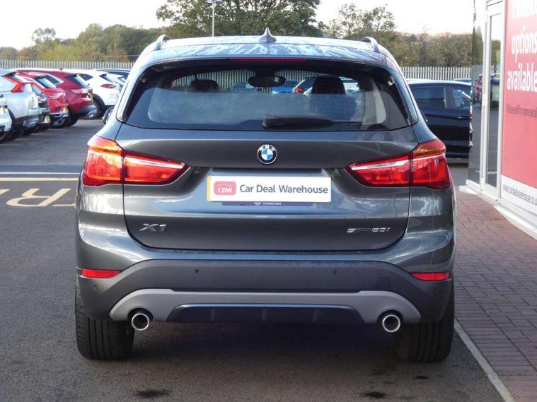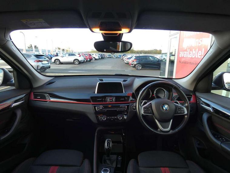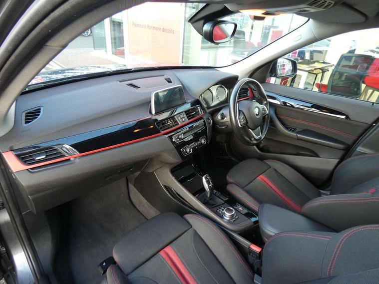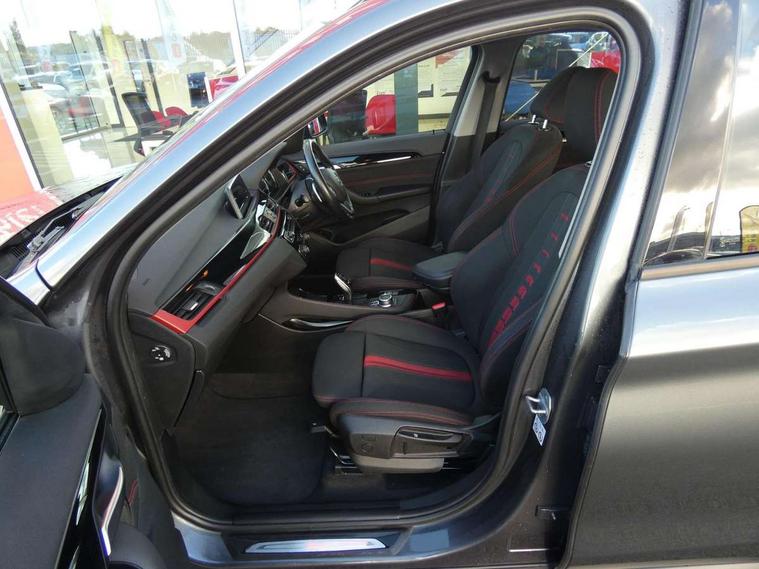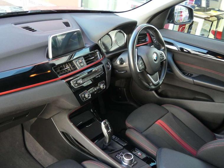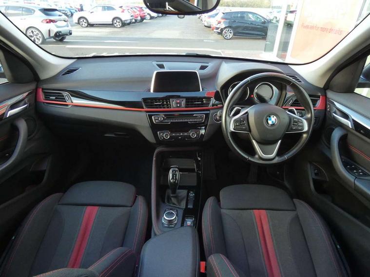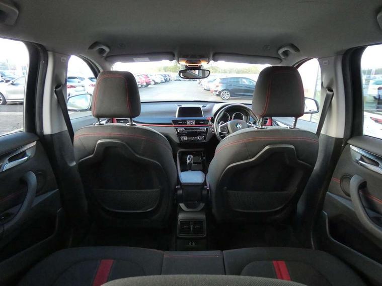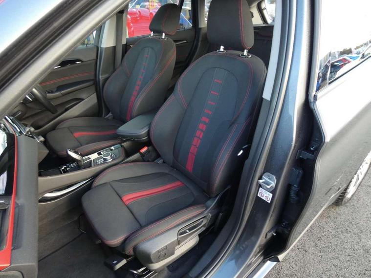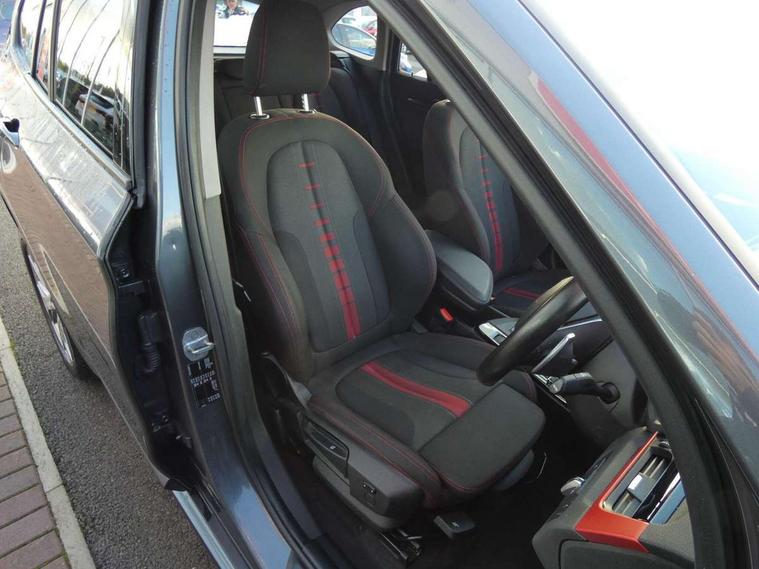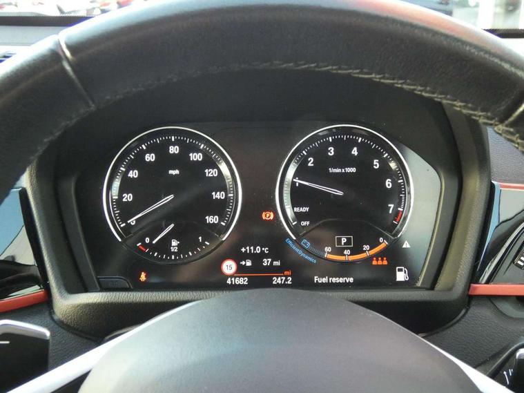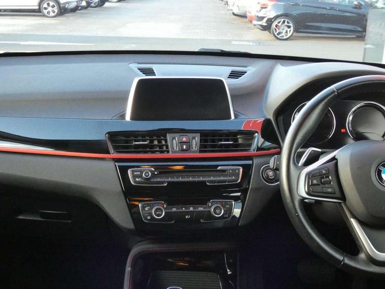 Active Guard incl speed limiting and lane departure functions with auto steering, and front collision warning with brake intervention, Ambient temperature display, Attentiveness assist, Automatic tailgate opening, BMW Online services, BMW remote services, BMW Teleservices, Brake pad wear indicator in front and rear, Instrument cluster with speedometer with miles per hour read out, tachometer and fuel gauge, Lights on warning by audio warning signal when ignition is switched off, On board computer, Outside temperature gauge, Personal Profile - automatic lock when driving away selectable, Real time traffic information, Service interval indicator, Servotronic PAS, Speed limiter, Stop/start button, Tyre puncture warning system, 12V compressor with integrated sealant injection bottle and hose, Drive performance control with ECO PRO comfort + sport mode, Electronic differential lock, High precision injection, Performance Control, 2 USB Power socket for rear seat, BMW professional radio with CD player, DAB Digital radio, USB connection located in centre console, USB/audio interface, Adjustable headlights, Body colour bumpers, Body colour door handles, Body colour front bumper underbody protection, Body colour sill covers, Clear lenses direction indicator lights, Direction indicator side lights integrated exterior mirrors, Dynamic brake lights, Electrically adjustable and heated door mirrors, Exclusive door sill finishers, Fingertip control / anti-trap function on electric window, Follow me home headlights, Front air inlets with high gloss black finisher, Front and rear electric windows, Front fog lights, Halogen headlights, Headlight beam throw control, Heat insulating tinted glass, Heated windscreen washer jets, High level third brake light, Kidney grille with 16 high gloss black fronted vertical slats, LED daytime running lights, Lightweight engineering, Rain sensor including auto headlights activation, Rear bumper underbody protection in black, grey and body colour, Rear fog lights, Rear window aerial, Rear window wash/wipe, Reversing light in rear light cluster, Shark fin antenna, Twin chrome exhaust tailpipes x2, Visible VIN plate, Welcome home function, 12v power point in centre console, 3 rear headrests, 3 spoke sport leather steering wheel, 4 grab handles, Black door sill finishers with BMW designation, Boot light, Centre console with cupholders, Child seat ISOFIX attachment for two outer rear seats and front passenger seat with anchorage points, Driver/passenger sunvisors with ticket holders, Drivers folding storage compartment, Dual zone automatic air conditioning, Extended storage, Front and rear door armrests, Front centre armrest/sliding cover, Front sports seats, Front/rear adjustable head restraints, Illuminated glovebox, Leather gearknob/gaiter/handbrake grip, LED ambient lighting in door trim, Luggage area underfloor compartment, Luggage compartment lighting, Luggage compartment loading edge with stainless steel insert, Multifunction steering wheel, Rake/reach adjustable steering wheel, Rear coded belt buckles, Sliding/split/reclining 40/20/40 rear seat with 60/40 split rear seat base, Steering wheel gearshift paddles, Velour floor carpets, Extended storage package - X1, 3 rear 3 point seatbelts, ABS/EBD, Audio/visual collision warning system, Automatic Stability Control (ASC), Battery safety cut-off, BMW emergency call, Brake drying, Brake energy regeneration, Braking readiness, Collision mitigation braking system, Cornering brake control (CBC), Crash Sensor - activates hazard/interior lighting + unlocks doors, Driver/Front Passenger airbags, Driver/front passenger side airbags, Dynamic brake control, Dynamic stability control + (DSC+), Dynamic Traction Control - DTC, Electronic parking brake, Front and rear head airbags, Front passenger airbag deactivation, Front seatbelt force limiters, Front ventilated disc brakes, Hill start assist, Pyrotechnically pre-tensioned front seatbelts, Rear disc brakes, Rear door child safety locks, Seatbelt warning, Side impact protection, Twin horns, Tyre pressure monitor, Warning triangle and first aid kit, Auto door lock when driving, Central locking including boot and fuel flap with deadlocks, Engine immobiliser, Locking wheel nuts, Remote control Thatcham category 1 alarm, Remote control with integrated key with Pearl chrome highlight, High gloss black centre console, Low rolling resistance tyres,