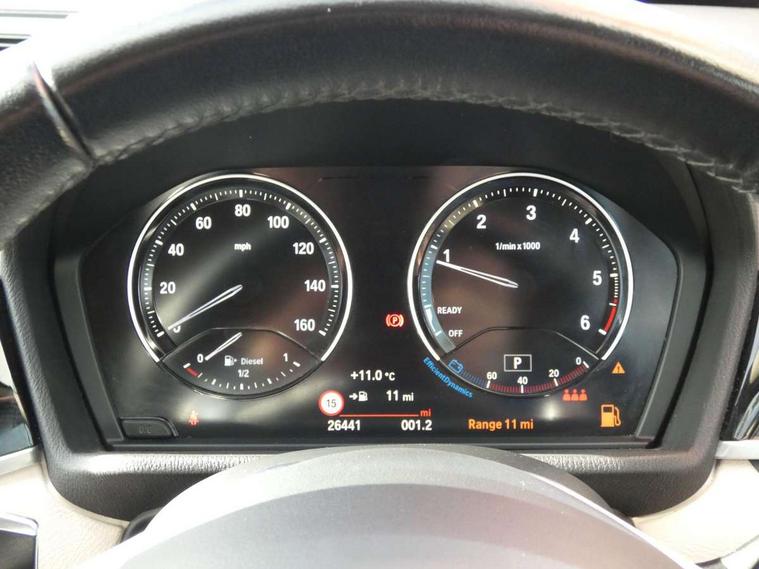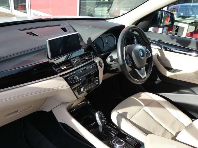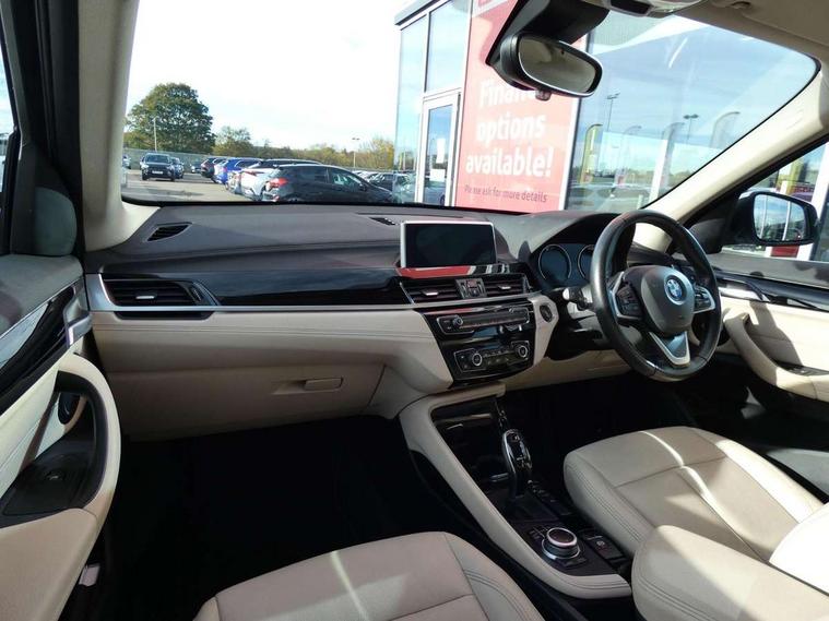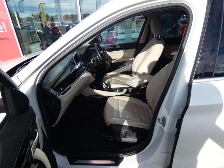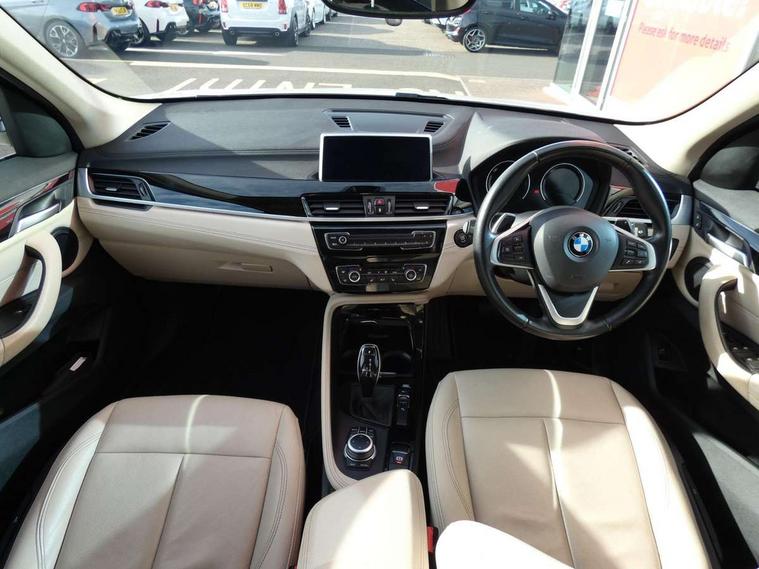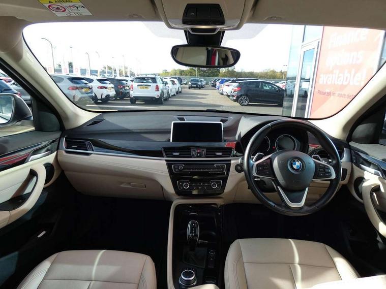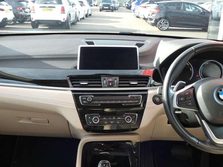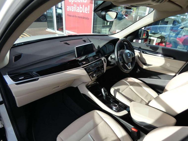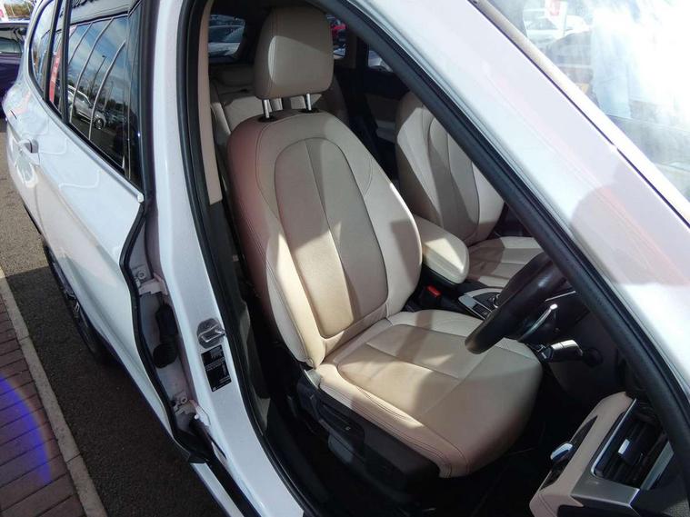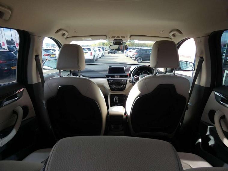 Ambient temperature display, Apple CarPlay, Arrow pointers, north up, direction of travel and perspective map displays, Attentiveness assist, Automatic tailgate opening, BMW ConnectedDrive, BMW Online services, BMW remote services, BMW Teleservices, Brake pad wear indicator in front and rear, Characteristic map controlled oil pump system, Front axle single joint with specific axle kinematics to minimise drive influences on steering + provide increased rigidity agile driving behaviour, Front/rear park distance control (PDC), Instrument cluster with Black optic display featuring superimposed dials and 5.7" colour display, Instrument cluster with speedometer with miles per hour read out, tachometer and fuel gauge, Integrated hard drive with map data updates via USB interface, Lights on warning by audio warning signal when ignition is switched off, On board computer, Operation by iDrive with direct selection buttons and 8 programmable buttons, Optimum shift indicator, Outside temperature gauge, Park assist system, Personal Profile - automatic lock when driving away selectable, Real time traffic information, Rigidly mounted rear subframe - Multi link construction with separate spring / damper configuration and excellent driving characteristics, Service interval indicator, Servotronic PAS, Tyre puncture warning system, 12V compressor with integrated sealant injection bottle and hose, Aluminium lightweight construction including crankcase, Anti-roll bars, Balancer shaft, Diesel particulate filter, DOHC valvetrain with two upper camshafts, Double VANOS, Drive performance control with ECO PRO comfort + sport mode, Eight speed sport automatic transmission, High precision injection, Incorrect fuelling protection, Performance Control, Standard suspension, Stop/start function, Twin tube gas filled shock absorbers with degressive characteristic curve, DAB Digital radio, Adjustable headlights, Aero curtain, Automatically dimming rear view mirror, BMW Icon design LED daytime driving lights, Body colour bumpers, Body colour door handles, Body colour door mirrors, Direction indicator side lights integrated exterior mirrors, Dynamic brake lights, Electric windows - front and rear, with open/close fingertip control, anti-trap facility and comfort closing, Electrically adjustable door mirrors with aspheric on driver side, convex on passenger side with integrated indicators, Exclusive front door sill finishers with BMW designation, Exterior mirrors - electrically folding with anti-dazzle, Follow me home headlights, Front air guide finished in black silver, Front air inlets in matt black with silver finisher matt, Front and rear bumper system, Front bumper underbody protection in silver matt, Green tinted heat protection glazing glass, Headlight beam throw control, Heated door mirrors, Heated windscreen washer jets, High level third brake light, Kidney grille with 14 chrome matt aluminium fronted with black matt sides vertical bars, LED direction indicator lights in headlight eyebrow, LED front fog lights, Lightweight engineering, Model designation, Rain sensor including auto headlights activation, Rear bumper underbody protection in black silver with silver matt insert, Rear fog lights, Rear window aerial, Rear window wash/wipe, Reversing light in rear light cluster, Roof mouldings in matt black, Shark fin antenna, Sill cover matt black with matt silver insert, Twin chrome exhaust tailpipes x2, Two eye face design on light, Visible VIN plate, Welcome lighting, 12v power point in centre console, 2 cup holders in front, 3 rear headrests, 3 spoke sport leather steering wheel, 40:20:40 split folding rear bench seat, Black door sill finishers with BMW designation, Boot light, Centre armrest in 20 degree part rear seat backrest, Child seat ISOFIX attachment for two outer rear seats and front passenger seat with anchorage points, Conditioned based service, Dakota leather upholstery with perforation and contrast stitching, Driver and front passenger heated seats, Driver/front passenger seat backrest back with luggage net, Driver/passenger sunvisors with ticket holders, Dual zone automatic air conditioning, Four grab handles integrated in roof linings, Front and rear side armrests integrated into door trim, Front centre armrest/sliding cover, Front centre interior light over interior mirror and rear centre automatic interior light when door is opened/ignition switched off or via remote key, Front/rear adjustable head restraints, Illuminated glovebox, Leather gearknob/gaiter/handbrake grip, Luggage area underfloor compartment, Luggage compartment access via recessed handle below tailgate, Luggage compartment lighting, Luggage compartment loading edge with stainless steel insert, Manually adjustment steering wheel column, Multifunction steering wheel, Rear coded belt buckles, Single turbo charger, Standing free front adjustable armrest and fixed in different positions, Steering wheel gearshift paddles, Velour floor carpets, Extended lights pack - X1, Extended storage package - X1, ABS/EBD, Audio/visual collision warning system, Automatic Stability Control (ASC), Battery safety cut-off, BMW emergency call, Brake drying, Brake energy regeneration, Braking readiness, Cornering brake control (CBC), Crash Sensor - activates hazard/interior lighting + unlocks doors, Driver/Front Passenger airbags, Driver/front passenger side airbags, Dynamic brake control, Dynamic stability control + (DSC+), Dynamic Traction Control - DTC, Electronic differential lock control (EDLC), Electronic parking brake, Front and rear head airbags, Front passenger airbag deactivation, Front seatbelt force limiters, Front ventilated disc brakes, Hill start assist, Pyrotechnically pre-tensioned front seatbelts, Rear disc brakes, Rear door child safety locks, Seatbelt security check for driver and front passenger, Side impact protection, Three point seat belts in all seats, Twin horns, Tyre pressure monitor, Warning triangle and first aid kit, Central lock