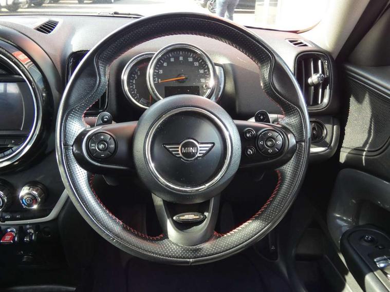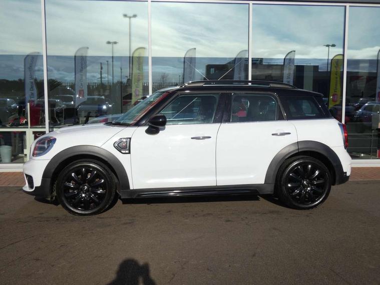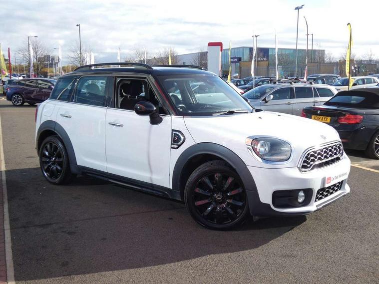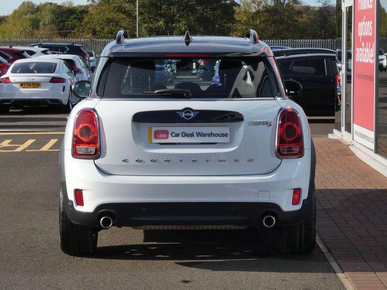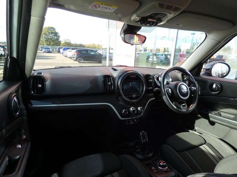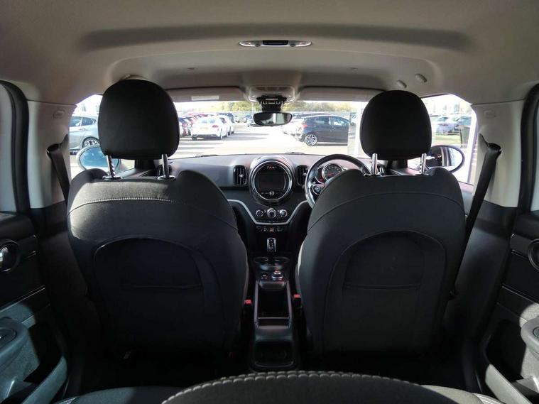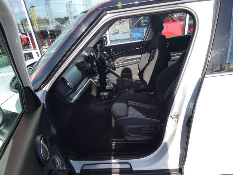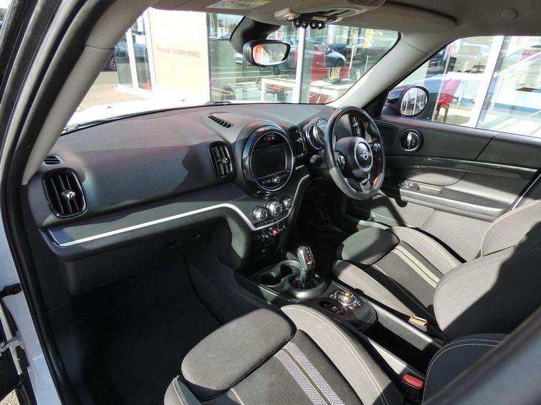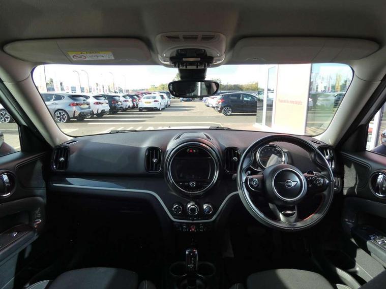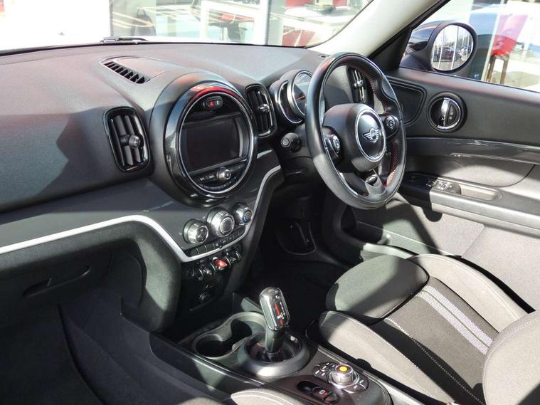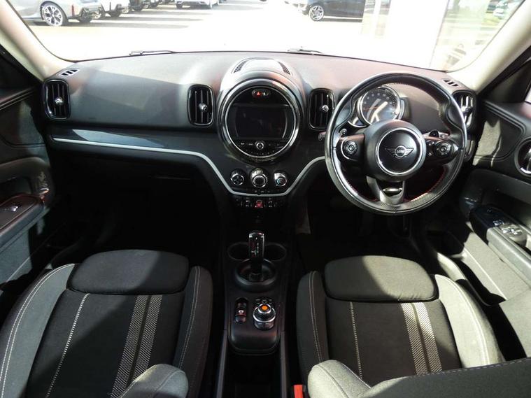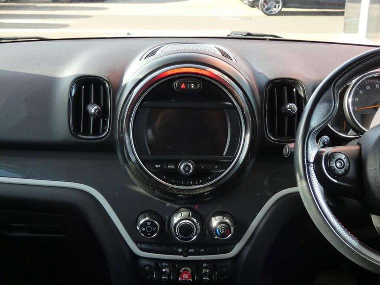 Apple CarPlay preparation, Brake pad wear indicator warning light, Central display with LED ring and 6.5" colour touch screen, Connected driver, DTC - Dynamic traction control, Exterior temperature gauge, Intelligent emergency call, MINI remote services, MINI TeleServices, Navigation system, On board computer, Personal Profile, Real time traffic information, Service interval indicator, Servotronic speed sensitive power steering, Electronic differential lock, Performance Control, Auxiliary input socket, DAB digital radio module, MP3 compatible radio/single CD player, Radio visual boost, Anti dazzle rear view mirror, Body colour scoop integrated into engine- compartment lid, Chrome door handles, Chrome headlight surround, Chrome plated radiator grille, Chrome side scuttle, Chrome window surround, Electric front windows + one touch + anti-pinch, Electrically adjustable door mirrors, Follow me home headlights, Green tinted glass, Heated door mirrors/heated windscreen washers, Heated rear window with automatic switch off, Metal look door sill finishers, Rain sensor including auto headlights activation, Rear wiper, Roof spoiler, Twin chrome exhaust tailpipes, White indicator lights, 12V power point front, 2 cupholders in front centre console, 4 lashing points to secure luggage, 40:20:40 split folding rear seats, Centre console storage box, Chrome interior door handles, Driver/passenger sunvisors, Front and rear headrests, Front interior light, Front passenger grab handle, Front seat backrest storage nets, Gearshift paddles, Heater with recirculation function, Height/reach adjust steering wheel, Isofix rear child seat preparation, Luggage compartment lighting, Multifunction steering wheel, Rear grab handles, Sensatec gearshift and handbrake, Sport front seats, Storage compartments in doors, Toolkit in luggage compartment, Interior lights pack - Countryman, MINI Excitement Pack - Countryman, 3 point automatic seatbelts, 3 point seatbelts on all rear seats, ABS, Cornering brake control (CBC), Crash Sensor - activates hazard/interior lighting + unlocks doors, Driver and passenger airbags, Driver and passenger side airbags, DSC - Dynamic Stability Control, Electronic brake force distribution, Electronic parking brake, Front curtain airbags, Front passenger airbag deactivation, Fuel cut off safety device, Hill start assist, Pyrotechnically pre-tensioned front seatbelts, Tyre pressure warning, Automatic door locking, Keyless Start, Locking wheel bolts, RF remote control central locking, Second remote key, Thatcham category 1 alarm + immobiliser,