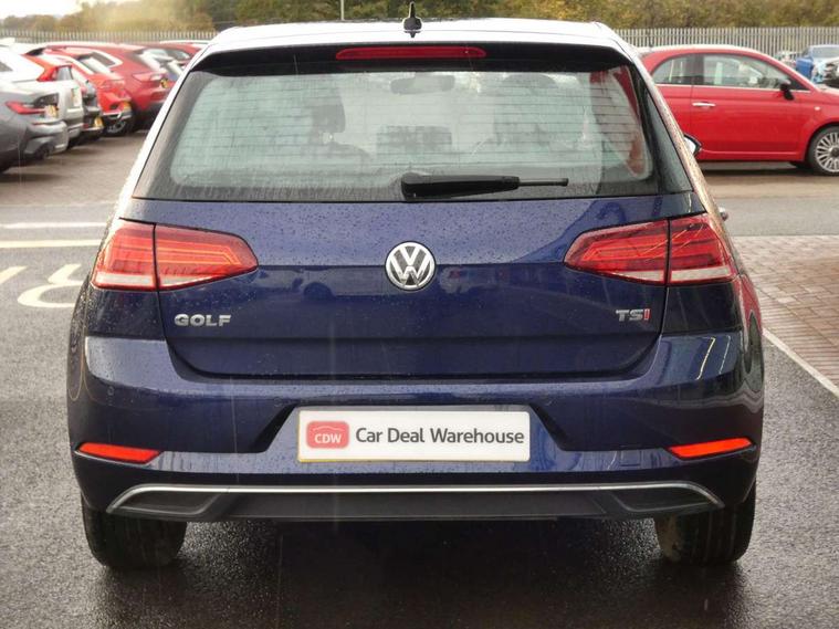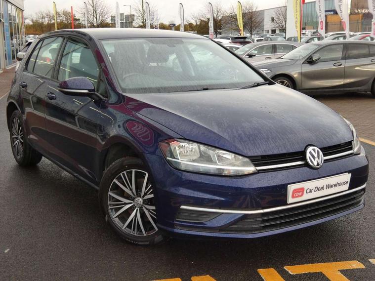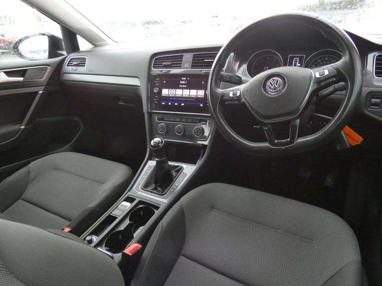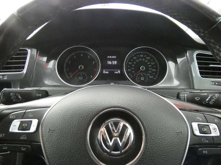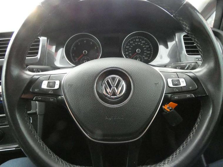 'Lights On' Reminder warning buzzer, 8" touch screen, Adaptive Cruise Control with pedestrian detection and speed limiter, App-Connect, Bluetooth hands free telephone connection, Brake pad wear indicator warning light, Driver alert system, Driver profile selection, Exterior temperature gauge, Instrument cluster in white, Multifunction computer, PAS - speed related, Rev counter, Trip and service interval display, Ultrasonic front and rear optical and audible parking sensors, Warning buzzer and light for front seatbelts unfastened, XDS electronic differential lock, CD/MP3/WMA, USB and SD card reader, aux-in, Composition media system, DAB Digital radio, Auto dimming rear view mirror, Automatic coming/leaving home lighting function, Automatic headlights, Black front air intake and radiator grille with chrome insert, Black rear diffuser, Body colour bumpers, Body colour door handles, Body colour door mirrors, Electric front windows, Electric rear windows, Electrically adjustable and heated door mirrors, Heated rear windscreen, LED daytime running lights, LED rear lights, Rain sensor, Rear roof spoiler, Rear windscreen washer and wiper with interval delay, 12V socket in luggage compartment, 3 rear headrests, 3 spoke steering wheel, 60/40 split folding rear seat, Bag hook in luggage compartment, Boot lashing points, Cooled glovebox, Courtesy light delay, Cover for storage compartment in centre, Dust/pollen filter, Front and rear reading lights, Front centre armrest with storage box and rear air vents, Front passenger drawer stowage, Front passenger seat height adjust, Front seat back storage pockets, Grab handles, Height/reach adjust steering wheel, Illuminated vanity mirrors, Isofix preparation for 2 rear child seats, Load through provision with rear centre armrest and cupholders x2, Luggage compartment cover, Luggage compartment lighting, Multifunction leather steering wheel with leather gear knob/handbrake grip, Overhead storage box, Pearl grey headlining, Storage box in luggage compartment, Storage compartments in doors, Sun visors, Variable boot floor, height adjustable and removable, Mirror pack - Golf, 3 point height adj front seatbelts + pretensioners, 3 rear 3 point seatbelts, ABS, Automatic post collision braking, Child locks on rear doors, Driver/Front Passenger airbags, Driver/Passenger whiplash optimised head restraints, Drivers knee airbag, Electronic parking brake with auto hold, ESP with EDL + ASR, Front and rear curtain airbags, Front passenger airbag deactivation, Front side airbags, Pre crash system, Tyre pressure monitor, Alarm with interior protection, Electronic engine immobiliser, Remote central locking with 2 remote folding keys, Brushed dark metal decorative inserts in dash and front door panels, Chrome-plated light switch surround, Polar night black centre console, Steel space saver spare wheel,