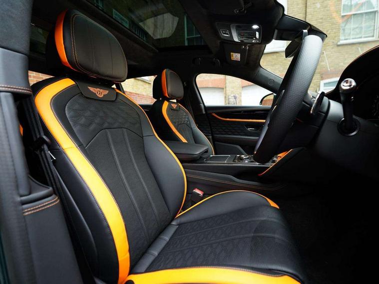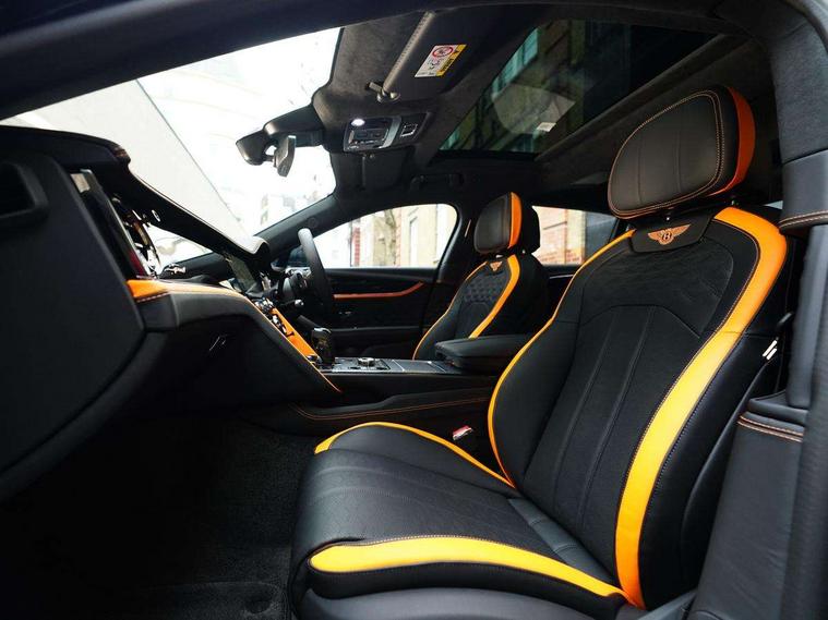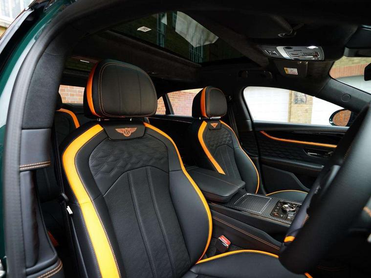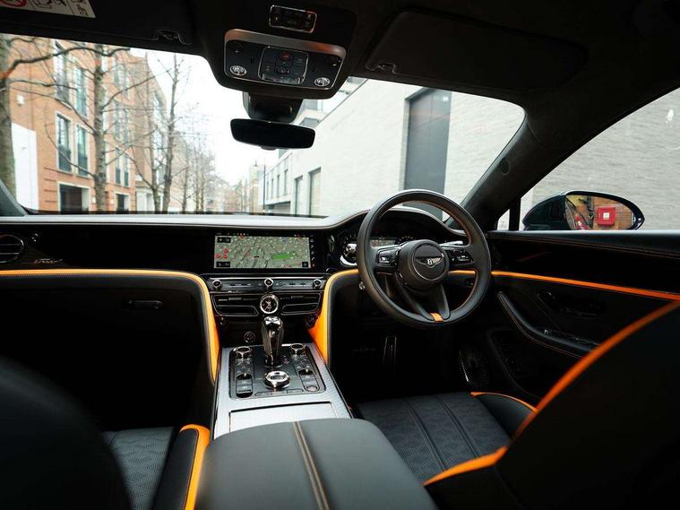 Stainless steel interior trim, ABS/EBD, Colour keyed seatbelts, Driver/front passenger airbag, Electronic stability control, Emergency boot release, Front 3 point seatbelts with electric height adjust + memory, Front and rear head airbags, Front and rear thorax airbag system, Front passenger airbag deactivation, Front seatbelt pretensioners with force limiters, HBA (Hydraulic Brake Assist), Hill hold control, Rear outer seatbelt pretensioners with force limiters, Traction control, Tyre pressure monitoring system, Alarm/immobiliser, Keyless entry, Driving Dynamics Control (DDC), 6 CD autochanger in glovebox, 60gb HDD with DVD/CD/2SD cards & WiFi, Auxiliary input socket, DAB Digital radio, iPod/USB/MP3 connection, 'Mirror finish' paintwork, 2D Bentley winged 'B' badge, Acoustic glazing with infra red reflective, Aluminium bonnet, Automatic headlights, Bi-Xenon headlights + adaptive front lighting system/headlight washers + daytime running lights, Chrome door handles, Colour keyed door mirrors, Elec/heat/adj/fold door mirror+memory, Electric front and rear windows + anti trap + one touch, Electrochromatic rear view mirror, Electrochrome door mirrors, Polished stainless steel oval exhaust pipe, Rain sensor windscreen wipers, Stainless steel exterior trim, 12 way elec front seats + lumbar support + Electric easy entry, 12V power in rear centre console, 12V socket in glovebox, 12V socket in luggage compartment, 8 way elec rear seats + lumbar support, Boot carpet matched to interior carpet colour, Carpet overmats hide bound, Colour keyed carpet, Door puddle lights, Elec adj steering column + memory, Electric rear/rear side window blinds, Folding rear centre armrest with storage, Four zone electronic climate control, Front head restraints, Front passenger map light, Front seat memory, Front seatback pockets, Front/rear cigar lighters, Full hide trim, Glass-effect switchgear, Heated seats, Illuminated glovebox, Independent air conditioning controls to rear cabin, Isofix attachments on rear seats, Leather upholstery, Multi function steering wheel, Rear ashtray, Rear centre 3 point seat belt, Rear outer 3 point seat belts, Rear seat memory, Steering column mounted gear shift paddles, Twin front centre armrest with storage, Twin front cupholders, Twin rear cupholders, Bluetooth wireless phone connectivity, Car computer, Continuous damping control, Engine start button, Front cordless privacy handset for telephone, Front/rear park distance control, Infotainment system/satellite navigation, MMI - Multi Media Interface control system, Power boot opening and closing, Power latching to all doors for easy entry, Servotronic speed sensitive power steering, Speed warning indicator, Temperature gauge, Voice control system,