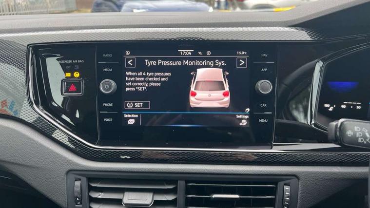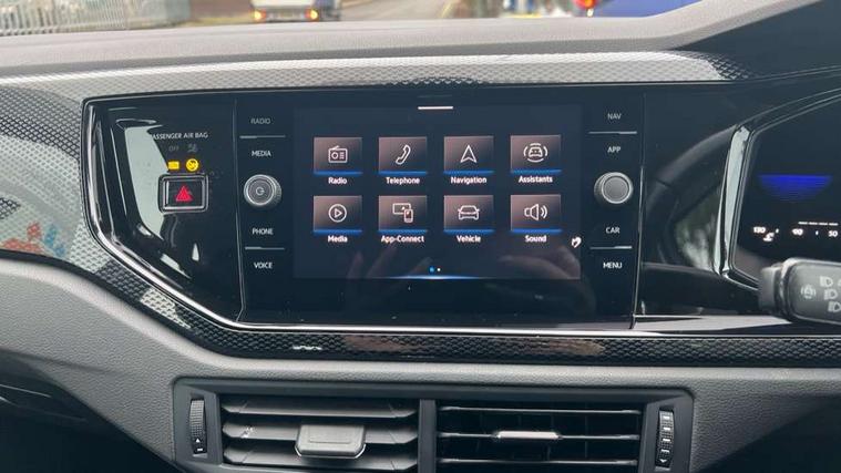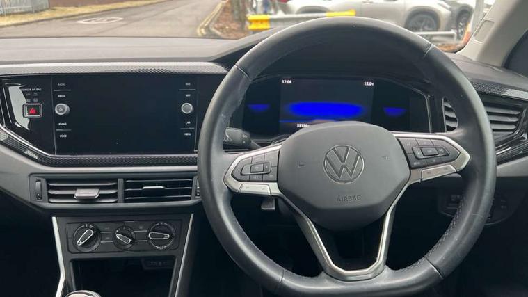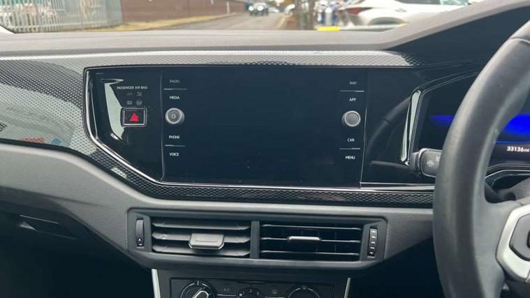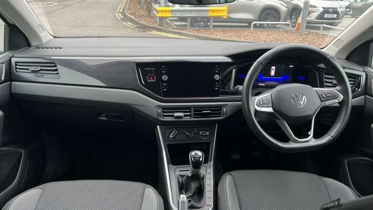 Adaptive cruise control without follow-to-stop and speed limiter, Bluetooth mobile phone interface, Driver alert system, Emergency call service, Front assist system, Power assisted speed sensitive steering, Preparation for We connect and We connect plus, Speedo and rev counter, electronic odometer, trip, service interval display and fuel gauge, Standard rear axle, Travel Assist - Lane keeping system and traffic jam assist, Travel assist including emergency assist, Trip computer, Warning signal and warning light for front and rear seatbelts not fastened, Washer fluid level indicator, Wireless app connect, Front wheel drive, Rear shock absorpion, Start-stop system with battery regeneration (recuperation - energy recovery during braking), DAB Digital radio, Diversity antenna for FM reception, Automatic dimming interior rear view mirror, Body colour bumpers, Body colour door handles, Body colour door mirrors, Electric front windows, Heat insulating darkened glass in side and rear windows, Heat insulating glass windscreen, Power folding adjustable/heated exterior mirrors and front passenger exterior mirror lowering function, Rain sensor, Rear electric windows, Rear fog light, Rear side wing doors, Rear windscreen washer and wiper with interval delay, Third brake light, 12V power socket in centre console, 2 front and 2 rear reading lights, 2 USB-C ports in the front, 2 USB-C charging sockets on the center console in the rear, 3 rear head restraints, 60/40 split folding rear seat and rear seat bench not split, Ceramique headliner, Chrome plated radiator grille inserts, air vent surrounds and light switch surrounds, Door and side trim panel, Driver and front passenger seat height adjustment, Driver/passenger sunvisors with illuminated vanity mirrors, Front centre armrest, Front seat backrest storage pockets, Front standard seats, Handbrake lever handle in leather, Hartley/Thomas cloth upholstery, Isofix child seat preparation easy-fit (for two outer rear seats, and front passenger seat) compatible with I-size, Leather trimmed gear knob, Luggage compartment cover, Luggage compartment floor, Luggage compartment lighting, Multifunction steering wheel, Single front passenger seat, Standard pedal cluster, Light and vision pack - Polo, 3 point height adj front seatbelts + pretensioners, 3x3 point rear seatbelts, ABS, Driver and front passenger airbag with front passenger airbag deactivation, Drivers and front passengers safety optimised head restraints, ESC (Electronic stability control) + EDL (Electronic Differntial lock) and ASR (Traction control), Extended and predictive pedestrian/ cyclist protection, Front curtain and side airbags with center airbag, Front disc brakes, Hill hold control, Manual child lock in rear doors, Rear drum brakes, Single tone horn, Tyre pressure loss indicator, Alarm with interior protection, Anti-theft alarm system with interior monitoring, backup horn, and towing protection, Anti-theft wheel bolts, Electronic engine immobiliser, Lava stone black gloss/matt decorative inserts in dash and front door panels, Low rolling resistance tyres,