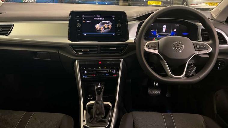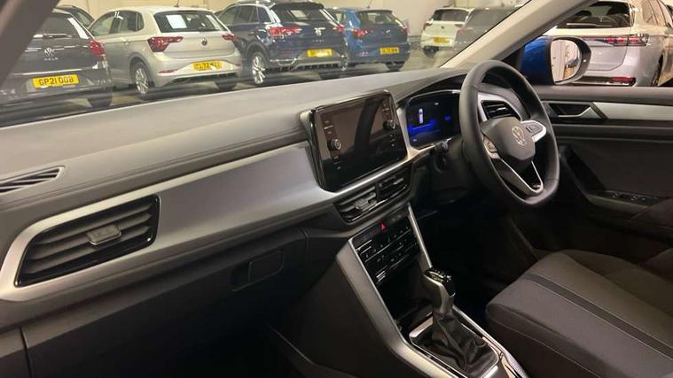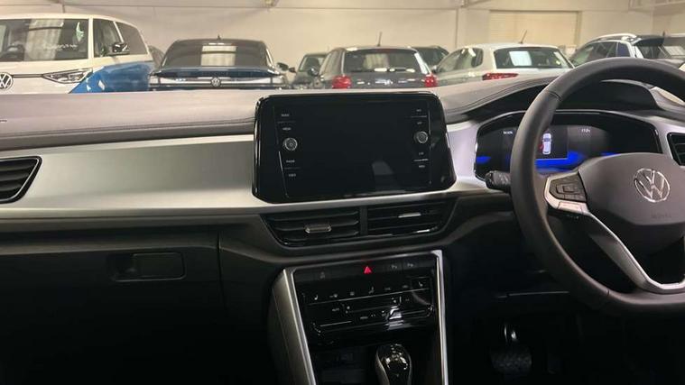 Advanced driver attention and drowsiness monitor, Dynamic road sign display, Emergency call service, Lane keeping system Lane Assist, Mobile phone interface, Modified key software - reduce switch off time for key status change to Long no motion, Online services, Park assist including front and rear parking sensors, Power assisted speed sensitive steering, Service interval indicator, Tailgate/trunk lid release from outside, Think blue trainer driver tips and journey analysis, Warning sound and light for front seatbelts unfastened, Wireless app connect, Battery regeneration during braking, Front shock absorption, Rear shock absorption chassis with increased ride height, Start/stop function with battery regeneration, DAB Digital radio, Diversity antenna for FM reception, Front and rear 6 speakers, Music playback - MP3, WMA and AAC files, Premium USB cable in choice of either Apple or Android smartphone compatibility, SD card slot, Simultaneous pairing of 2 compatible mobile devices, Title and cover art display, We Connect and We Connect Plus functionality, Auto dimming interior rear view mirror, Automatic hazard lights activation under emergency braking, Automatic headlight control with LED separate daytime running lights with coming/leaving home function, Black roof rails, Body coloured bumpers and radiator grille with chrome trim and front fog lamps with chrome bezel, Body coloured exterior mirror housings and door handles, Electrically adjustable and heated door mirrors, Extended roof spoiler, Exterior mirrors aspherical on driver side, convex on front passenger side, External USB type C socket and charging sockets, Front windscreen wiper with intermittent wipe and 4 position delay, Heated rear window, LED 3rd brake light, LED rear combination lamps, LED rear number plate lights, Power windows with comfort operation and circuit breaker, Rain sensor, Rear exhaust tailpipe, Rear fog light on one side and reversing lights on both sides, Rear side wing doors, Rear wash/wipe with intermittent wipe setting, Remote electrically foldable door mirrors, puddle lights and reverse activated passenger's door mirror, 12V power socket in centre console, 3 rear head restraints, 3 seat bench in 2nd row, 4 load lashing points in luggage compartment, Air care climatronic air conditoning system with active combination filter and 2-zone temperature control, Ambient lighting with mirror logo projection, Cloth upholstery, Door and side trim panel in cloth, Drawer under drivers seat, Driver/front passenger seat height adjustment, Front centre armrest, Front comfort sports seats, Front cupholders x 2, Front reading light, Front seat back storage pockets, Glove compartment door with light, Instrument lighting, white adjustable panel illumination, Interior light delay, Isofix child seat preparation, Leather gearshift handle, Load-through provision with cup holder when folded down ('Unsplit rear seat bench, split folding backrest, with centre armrest), Luggage compartment lighting, Lumbar support for driver's and front passengers seat, Non-folding front passenger seat backrest, Single front passenger seat, Storage compartment in left and right luggage area, Storage compartment in rear doors, Storage compartments in driver and front passenger doors, Sunvisors with illuminated vanity mirrors, Variable boot floor, height adjustable and removable, Driver assistance pack without proactive passenger protection - T-Roc Life/Match, 3 point height adj front seatbelts + pretensioners, 3 point seatbelts in outer rear with ECE label, ABS, Child locks on rear doors, City emergency braking and pedestrian monitoring, Driver and front passenger airbag with front passenger airbag deactivation, Driver and front passenger safety-optimised head restraints, Drivers seatbelt reminder, Electronic parking brake, Electronic Stability Control (ESC) inc EDL (Electronic Differential Lock) and ASR (Traction Control), Front and rear passengers curtain airbag system including front side airbags, Front disc brakes, Hill start assist, Predictive pedestrian protection, Rear disc brakes, Two tone horn, Tyre pressure loss indicator, Volkswagen roadside assistance, Alarm with interior protection, Pewter matt decorative inserts for intrument panel, centre console and door panels at the front, Trims for alloy wheels,
