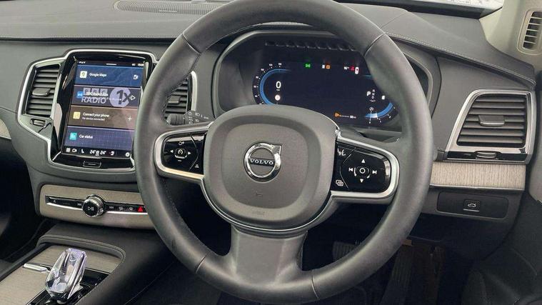 12.3" Progressive Driver Display, 360 degree surround view parking camera with side proximity sensors, 9" centre console portrait touch screen, Adjustable steering wheel force, Apple carplay (wired), Bluetooth handsfree system, Driver alert control with lane keeping aid, Driver assistance (pilot assist and adaptive cruise control), Driver awareness - Blind spot information system with steer assist, cross traffic alert with autobrake and rear collision warning and mitigation, Emergency call service, Front and rear park assist, Google Automotive Services - Navigation with Voice recoginition and google assistant, Handsfree power tailgate opening and closing, Intelligent speed assistance, Oncoming Lane Mitigation, Power operated tailgate, Service interval indicator, Speed sensitive steering, Trip computer, Volvo on call, Wireless/Inductive Mobile Phone Charging, 8 speed automatic transmission with start/stop + manual change functions, Touring chassis, DAB Radio (Digital Audio Broadcasting), Premium Sound by Harman Kardon, dirac unison, dolby pro logic II surround sound, 13 speakers/600W output and fresh air subwoofer, Steering wheel remote infotainment controls, Active bending headlights with adaptive shadow technology, Adaptive brake lights with high level LED brake lights, Auto dimming interior + exterior mirrors, Auto folding and heated power door mirrors, Automatic headlight levelling system, Automatic LED Headlights + Active high beam incorporating daytime running lights, Body colour bumpers, Dark tinted windows - rear side windows and rear screen, Front and rear power windows, Headlight cleaning system, Heated front windscreen, High gloss black door mirrors and window surround, High gloss black front and rear bumper deco, High gloss black mesh front grille with surround, Home safe and approach lighting, Integrated roof rails in high gloss black, Laminated side and rear windows, LED front fog lights with cornering light function, Power glass tilt and slide panoramic sunroof with sun curtain, Puddle lights, Rain sensor with automatic windscreen wiper activation, Rear side step illumination, Rear side wing doors, Rear wash/wipe with intermittent wipe setting, Roof antenna, Roof spoiler, Visible VIN plate, 12V socket front tunnel console, rear passenger compartment, 2nd Row centre armrest with and cupholders, 3 Spoke tailored steering wheel with chrome trim, 4 zone electronic climate control with Clean zone air quality system + pollen filter, A-pillar parking ticket holder, Air conditioning for 3rd row of seats, Air purifier PM2.5, Ambient door and instrument panel lighting, B Pillar ventilation, Bright metal luggage scuff plate, Centre console cupholders and storage, Floor mats, Front and rear courtesy lights, Front and rear door pocket illumination, Front footwell and side step illumination, Front headrests, Front reading lights, Front seat cushion extensions, Front seat power side support, Front tunnel storage illumination, Heated front seats, Heated rear seats, Heated steering wheel, Height/reach adjustable steering column, Illuminated front and rear tread plates, Illuminated luggage compartment, Illuminated tailgate, Illuminated vanity mirrors + ticket holder, Illumination lockable glovebox compartment, Inner door release handle illumination, Integrated sun curtains in rear doors, Isofix outer rear child seat preparation in 2nd row, Load cover, Load protection net, Lockable glovebox compartment, Luggage compartment divider with grocery bag holder, Nappa soft leather perforated /ventilated upholstery, Outboard armrest with cupholder and storage for third row passengers, Power driver seat with multi directional lumbar support and memory for seat and exterior mirrors, Power folding 2nd row headrests, Power passenger seat with multi directional lumbar support and memory, Rear footwell illumination, Rear headrests, Rear reading lights, Single front passenger seat, Three 2nd row individual folding passenger seats with fore/aft adjustment, Two 3rd row individual folding passenger seats, Underfloor luggage compartment storage, 7 three point seatbelts, City safety with steering support includes pedestrian, cyclist detection, front collision warning with full auto brake and rear auto brake, Driver and passenger airbags, Drivers knee airbag, First aid kit, Front seats SIPS airbags, Hill descent control - off drive mode, Hill start assist, IC (Inflatable Curtains) - Full Length, Passenger airbag cut-off switch, Power child locks on rear doors, Power parking brake with auto hold function, Road sign information display, Run off Road Mitigation, Run off Road Protection, Seatbelt reminder and pretensioners for all seats, SIPS (Side Impact Protection System), Slippery road and hazard light alert, Stability and Traction Control with Spin control, Engine Drag Control and Corner Traction Control, Tyre pressure monitoring system, Vehicle deceleration control with Anti-lock Brake System, Electronic Brake Distribution and Emergency Brake Assist, Warning triangle, WHIPS whiplash protection system - front, 2x Key integrated remote control central locking + deadlocking system and auto open/close windows, Anti-theft alarm including immobiliser/volume sensor + level sensor, Care key with user defined top speed, Keyless drive includes keyless entry and keyless start, Locking wheel nuts, Tailored Instrument Panel and Door Tops with Contrast Stitching, 21" 5 double spoke diamond cut black alloy wheels, Tempa spare wheel and jack,